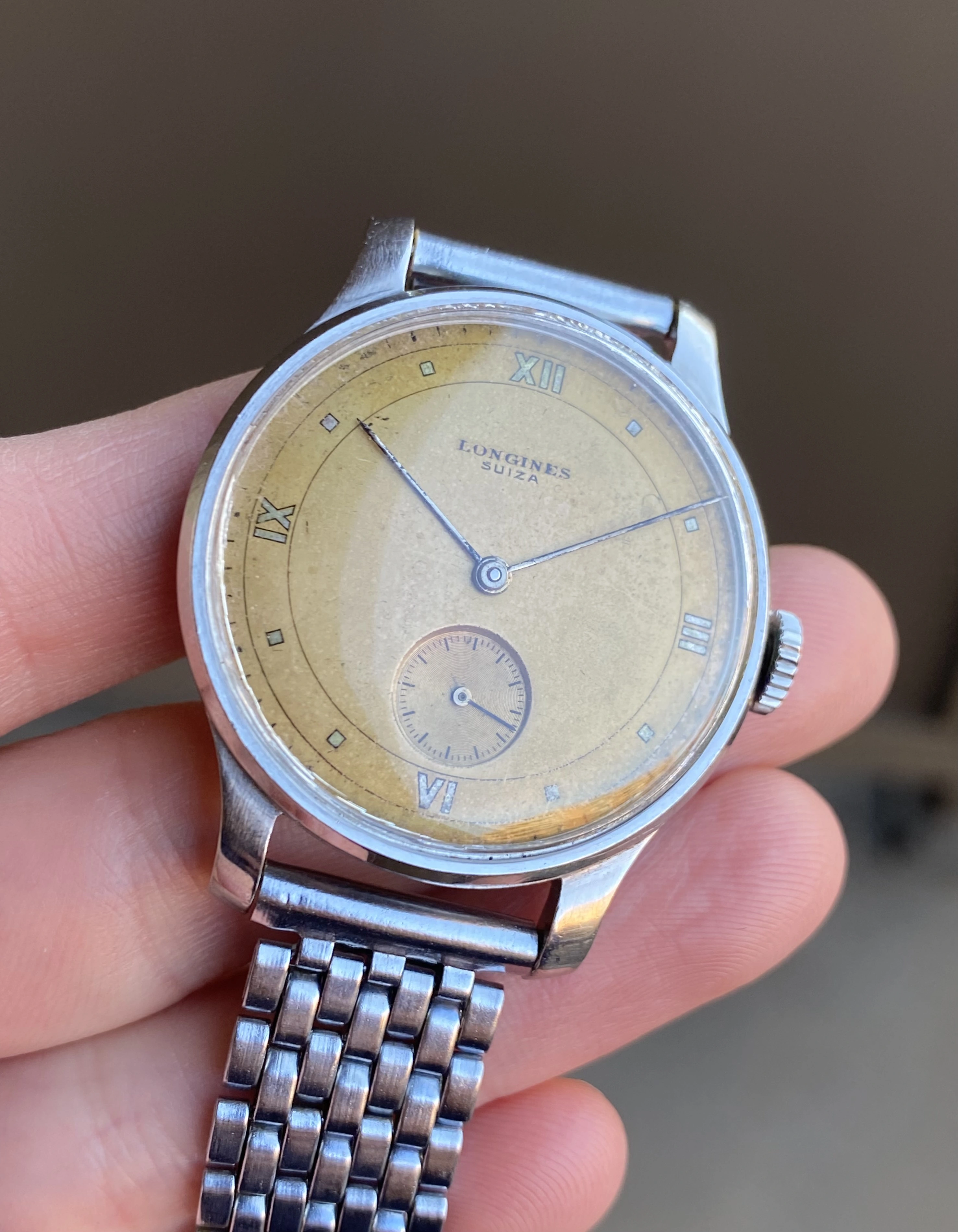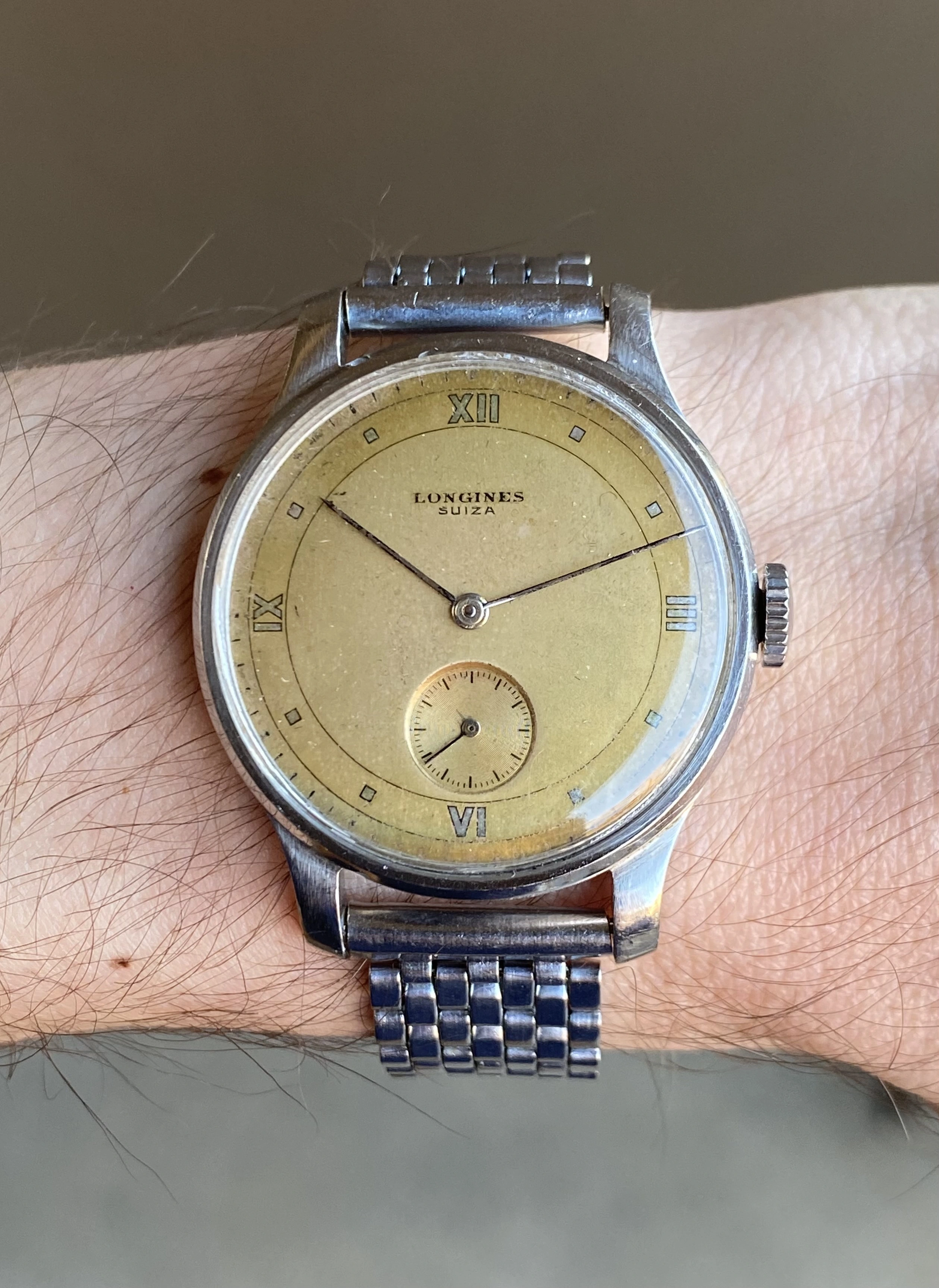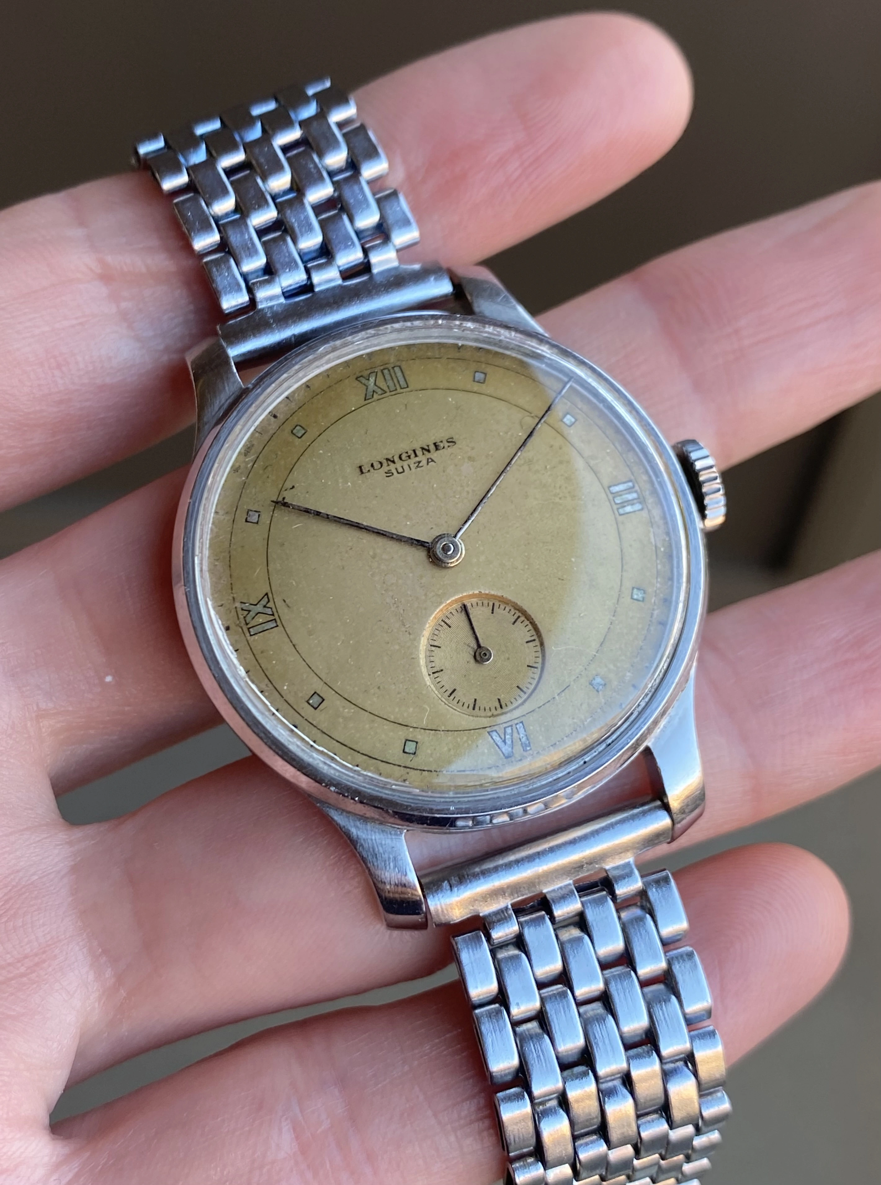 ·Up for sale is another great vintage Longines. This one is a wearable 35mm steel 12.68z with a unique and attractive original copper color dial. The Suiza signed dial indicates delivery to South America, which is reinforced by the archive info that states the watch was delivered to Uruguay in December 1945. See below for full info, and don’t hesitate to message me with questions.
