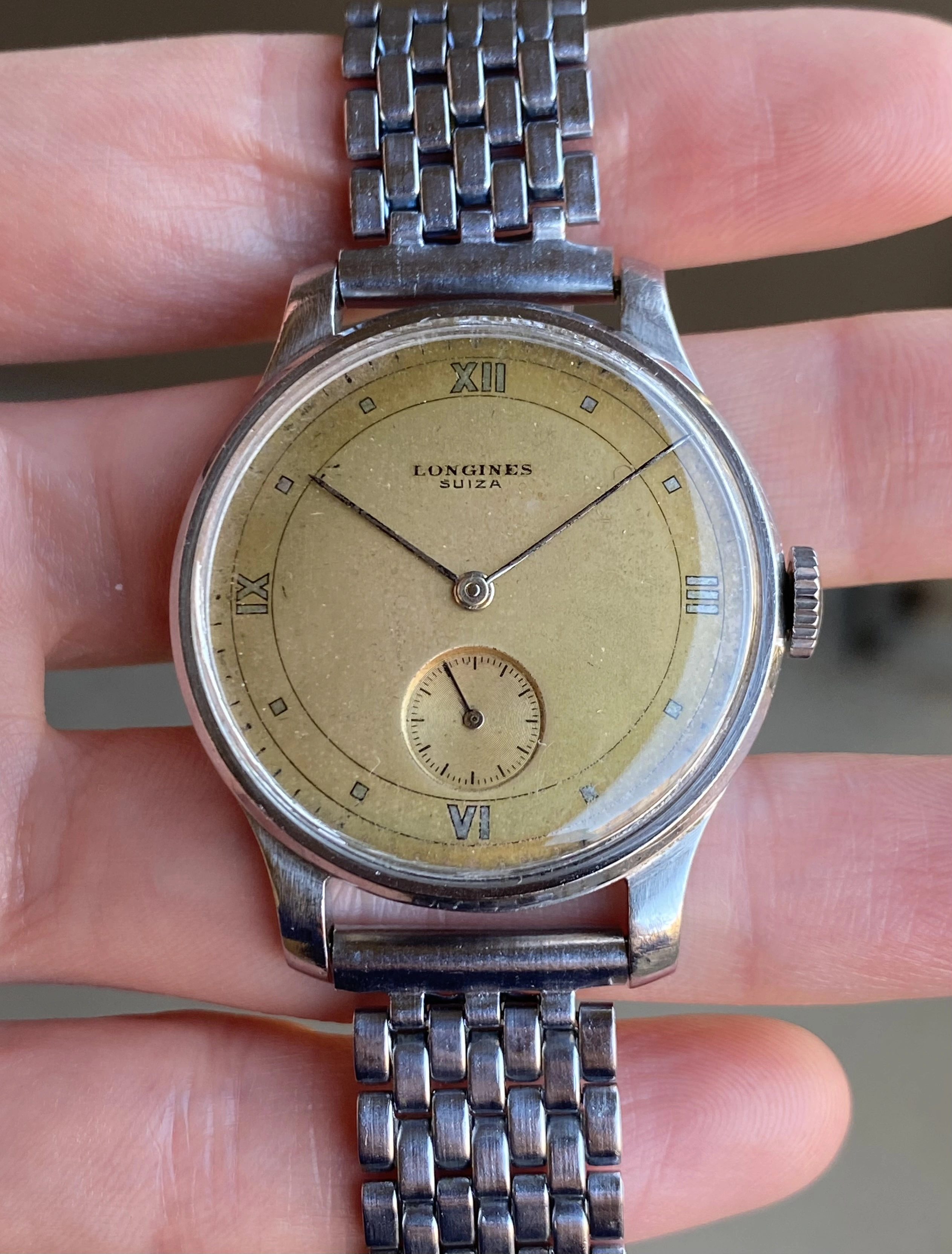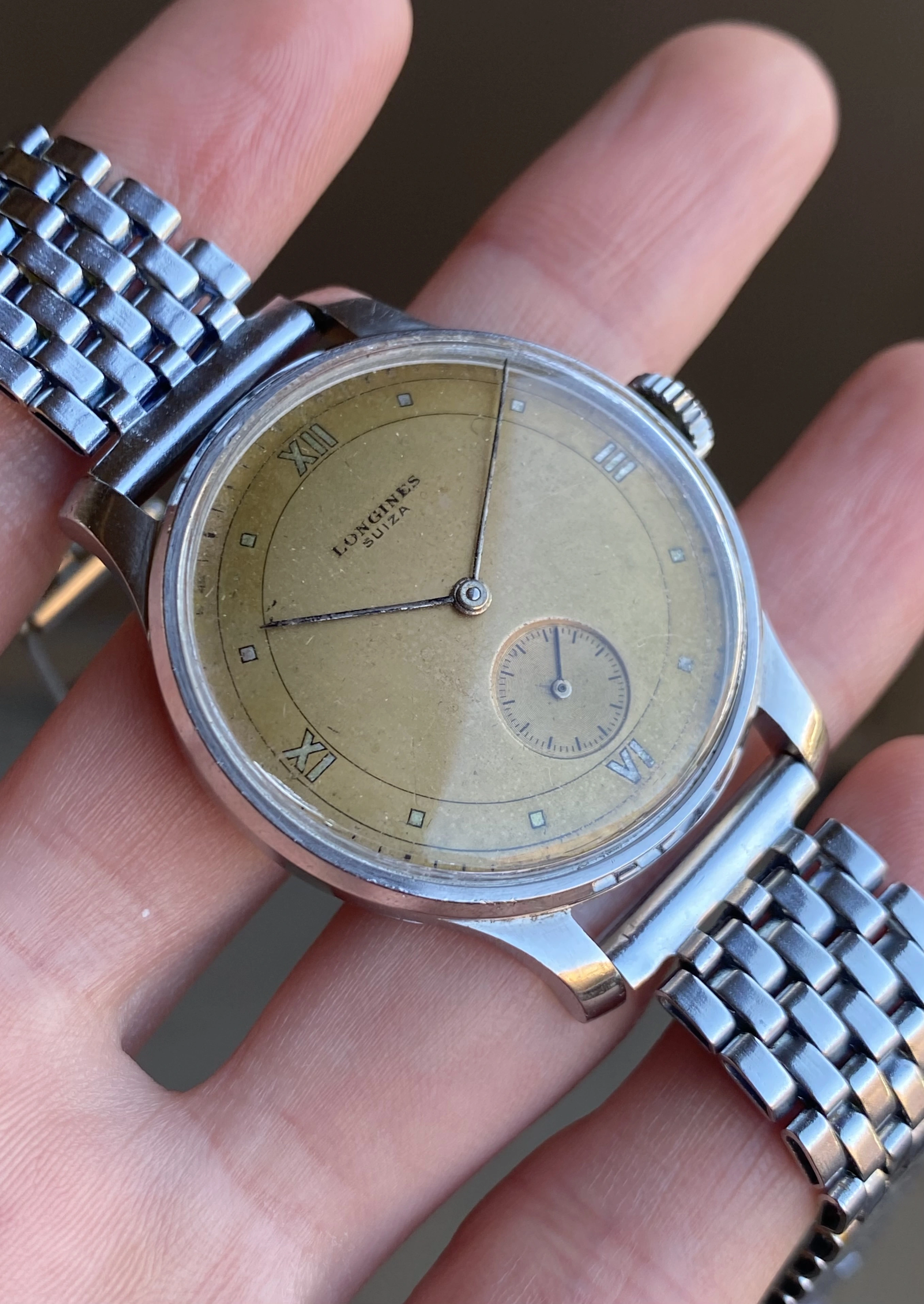 ·Up for sale is another great vintage Longines. This one is a wearable 35mm steel 12.68z with a unique and attractive original copper color dial. The Suiza signed dial indicates delivery to South America, which is reinforced by the archive info that states the watch was delivered to Uruguay in December 1945. See below for full info, and don’t hesitate to message me with questions.