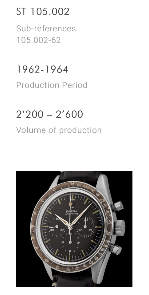 A very rare reference, produced for about six months. Initially it is actually an unchanged 2998-62, but with a new Omega number in line with the new reference number system. Then part way through the production run the hand specifications changed from alpha to baton. I am unclear when this happened or if there is a pattern to which hands were fitted when. I also do not think the serial can dictate which hand set is/was/should be fitted. I now believe that either handset on any serial is possible.”