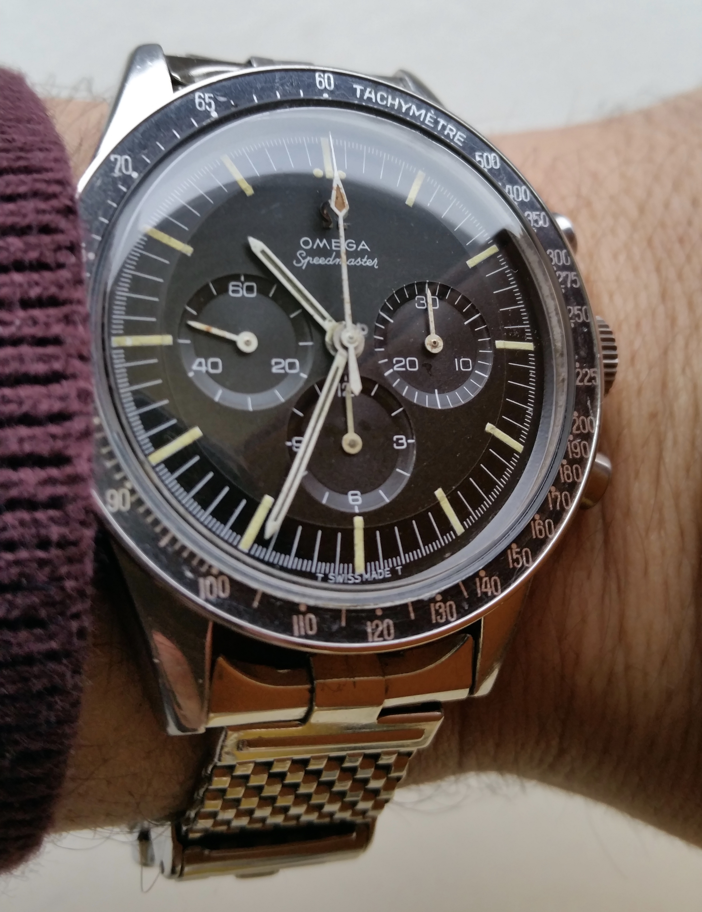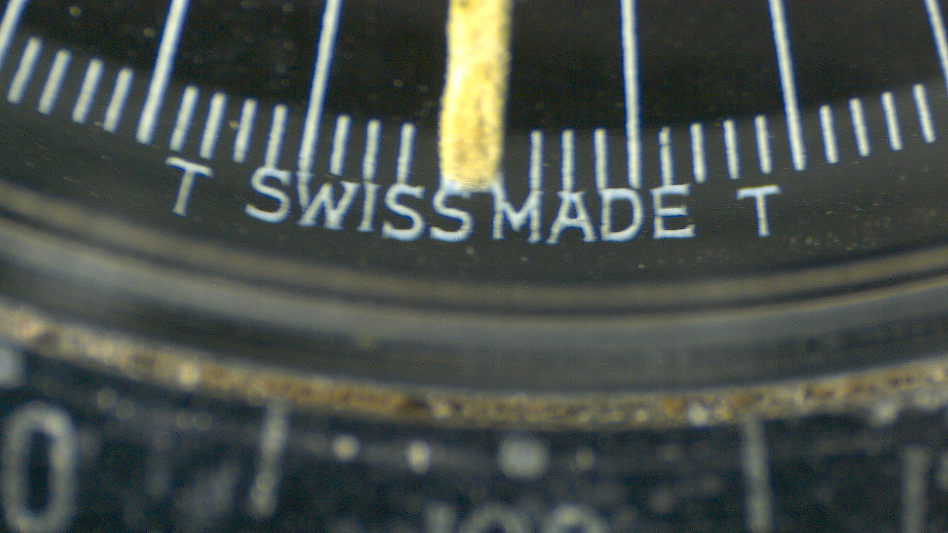 this dial may have been produced a very short time after the T marking surrounding "Swiss made" became mandatory. So the Ts were added in a second time, hence the asymmetrical design (low Ts / high SWISS MADE).