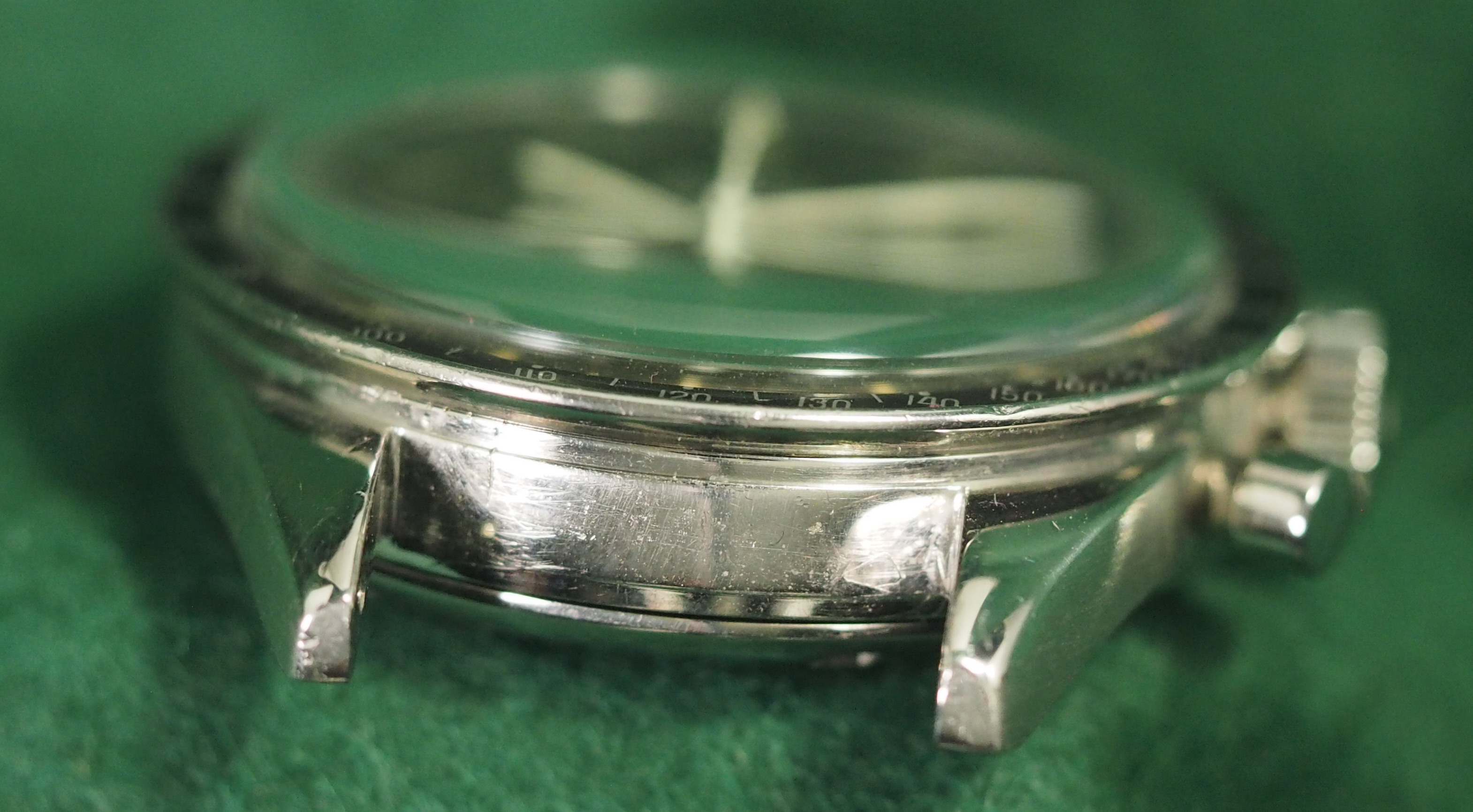 The case was lightly refinished - this basically means putting back the brushed finish after a deep clean with Ultrasonic - it is not a "Re-Polish" and very little metal was removed. The case back does show signs of polish and has lost some of its definition. But better in my opinion than the engraved on which was awful.