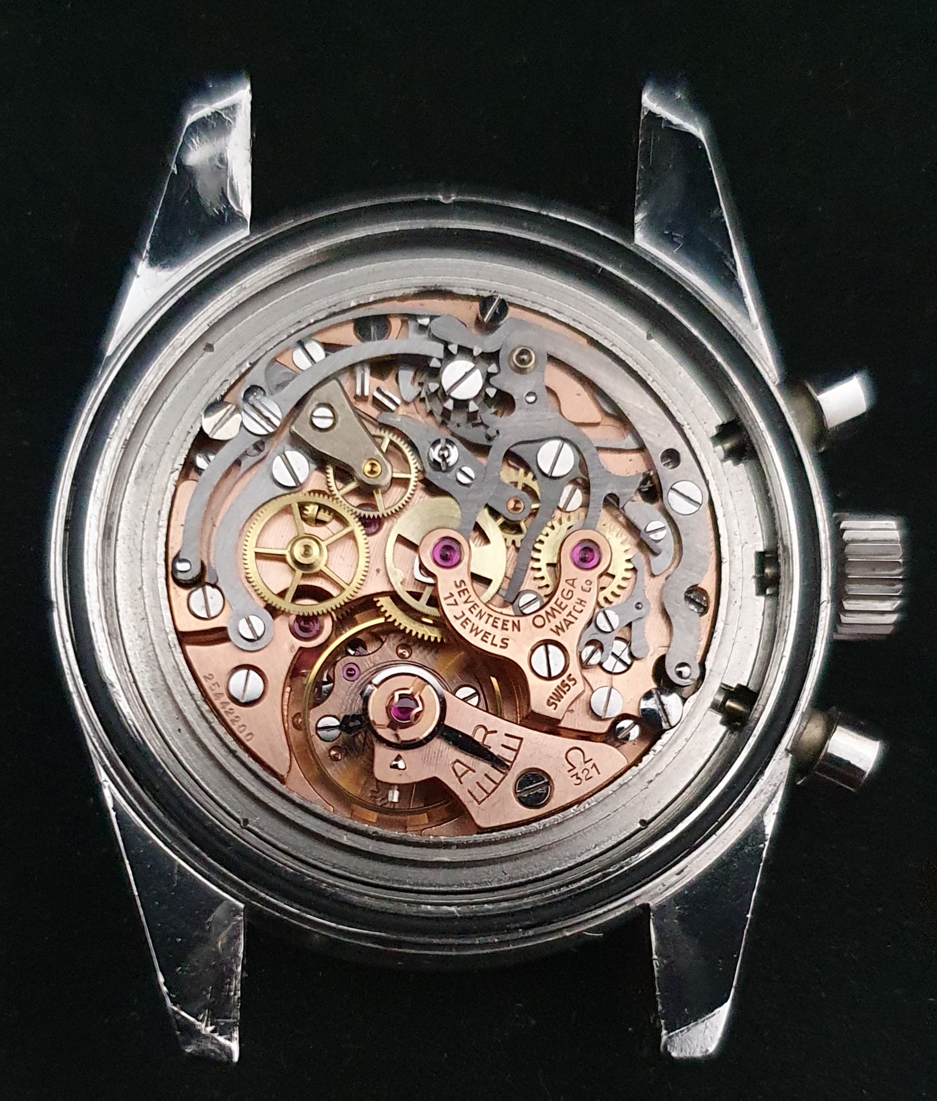 Movement - second generation 321, absolutely correct for the reference and original to the watch. There was wear to the reset lever when we examined the movement. As you will know, parts for 321s are harder to get by the day but this lever can be adjusted and so that is what we did. The watch operates perfectly and the reset is dead on but the reset pusher is a little stiffer as a result. That is why I have given such a full explanation. You will notice it when operating the chronograph and that's the reason why. Everything else is damn near perfect.