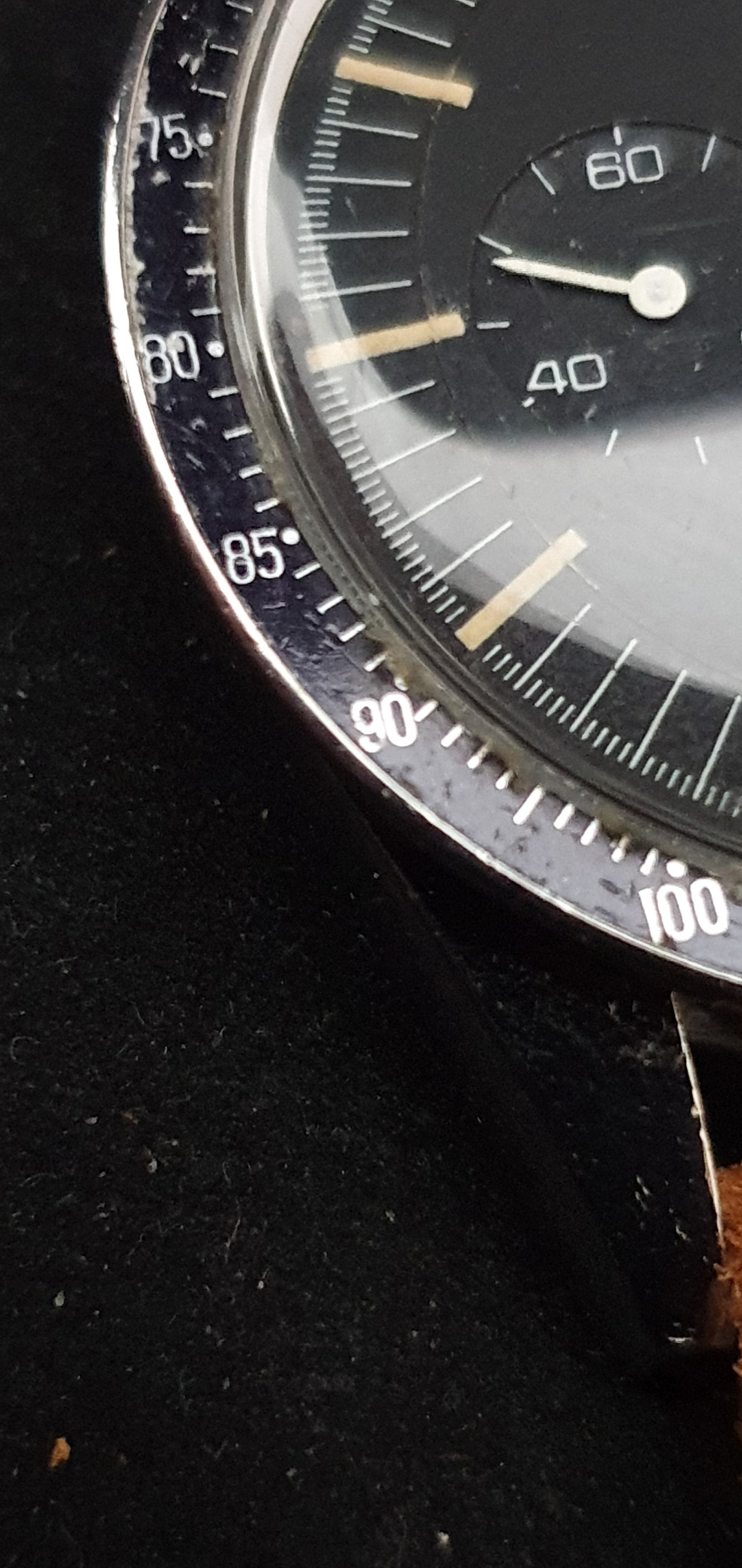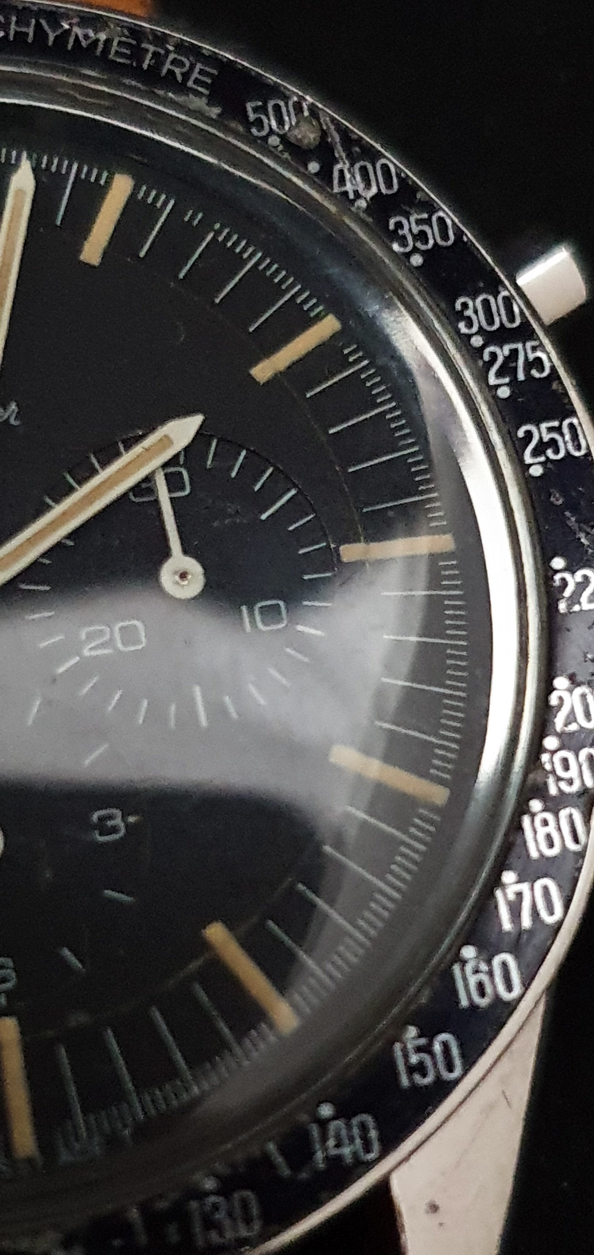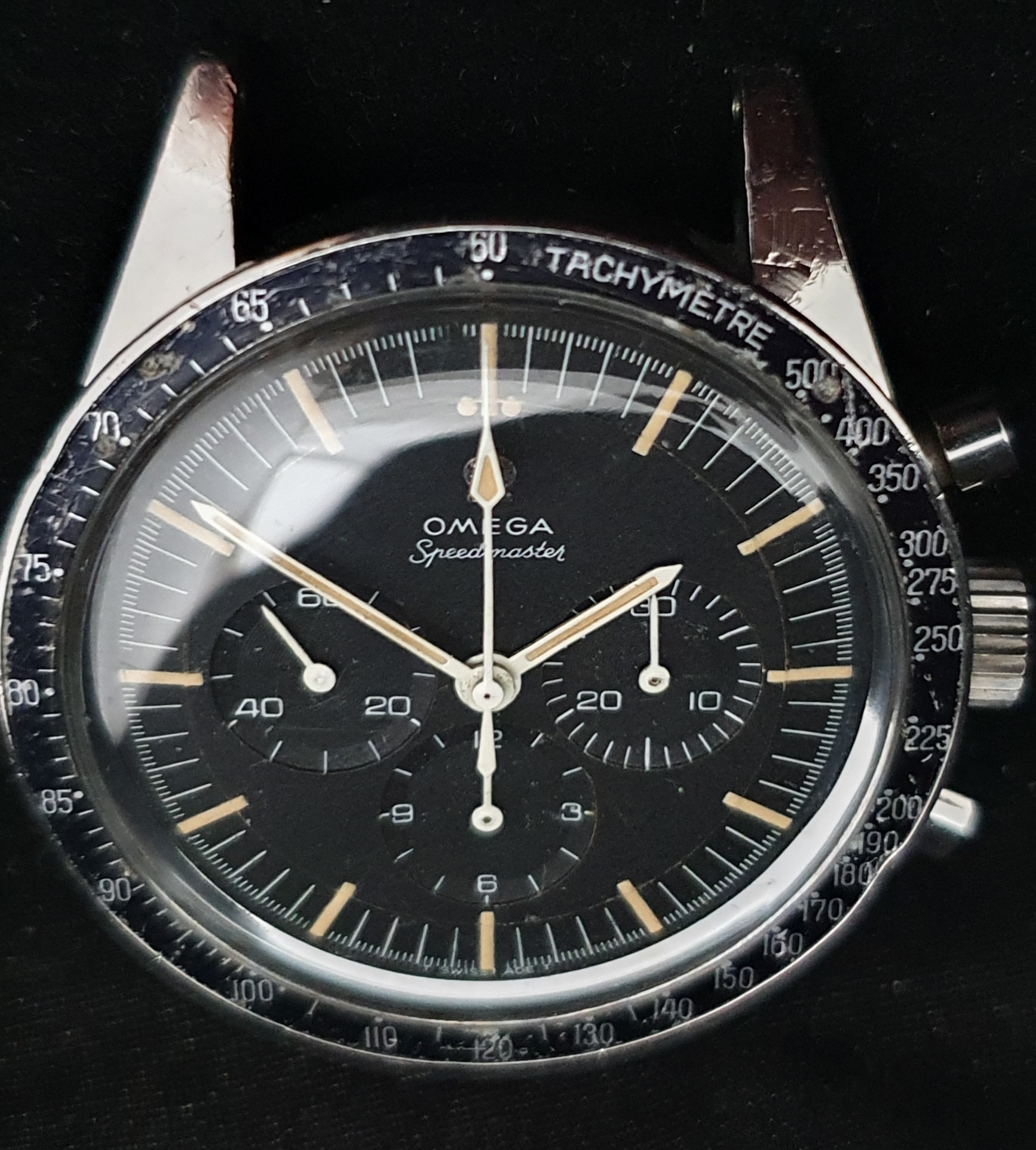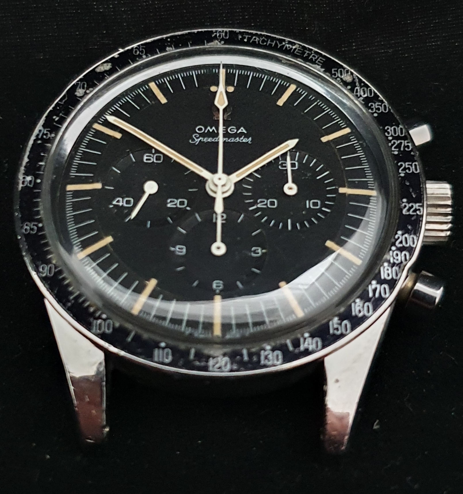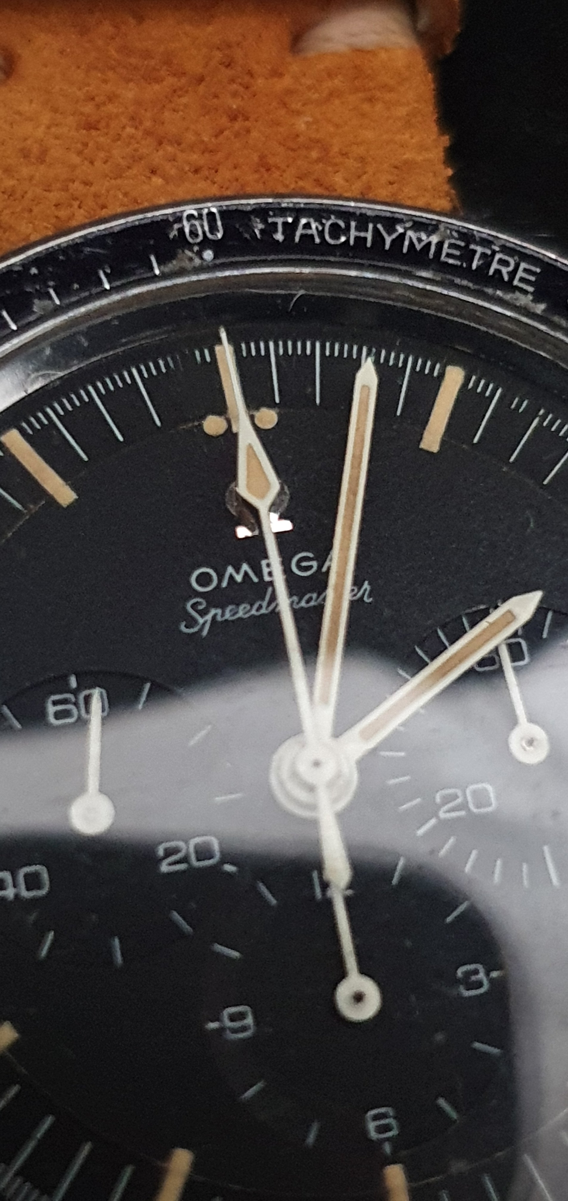 Anyone following my IG feed will see how we received this watch. The lume had been scraped away and the dial scratched. It has been (I hope you agree) very well restored with aged lume, repaint to the major scratches and lacquered. It looks just as it should and we used speedmasters from my collection for the colour. We did not fill in the few damaged markers on the minute track as we were not sure that the result would improve the look of the dial. The result is something I am particularly proud of.