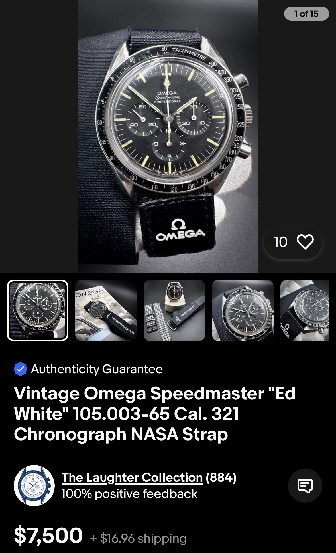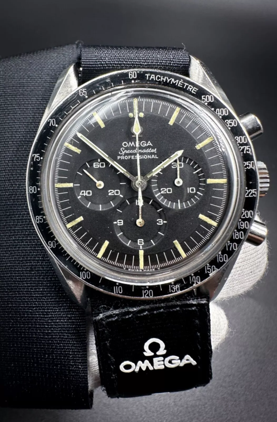 ·Seen this "Ed White" on eBay for a loooong time and surprised me that no one on OF has brought it up. Even a newbie like I could tell it's a franken. But when I talked to the seller (trying to see if it's cheap enough as parts), he gave me all these references how Omega had QC issues and these were "seen" before etc., and a true Omega Speedmaster "master" told him that it may be correct that I even started to question myself. The big giveaway to me is the dial (thanks to my new arrived MOW), the lume indexes are too short and wide for Ed Whites, 105.012s, etc....and only seen in the 145.022s and later, so that at least must be a replacement. But what else? The DON bezel and dial, for a 145.022 actually look really nice.