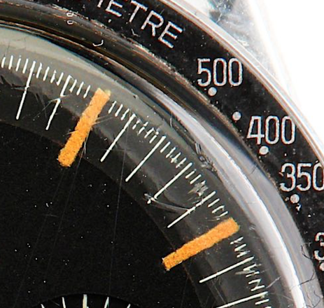 Case: Signed, brushed and polished stainless steel, straight lugs (last model produced with straight lugs), an extremely rare DON black bezel with silvered Tachymetre, screw down back with engraved seahorse logo, Speedmaster and Omega inscription