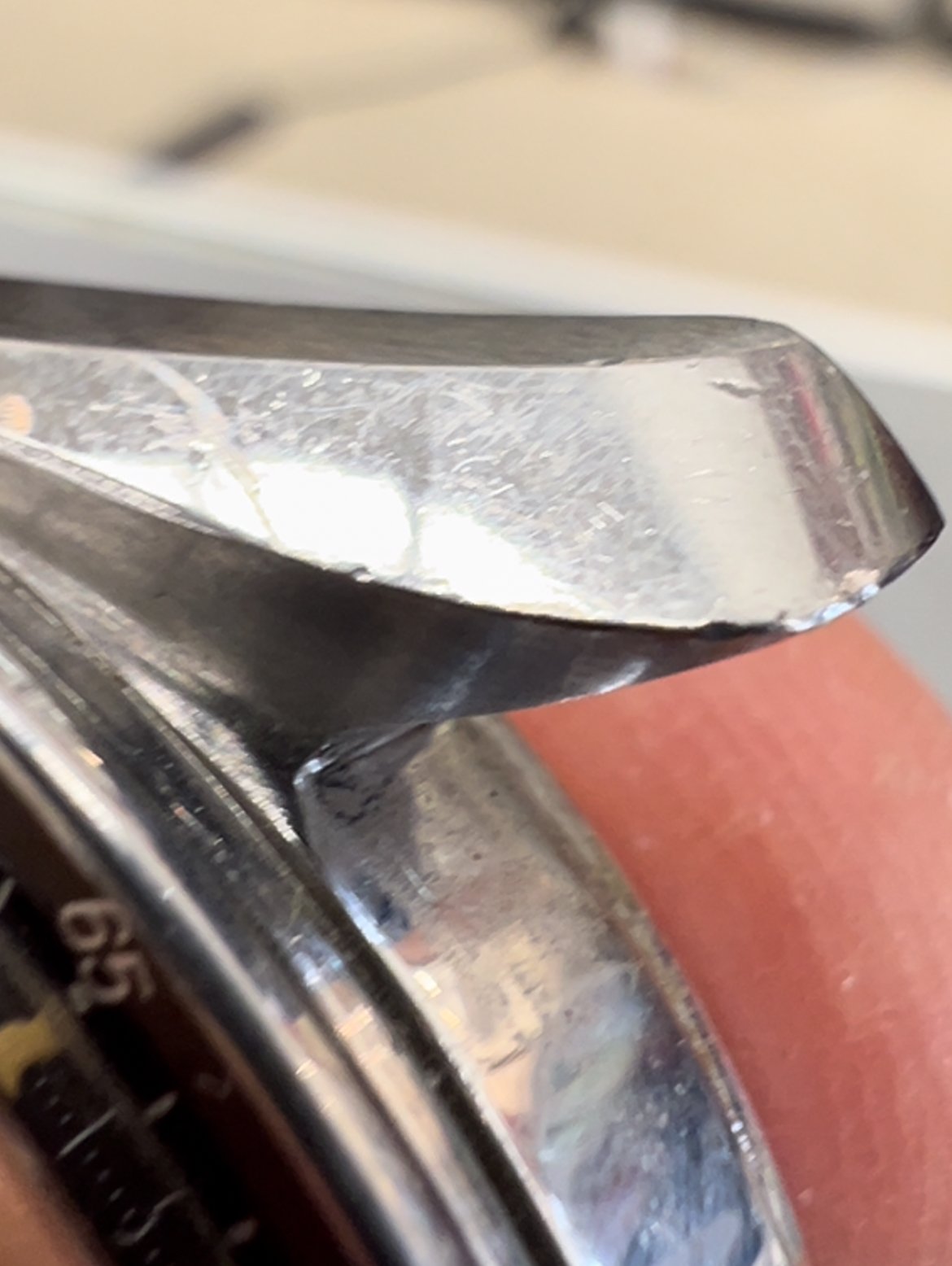 The auction house offered a very sparse description and incorrectly stated the reference as 105.012-66. The watch appears to be in nice condition, but of course difficult to tell with any certainty from the photos provided. The auction house was also unable to open the watch so no movement photos were available. The bezel appears to be in very good condition and the case looks great as well. Lume has some minor deterioration on 2 of the plots, but has a very pleasing color and matches the hands. Note there is some deterioration on the hands around the centre post. Fat neck pushers and crown look original. 1056 bracelet looks very nice and is dated 3/66, inline and correct for a 105.012-65.