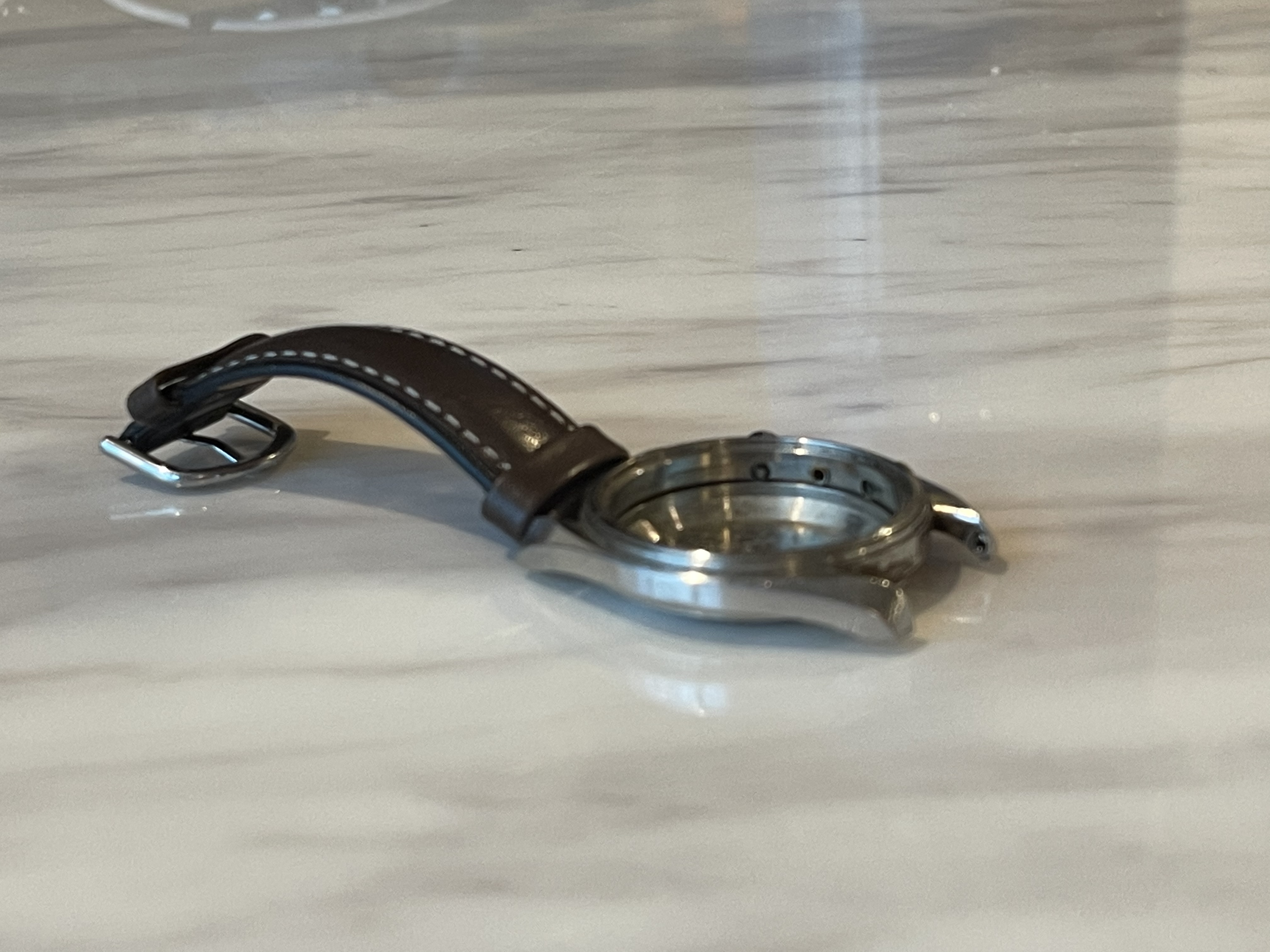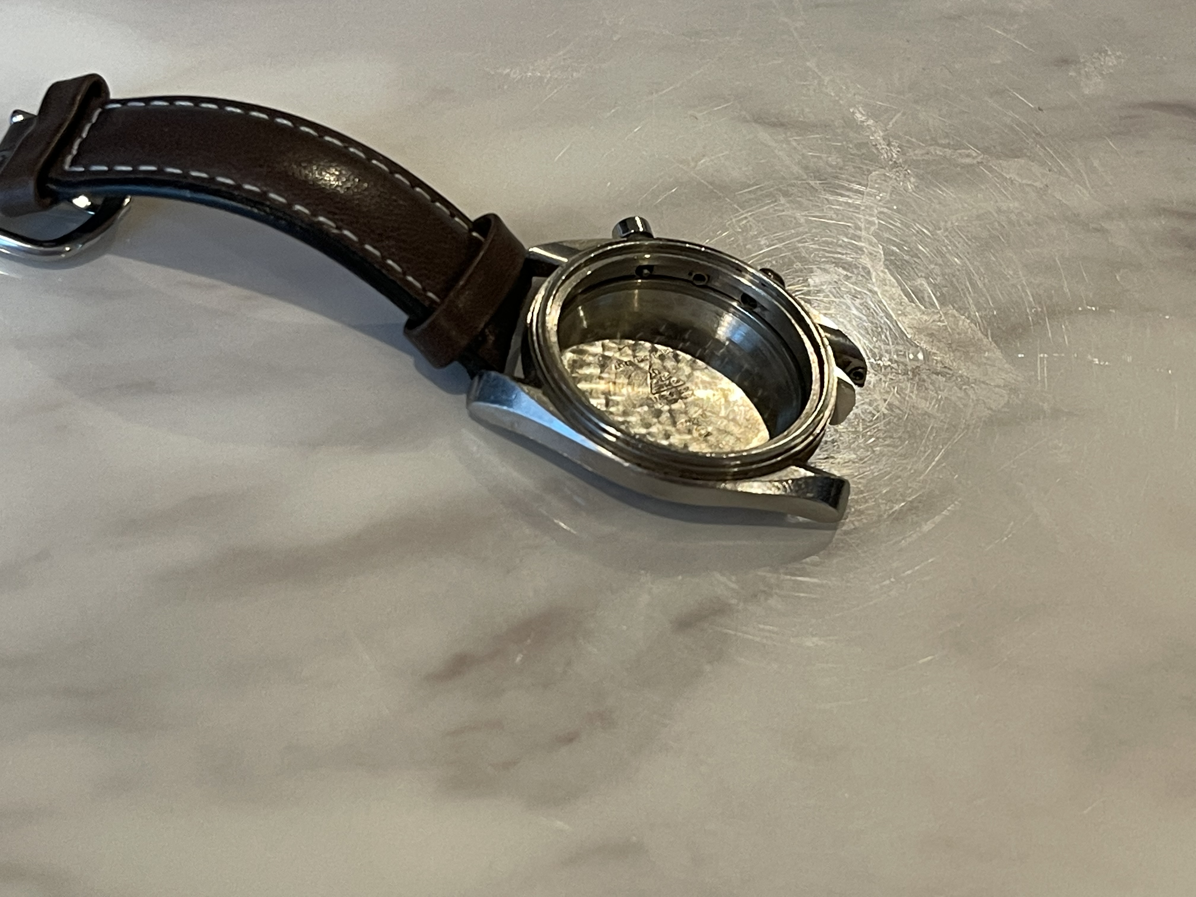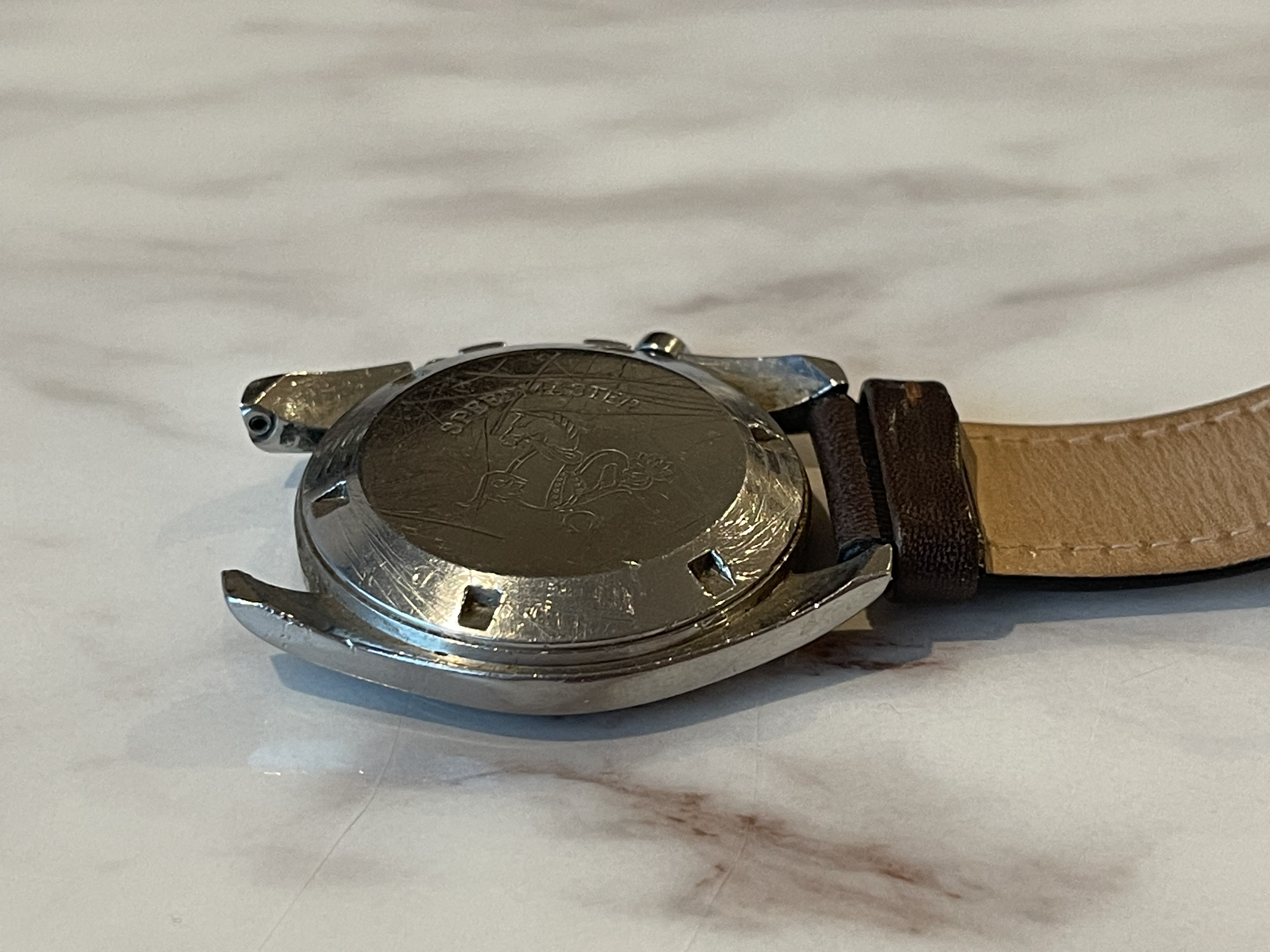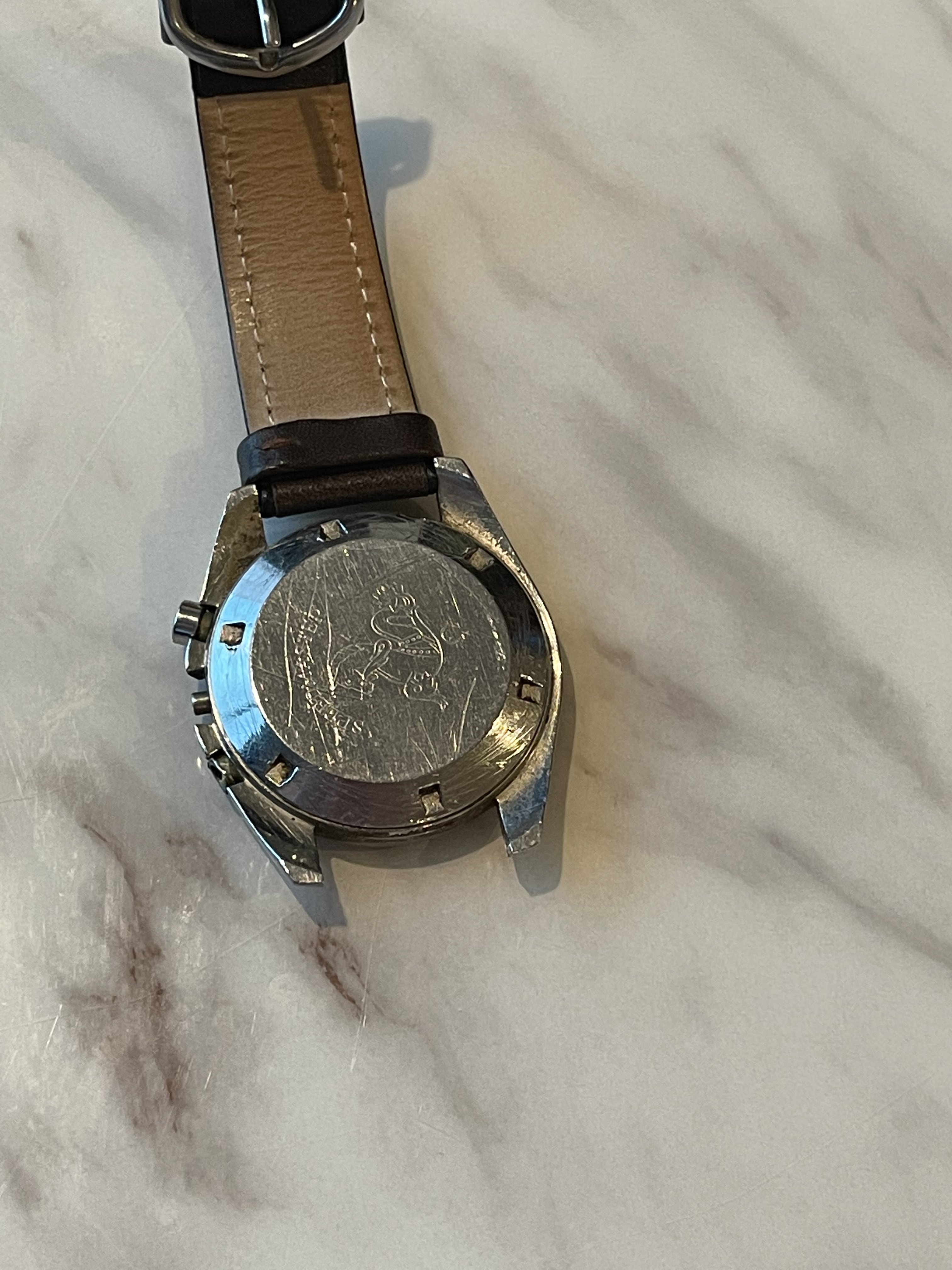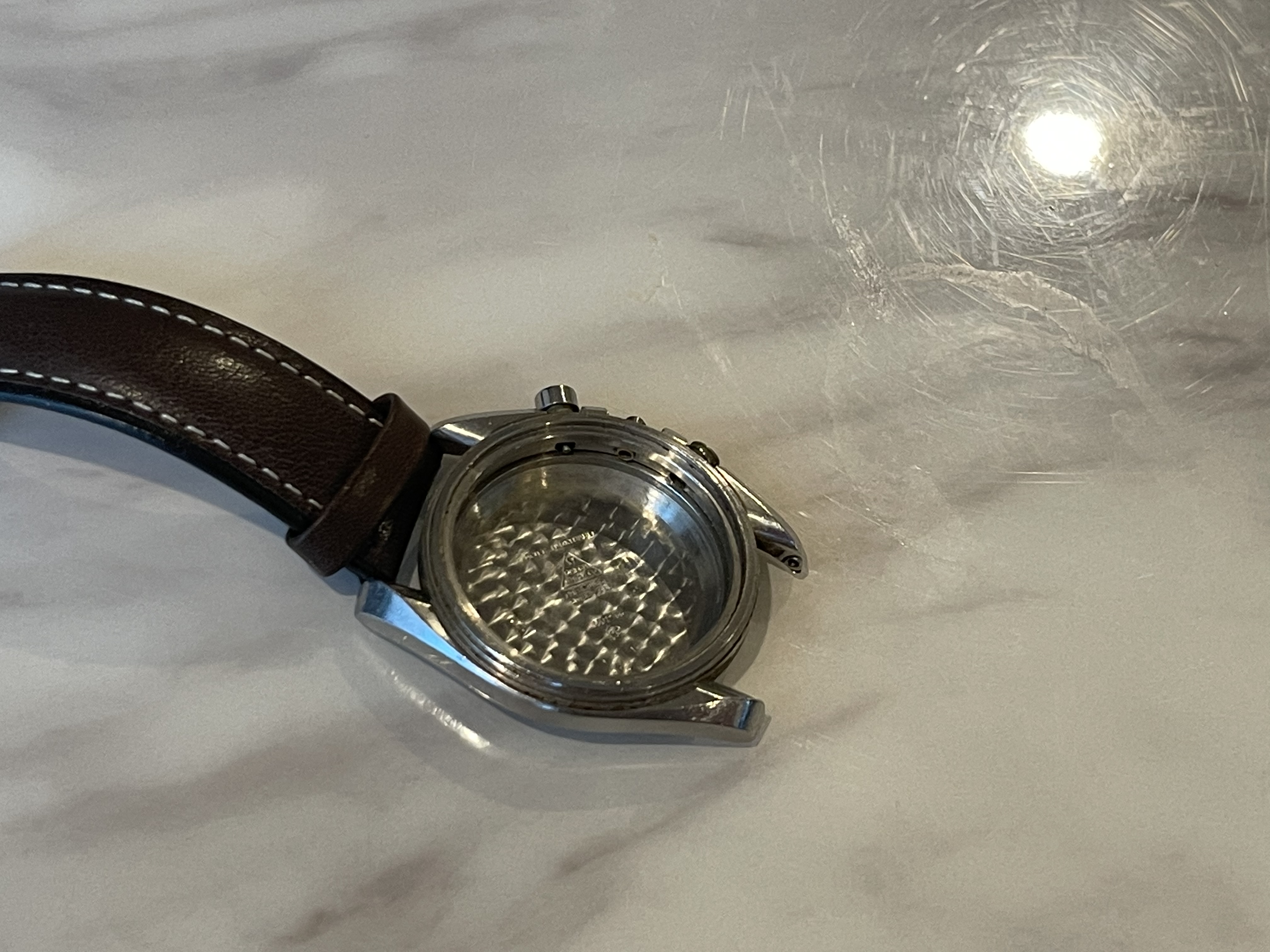 The caseback has idiot marks on it from someone trying to open it with pliers but I haven’t polished it or attempted to clean it up and while they’re they’re prominently seen in the photos they’re shallower than they look.