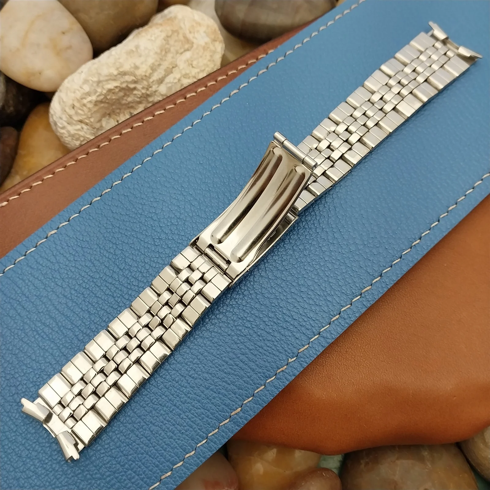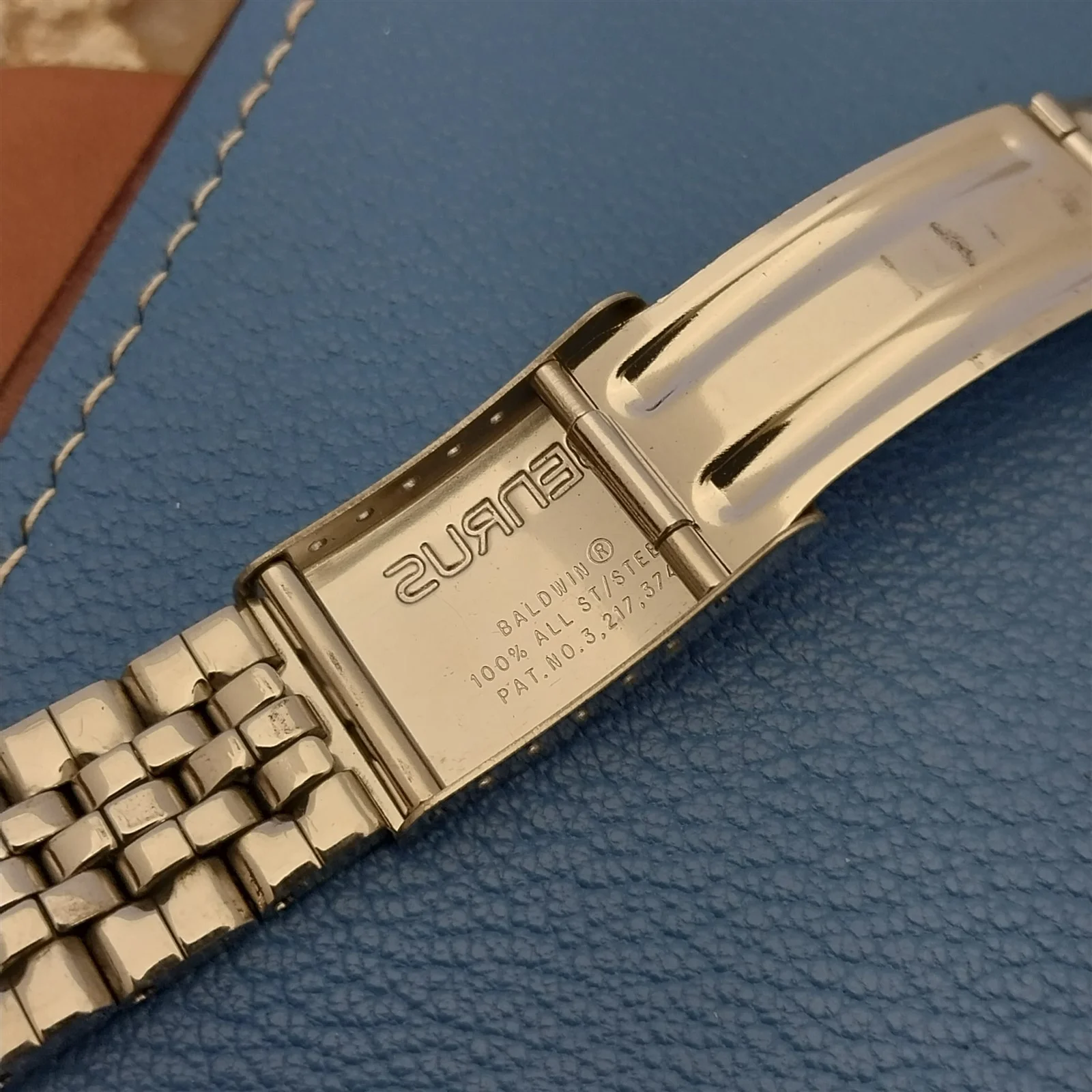 ·NOS unused 1960s-1970s Baldwin stainless steel deployment watch bracelet.