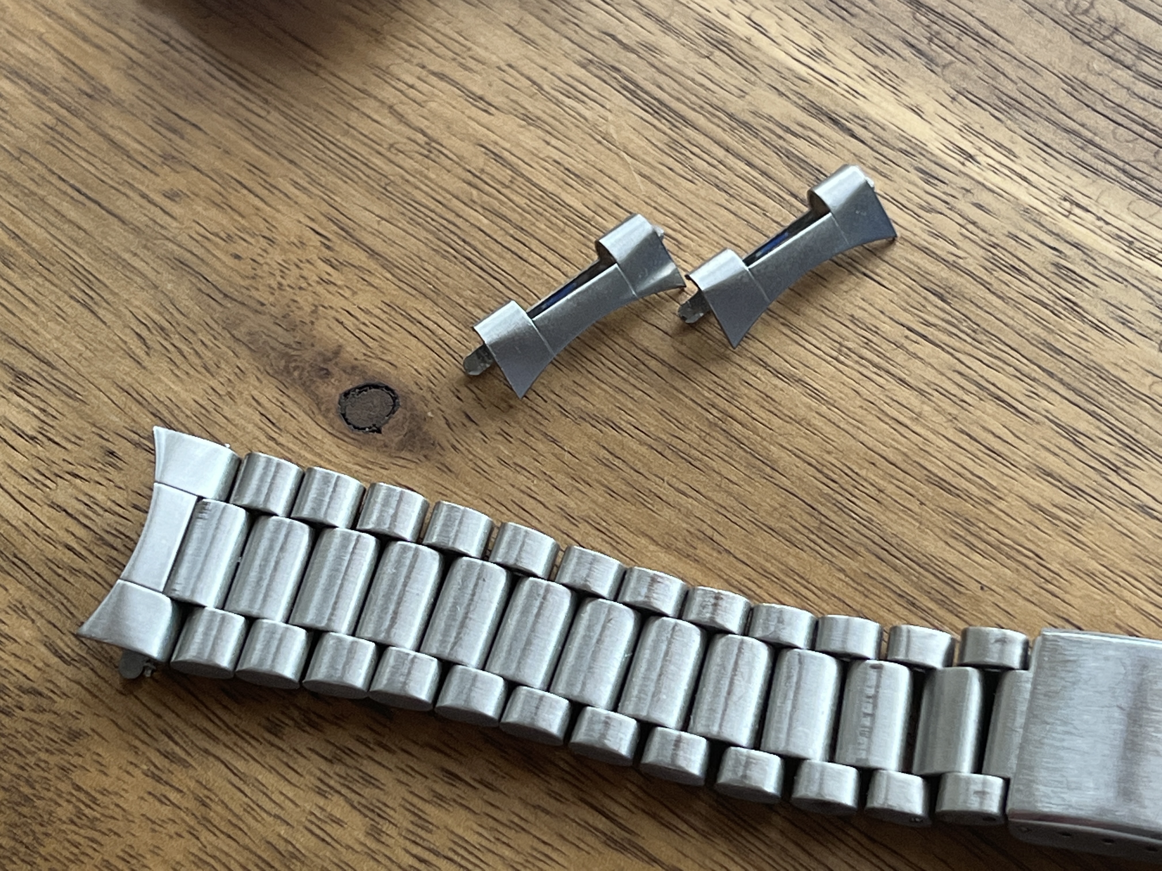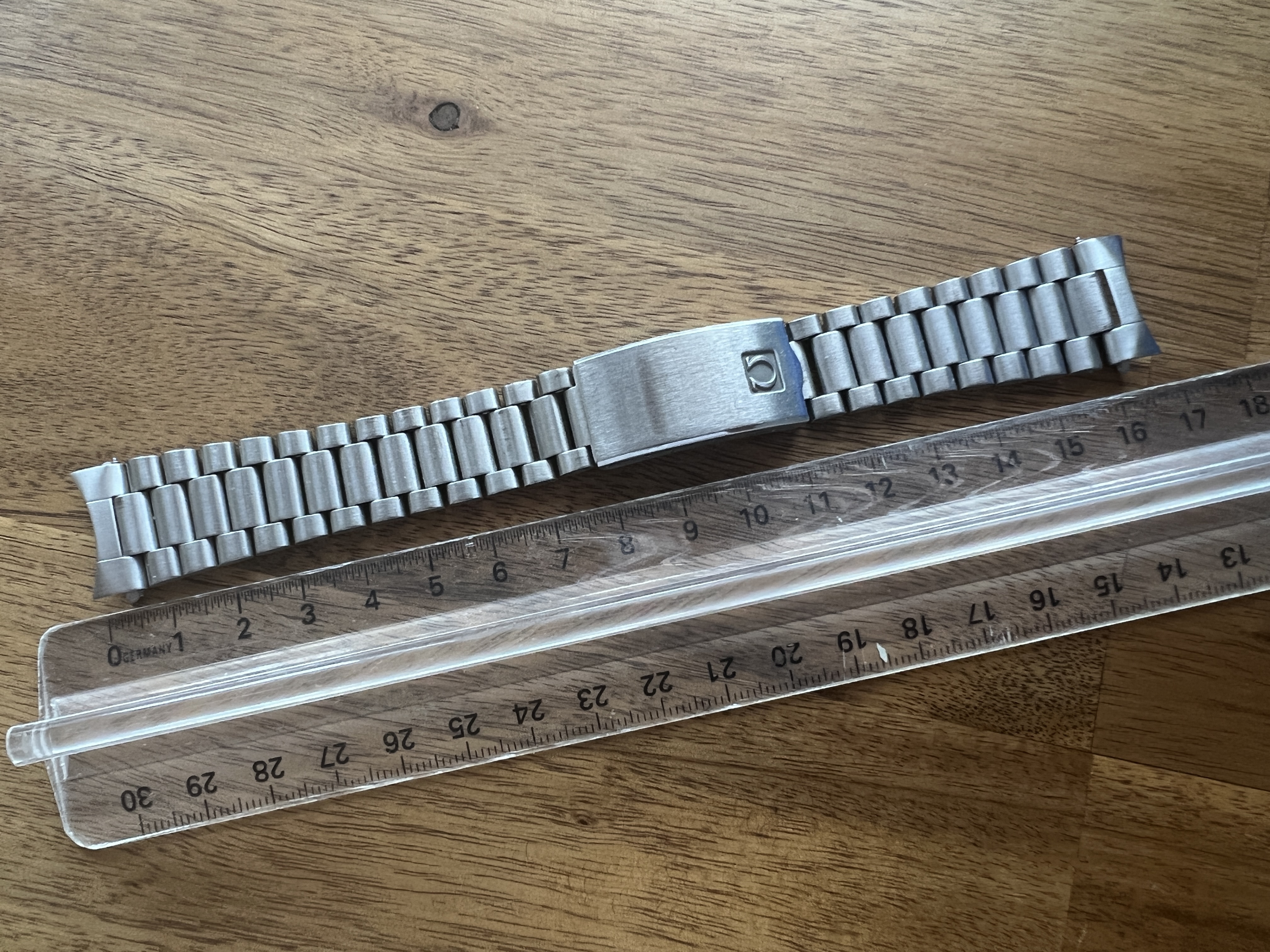 I got it with 633 on a jumbo Constellation, which has a 19mm lug width. It sat perfectly between the lugs, so someone had the endlinks filed down to match the unusual watch. I think the job was very well done, the edges are straight, they fit tight as a drum and they are in very, very good shape.