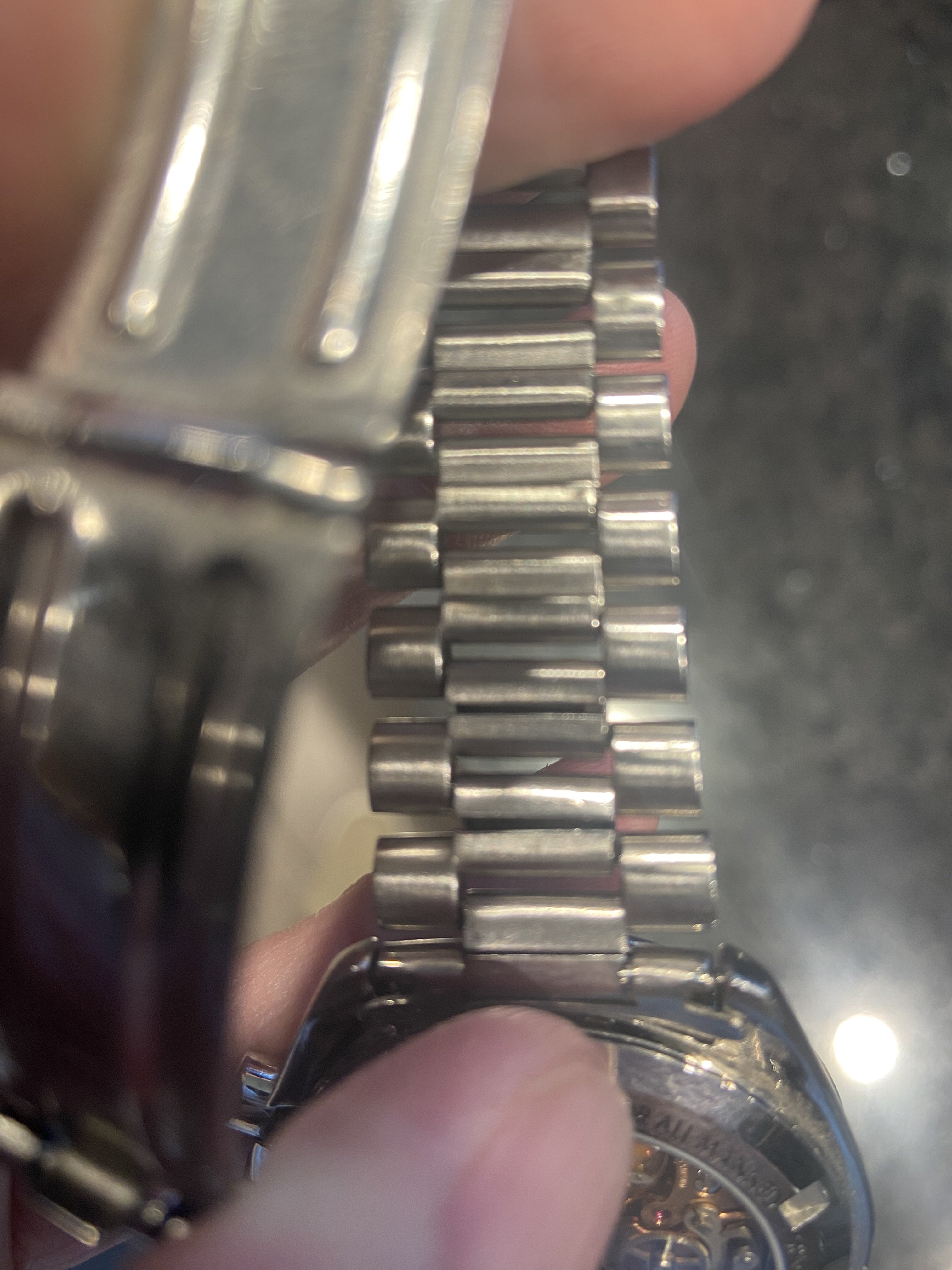 ·Hello all, I have a rather weird question. I have a 1171 bracelet with quite a lot of play. The middle links have streatched out a bit. I can take to have them tightened, but how far do they squeeze together? Only until they meet? Or do they meet and then squeeze down so they look like a number 8 from the side? Thanks for any insight!