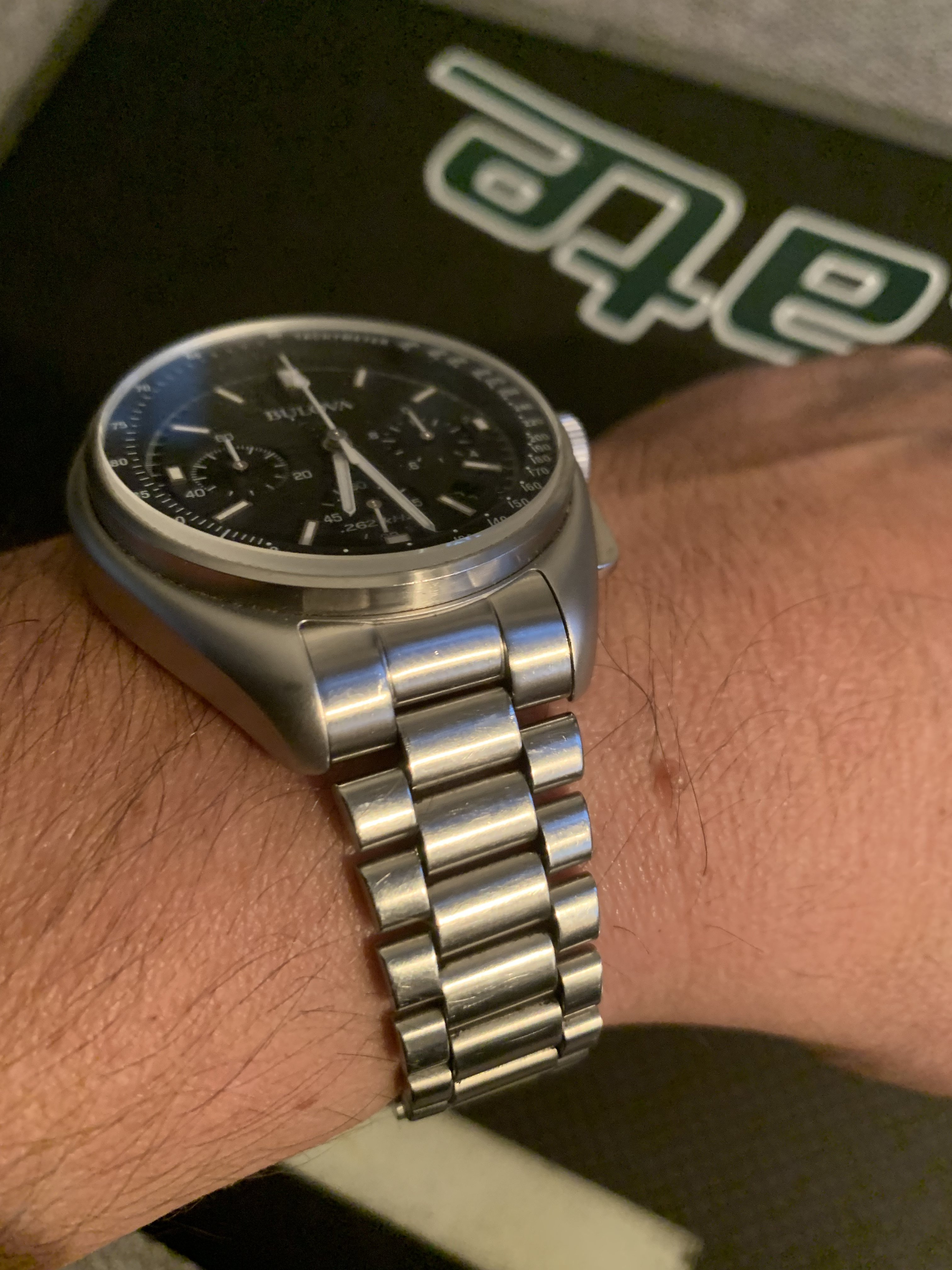 For what it’s worth, I just wanted to share the results from a little tinkering exercise I did recently. As it turns out, the omega 1171 bracelet does fit on the LP solid endlinks and matches perfectly (in my opinion). It’s my daily work beater and I love the thing, but the non taper bulkiness of the OEM bracelet kept me reaching for my speedies instead. I did however change out the clasp for an US one, since leaving on the original seemed blasphemous.