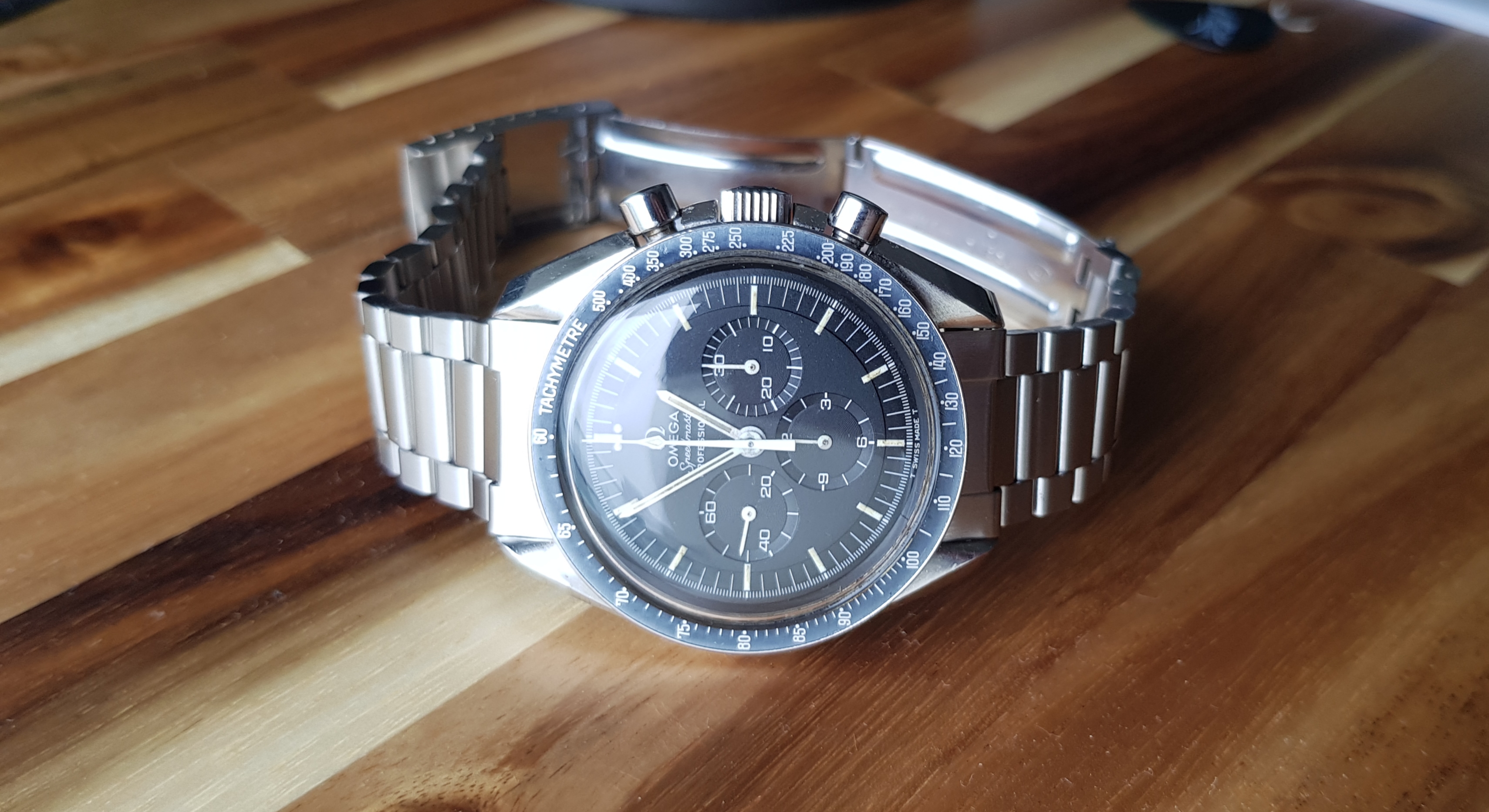 Here’s my 1971 Speedy Pro with its 1175/640. The 1175 is a great bracelet, but not easy to find as its production period was relatively short. The adjustable clasp makes it easy to size it down without having to remove a link.