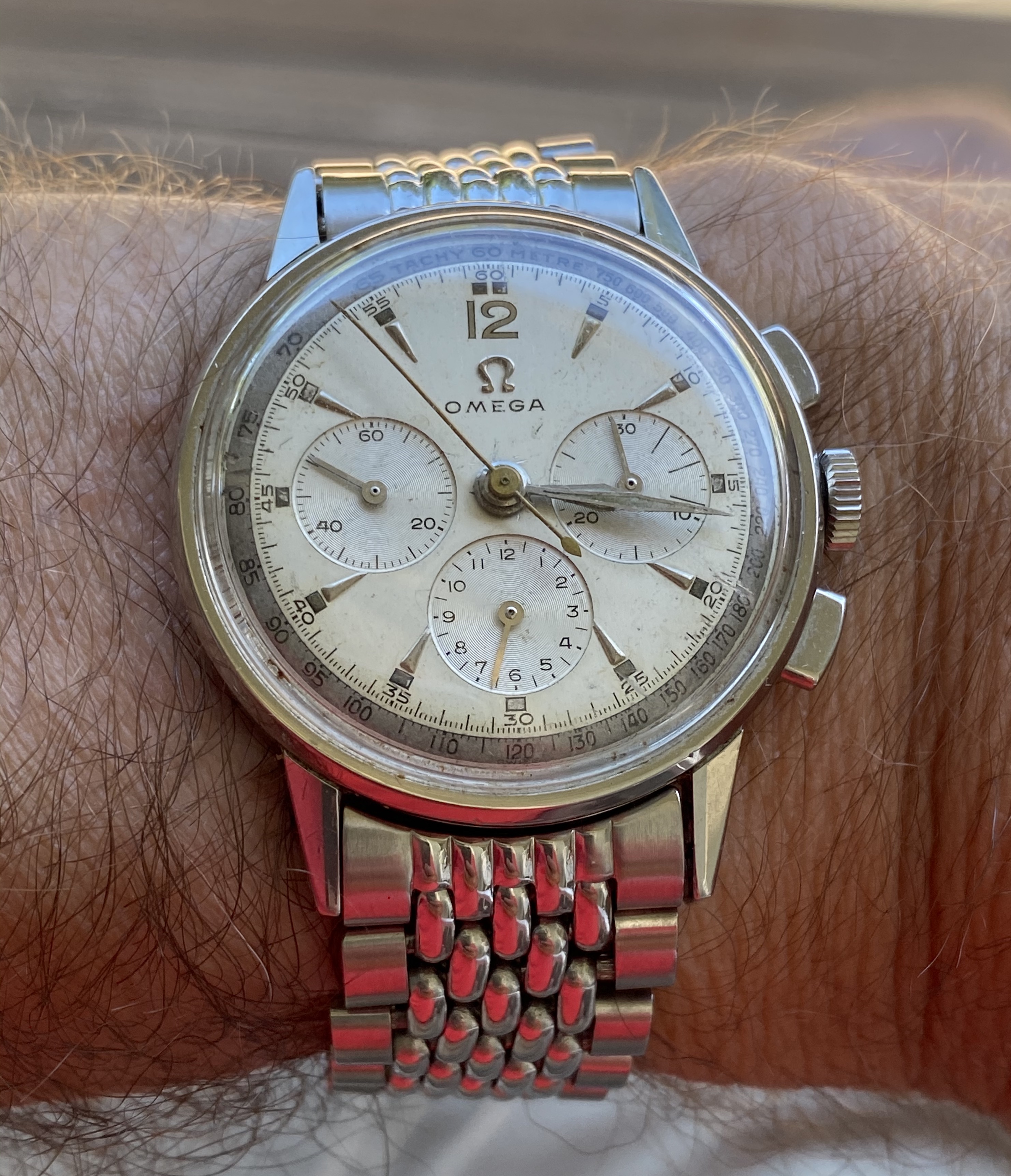 Greetings: I have an old Omega that belonged to J. Houbolt the designer of the Lunar landing module or LEM. That was the first landing craft on the moon. Dr. Houbolt was a neighbor and his nephew has been my closest friend since children and I’m old. As you can see by the date calendar it was probably last worn in 1974. He was very attentive to details and knowing him he would have changed the calendar. He worked along side of Werner Von Braun however he was smarter than Von Braun. There are you tube videos explaining how Houbolt had a “crazy idea” of the first way to get a man on the lunar surface. He almost got fired for pushing his idea but in the end Von Braun stood up and said that his own massive rocket plan that was supposed to land on the moon wouldn’t work and that the only way to get a man on the moons surface was Houbolt’s Lunar rendezvous and landing module plan. And it did work. They had a big parade for him when he came home. He’s sort of a forgotten or overlooked hero. He was my hero and a very cool man. He passed away some time ago. This watch was with some other things he had in a box.