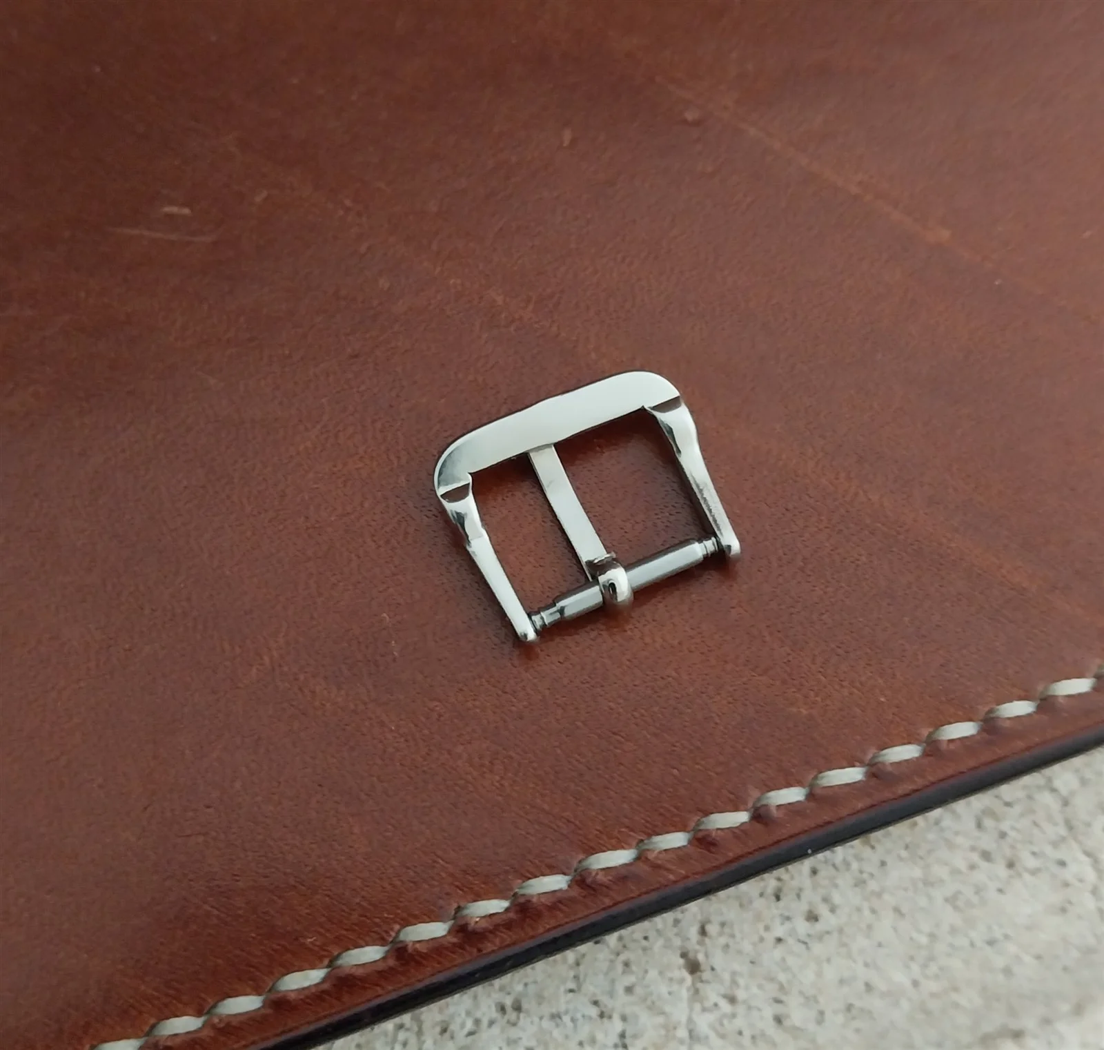·NOS unused 1960s old-stock 1/2" (13mm) silver-tone watch strap buckle.