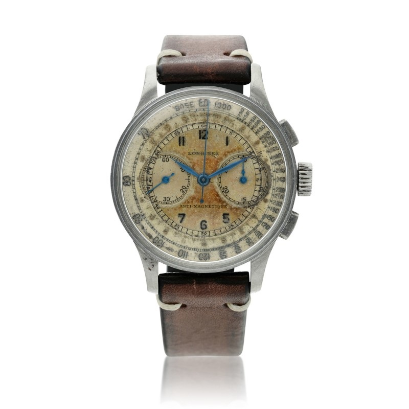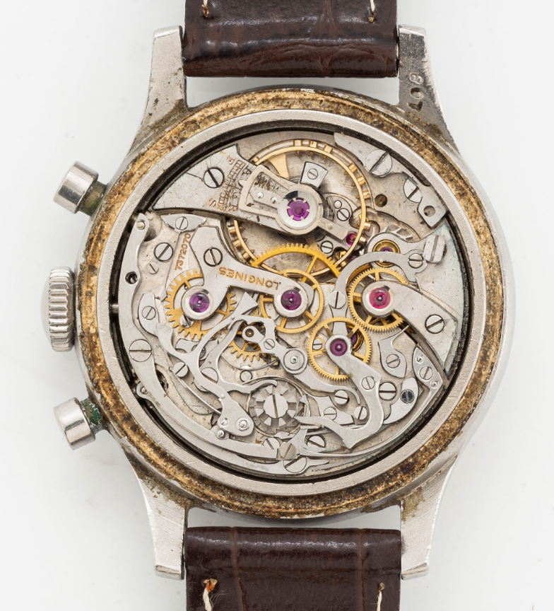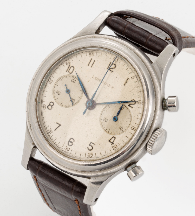 I am intrigued by the hour and minute hands. Firstly, a combination of blue and silver hands is atypical. Secondly, they appear to have been re-lumed. Though the watch may be NOS, it does not appear to be untouched.