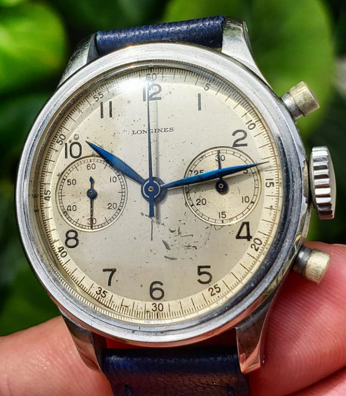 I'm more of a dial guy in terms of eval and going through the first 15 or so pages of this thread did not see any examples with the Longines logo in san-serif as this example has which is bringing me to think redial. But i do know that that logo was sometimes used in the 40s as well so wanted to get some of your thoughts and hopefully blessings before I pull the trigger.