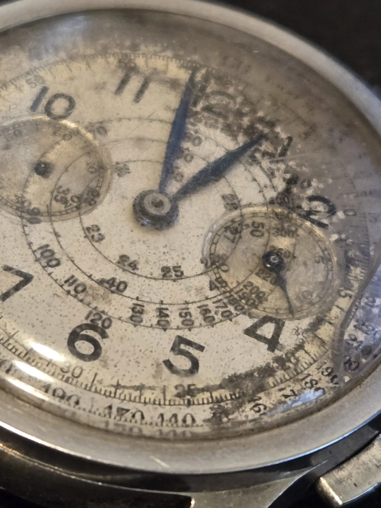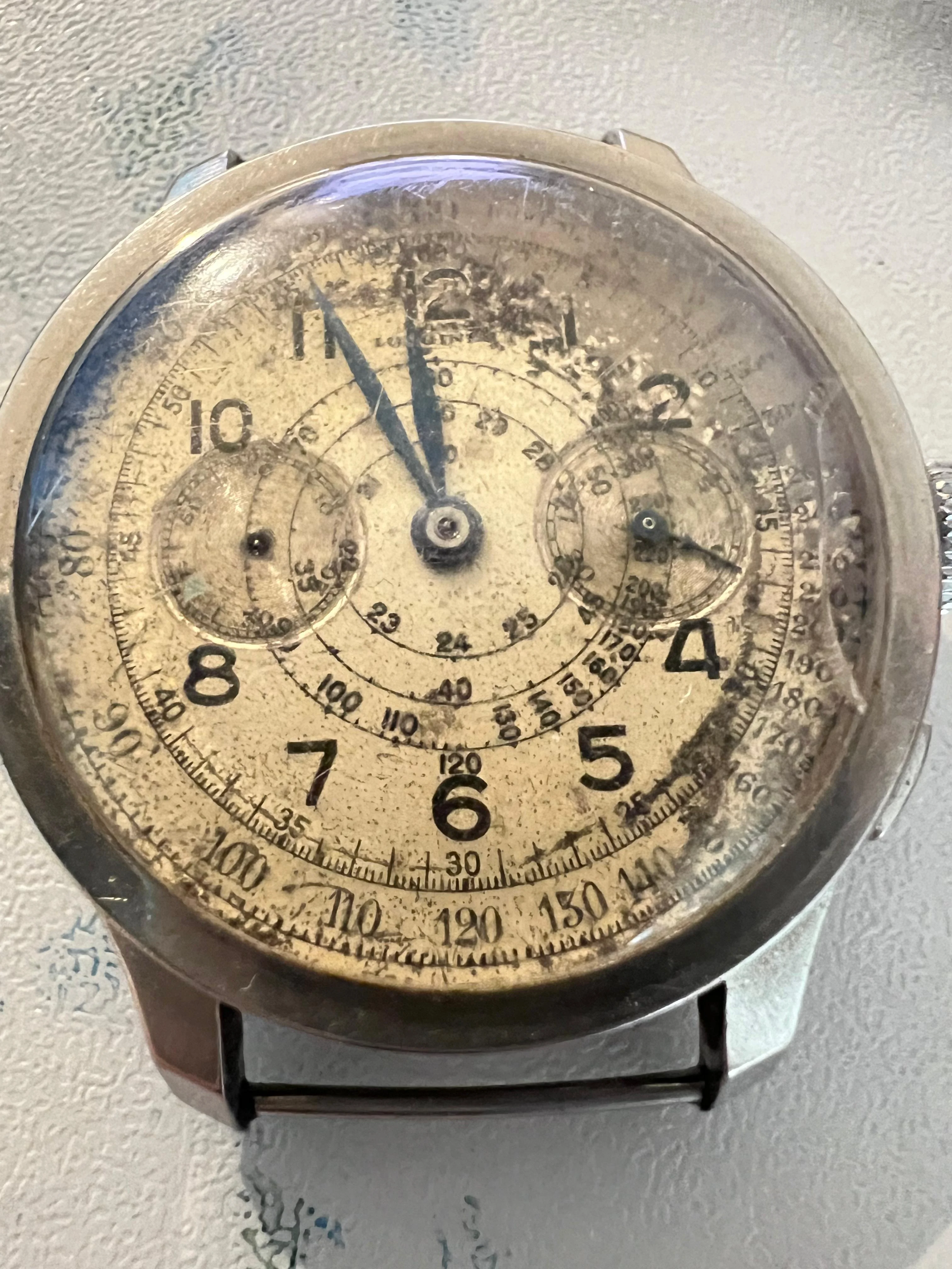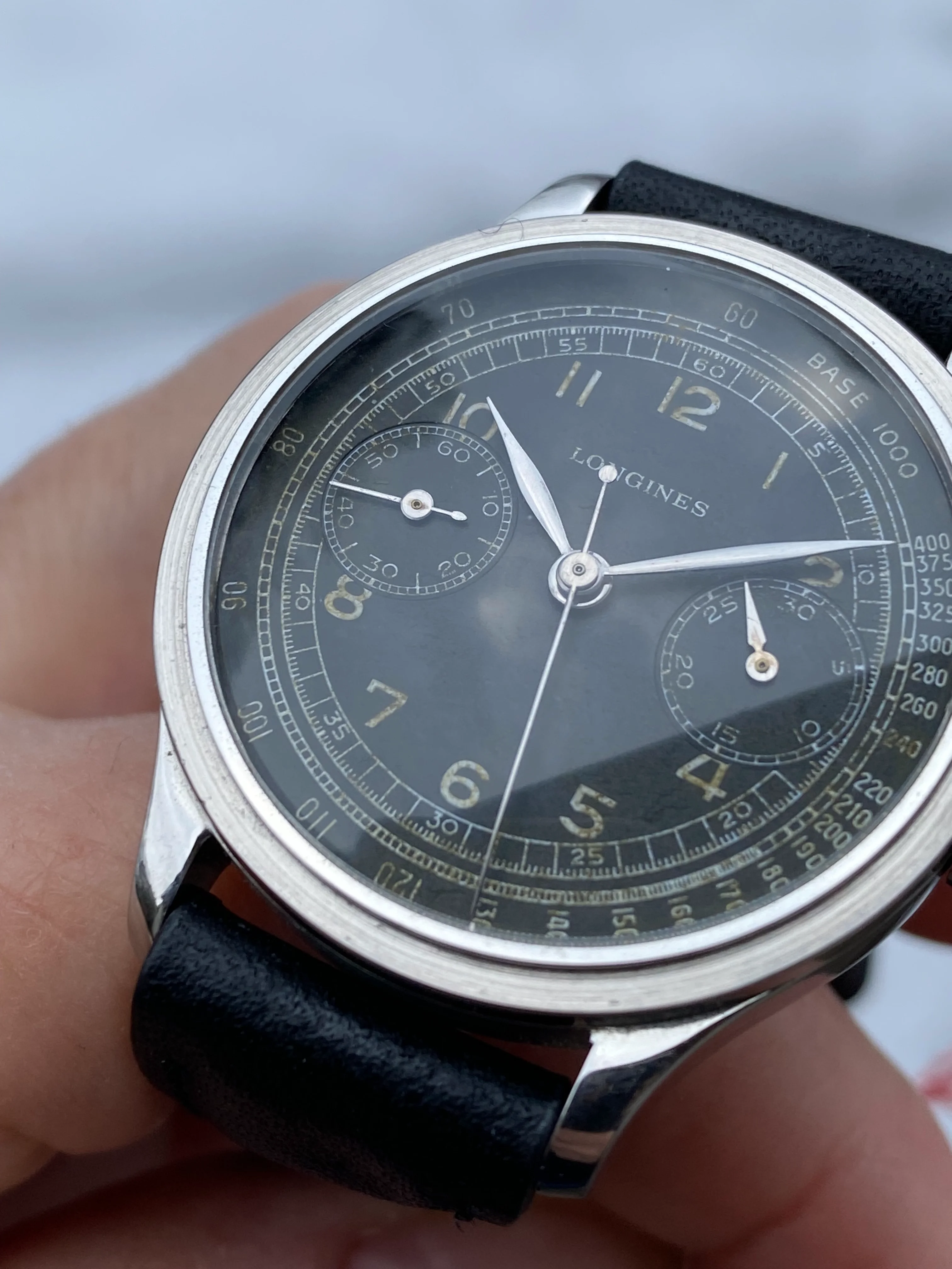 Complex dial/subdials, no obvious errors at first glance. Different fonts for the numerals (I could recognize at least one open six, some flat three, some round), logical arrangement, size of the LONGINES signature, edges of the subdials, length and style of the hands - everything seems in order (considering the quality of the photos).