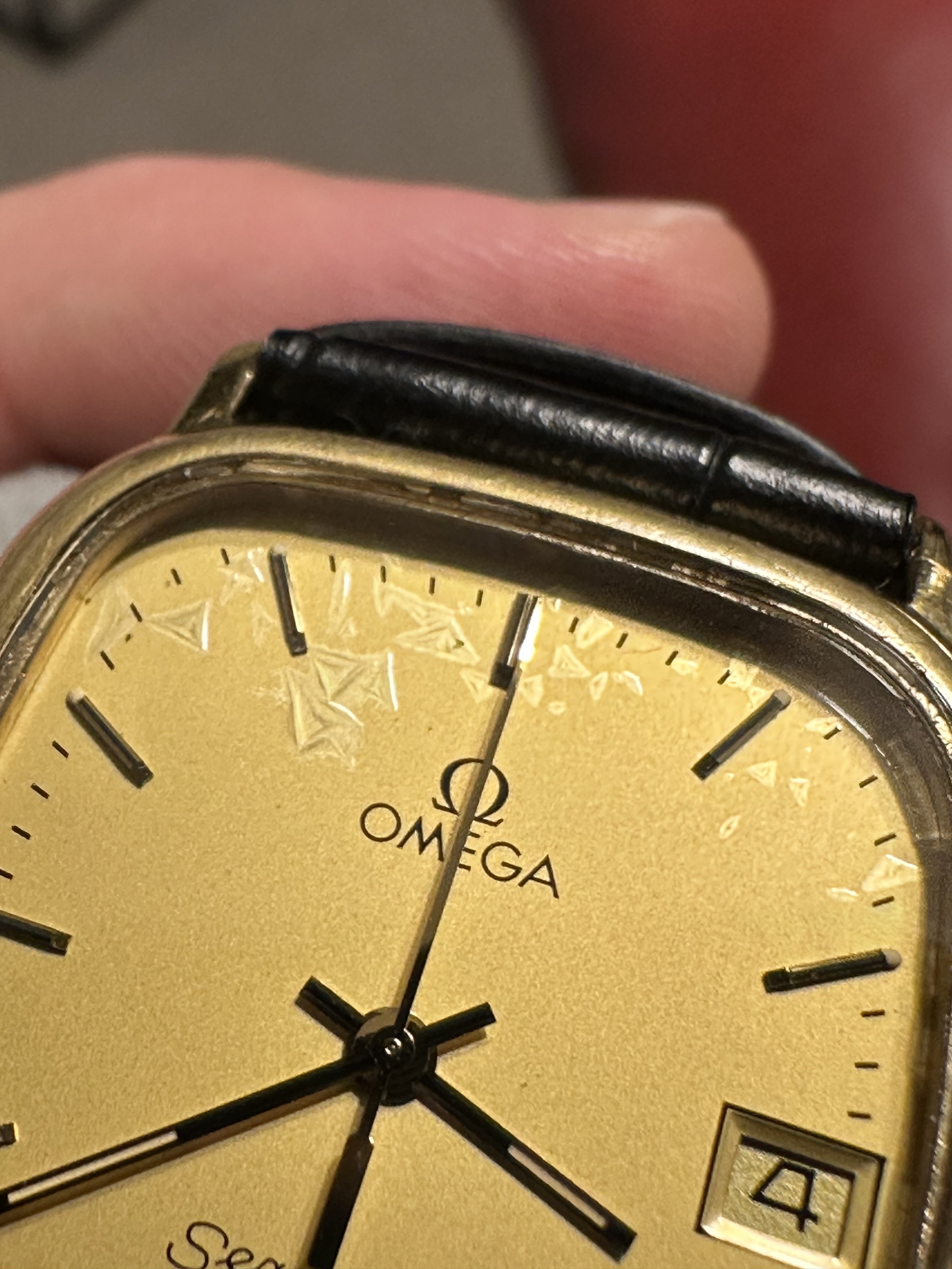 So I got this watch a few months ago, and was able to have the crystal replaced, As it was super beat up. I knew there was something underneath that is damage but I’m not sure what is causing it. Now that it has new glass and a gasket is it good to go or is it going to naturally get worse? Any ideas what it is?
