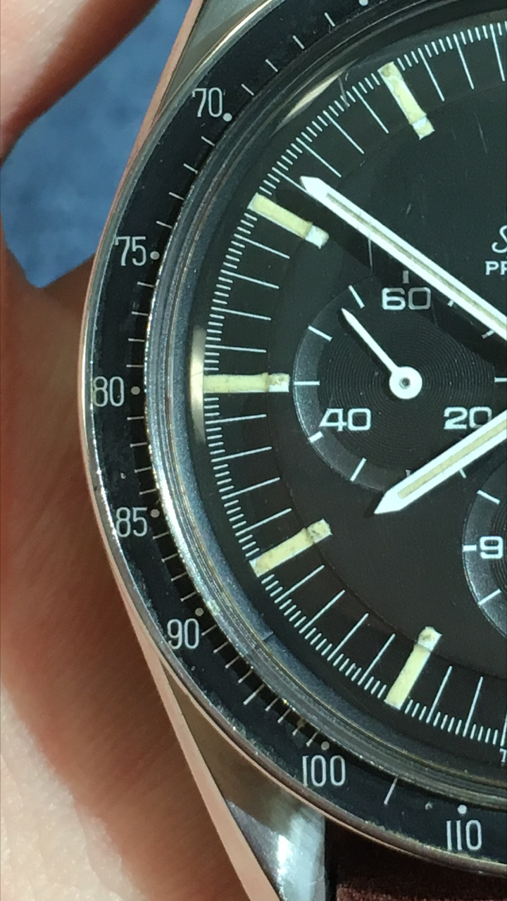 I've been a watch collector for a while, but only recently jumped into the vintage arena by purchasing a 145.012-67. The watch looks to be in excellent shape, but I was hoping some of the seasoned Omega collectors could weigh in on it. The case, dial, and bezel all look very clean. I do have a question about the bezel: the black seems to wear differently on the outer portions near the DON/85 ticker, is this normal or has the bezel been retouched/repainted? The watch came with an Extract of Archives, confirming the movement is within the correct range for a 67. I have pictures of the movement, but they are from the seller. I am looking for recommendations for a Omega watchmaker in Los Angeles, so that I have someone look closely at the watch. Any thoughts or comments about the watch generally are welcome. Thanks in advance.