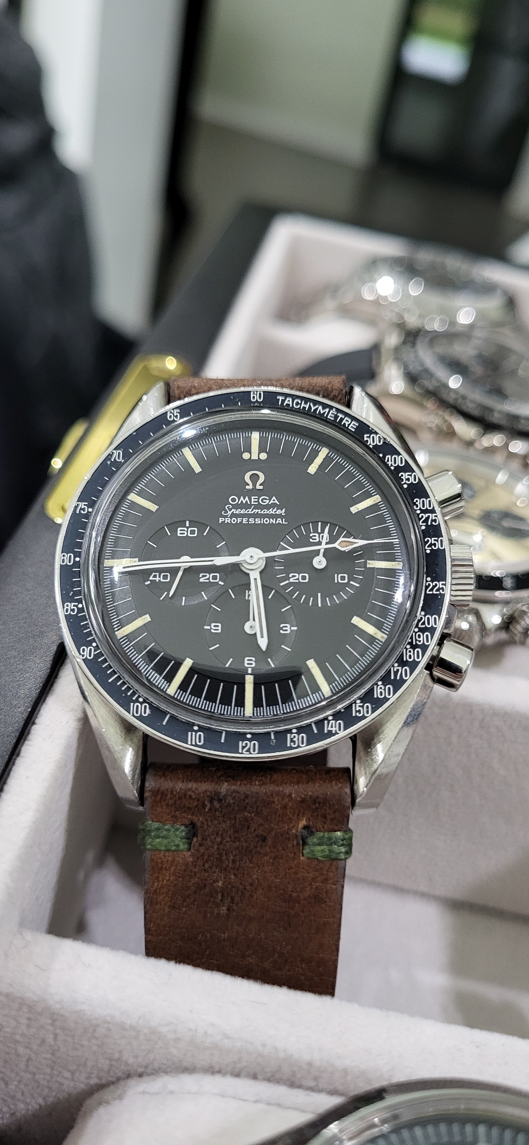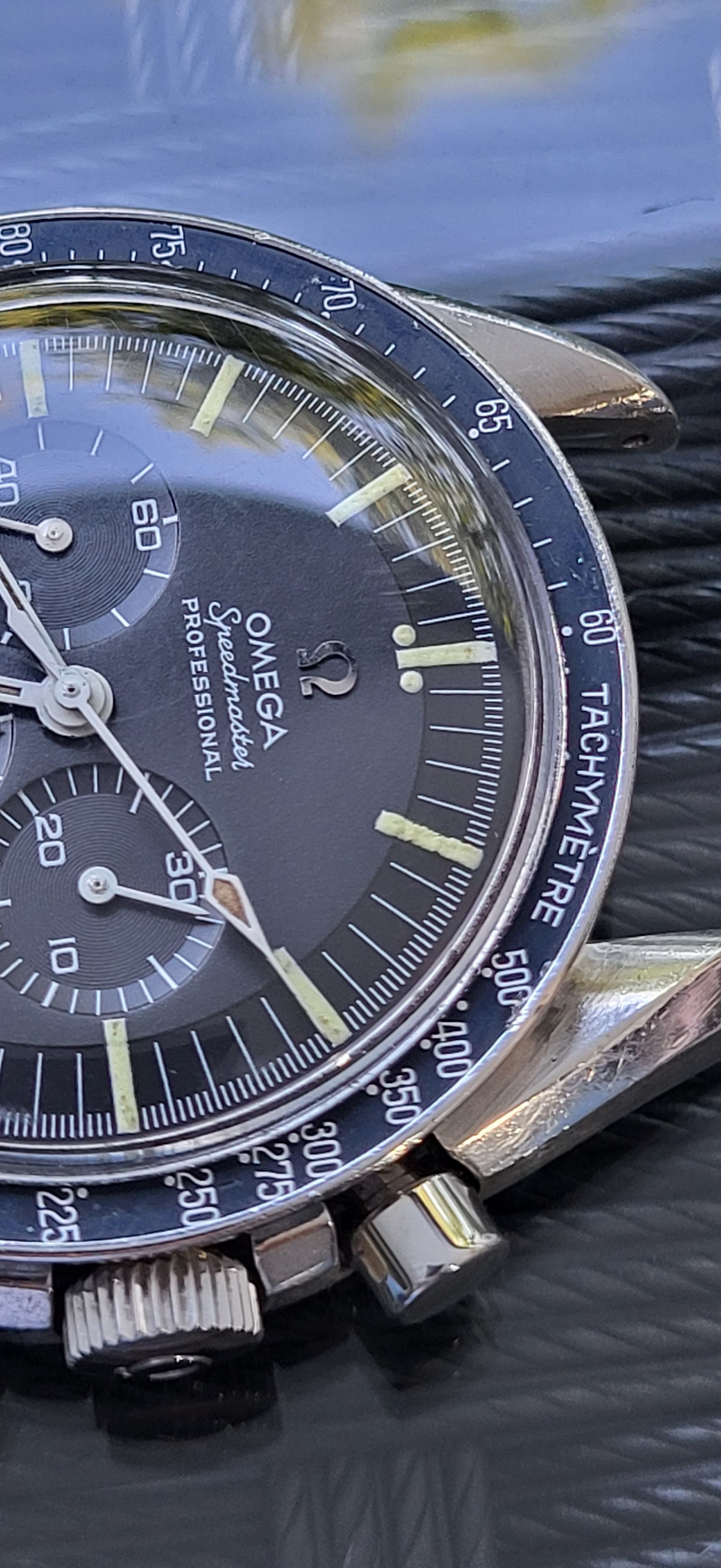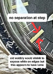 ·Does anyone have any opinions on whether or not the following dial and/or hands might be a (really clean) re-lume (or at least replacement hands)? Part of me thinks they look a little too pristine (relative to the bezel, for example). But then again, the rest of the dial itself does look pretty clean. What do you think? Thanks,