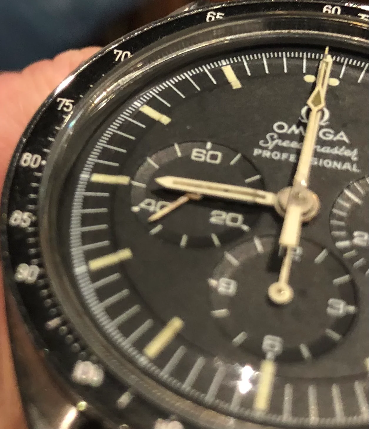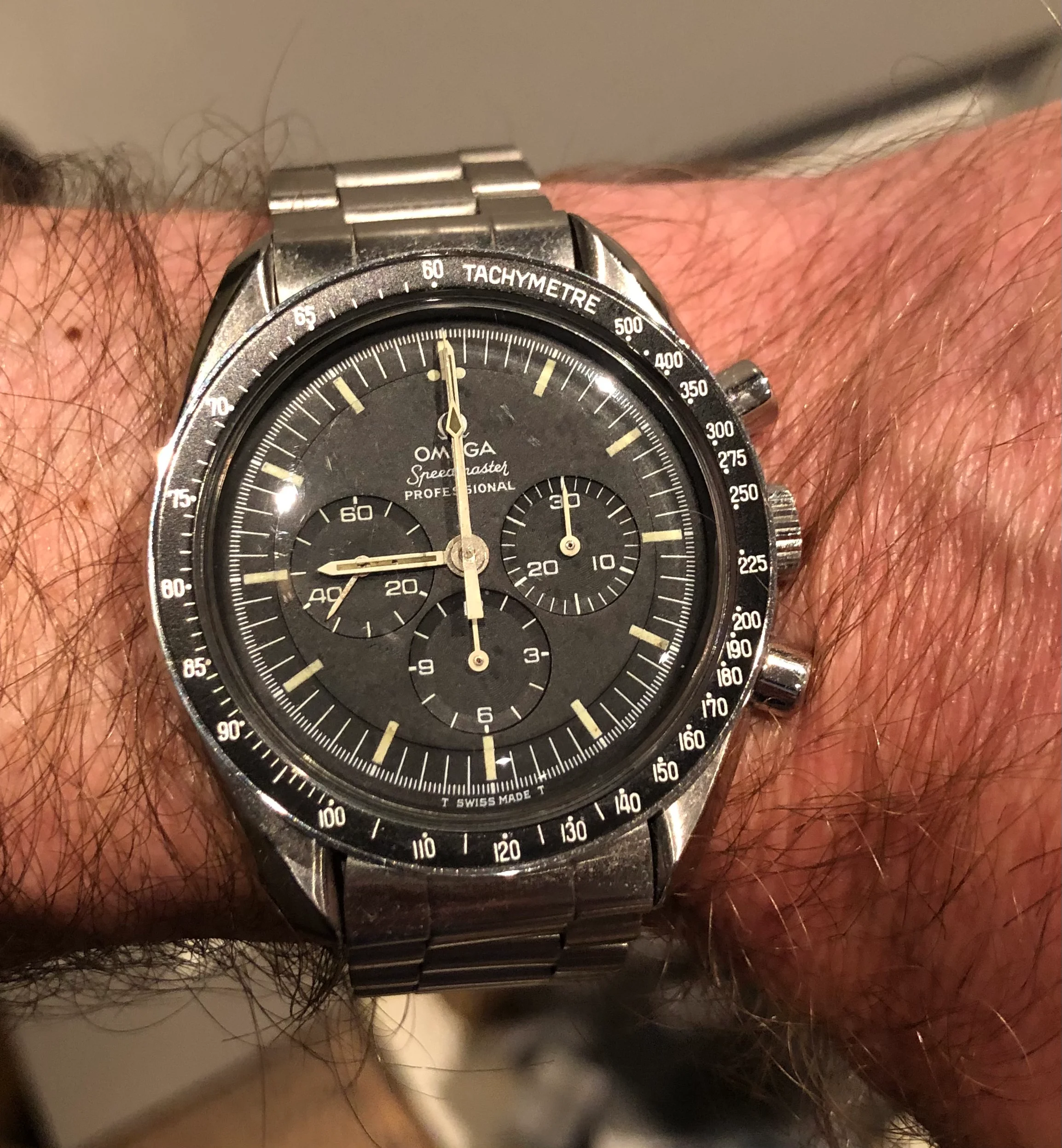 ·It has been quite some time since I have been back on these forums. Although I still don't know very much - I - REALLY - didn't know anything when I first arrived. Especially with the Speedy. Example: buying an extremely expensive Speedmaster reference book. Did I need to now knowing what is online today? Nope. And that list goes on - but - I also made some good choices, well- many of them were quite lucky to be fair lol. I purchased my 145.022-71ST about 7 years ago as a special occasion watch - wanting something vintage to mark that occasion with. I am a car guy, and the idea of of a watch called Speedmaster seemed to be on the right track - pun intended (sorry). Prices were very welcoming - especially for a non box and papers example of a 145.022-71ST - which wasn't - and probably still isn't - (even close to) the most popular of the T Swiss Made T dials out there lol. It came with some good stuff - which I didn't know exactly how good it was - until later. The movement was original (32.x), the body was original, with the engraved caseback also the original 71ST marked (inside caseback). Original crystal was in very good condition and most importantly it came with the original step dial and hands - albeit as parts after the previous Shop (on Chrono24 where I bought it) had it serviced. I had a replacement dial and hands in the watch when bought. The bezel was also newly replaced - with no part saved here (the replacement bezel is shown on the last watch pic - with the original dial and hands). The bracelet was a 1175 - which is period and watch correct - although I subbed it out for a NOS 1171 (but kept the 1175 just in case). Showing the time when I was searching - about 1.5 years or so after getting the watch, I found a NOS DN90 bezel. And for 750 dollars. That was the ultimate score for this watch. So beyond the hands - which are fairly worn - but with nice patina, the watch is in extremely good shape with a NOS bracelet and bezel. I (back) then - looked for a box - and not knowing what I was doing bought two boxes - one I thought was time correct (the white box) and once I found out it was the red box - and I couldn't find a nice one - I went for the ridiculous to some - but I love it - super Speedy Moonwatch box kit. I also picked up the red vintage box later on. I didn't realize it at the time, but this was a great watch to get into horology with lol. So much to learn - and through that - it taught me about other watches and what to look for. Although I will never get rid of this watch voluntarily - it is my favourite watch in my humble collection - I am also happy to see these step-dials 71ST's have bumped up in value to some degree. Fun to post again - Cheers!
