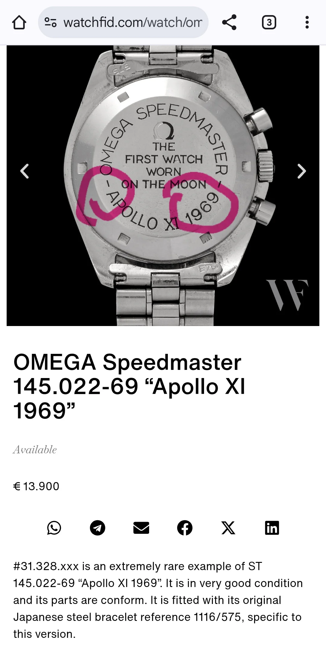 https://www.ebay.com/itm/Omega-Apollo-XI-1969-Straight-Writing-145-022-69-ST-VERY-RARE/143976243574?ssPageName=STRK:MEBIDX:IT&_trksid=p2060353.m1431.l2649