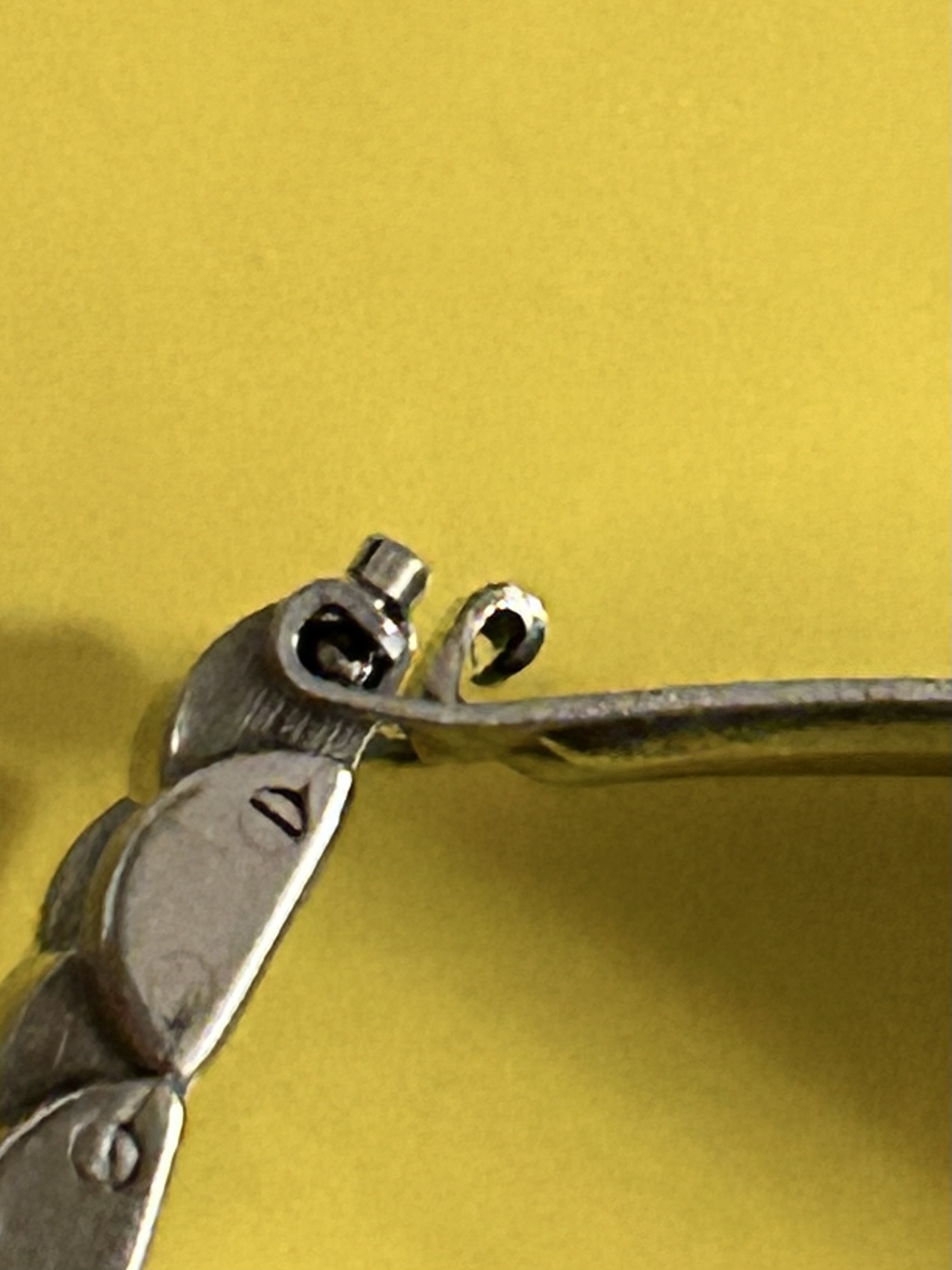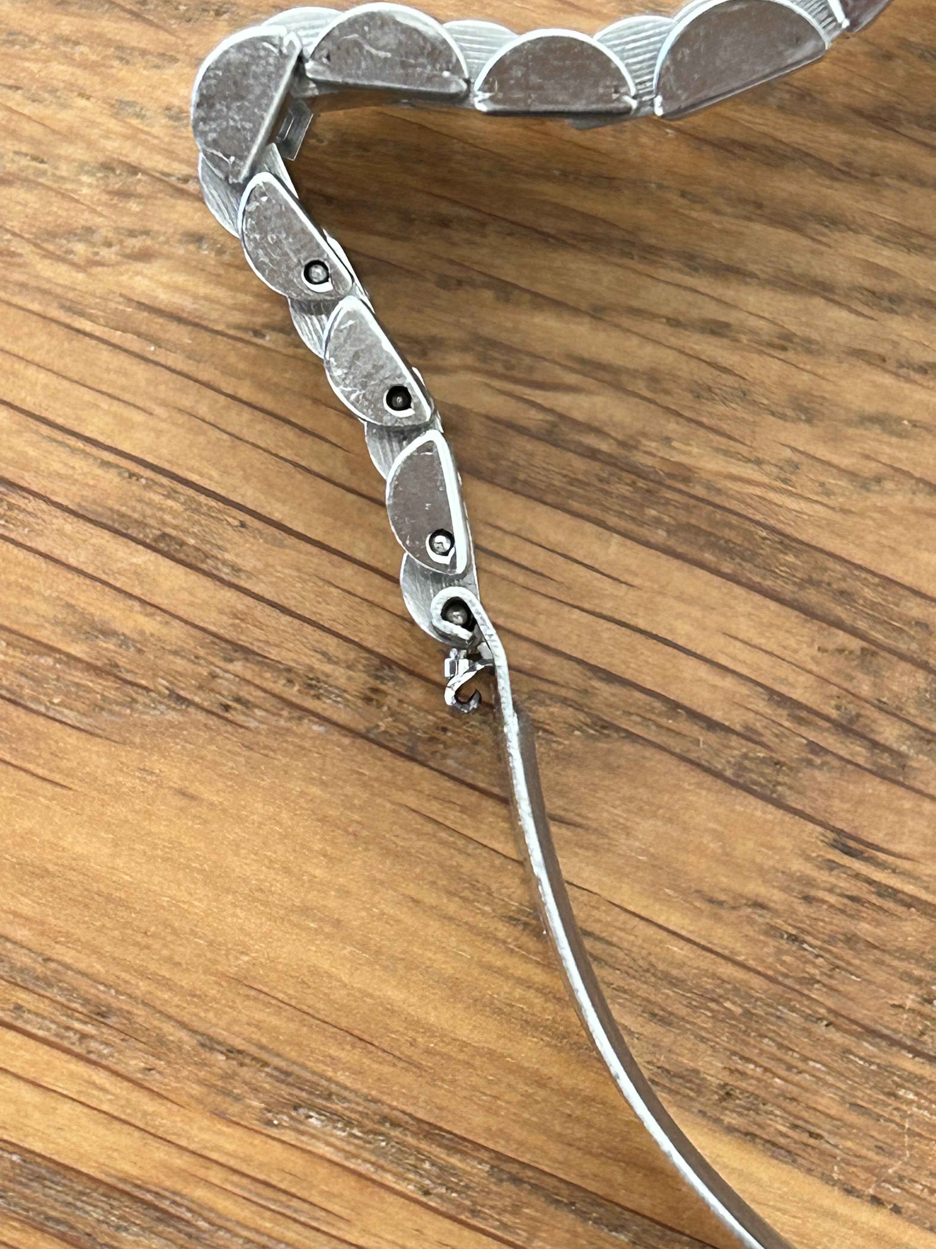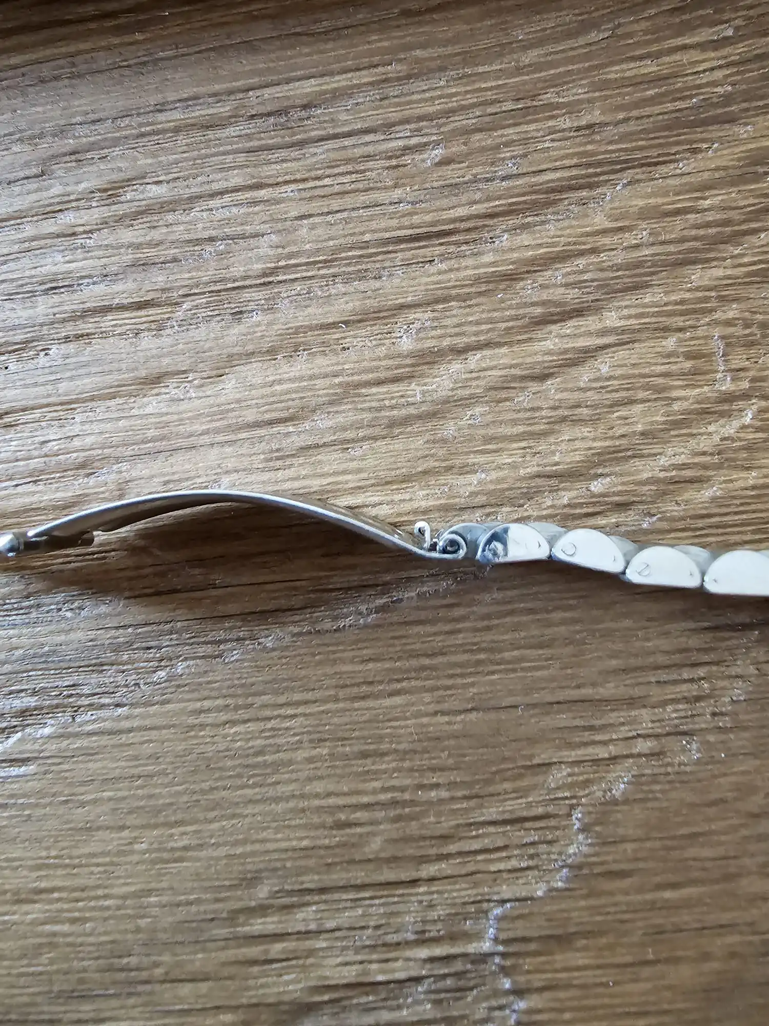 2. The clasp has a 'catcher' (for lack of a better word) which seems very bent, which also, with the bracelet being just a little bit loos on my wrist, makes the clasp open very easily (2nd photo attached). How to be best straighten the 'catcher' without breaking it (and please, if there is a specific word for it, please let me know 😀) ?