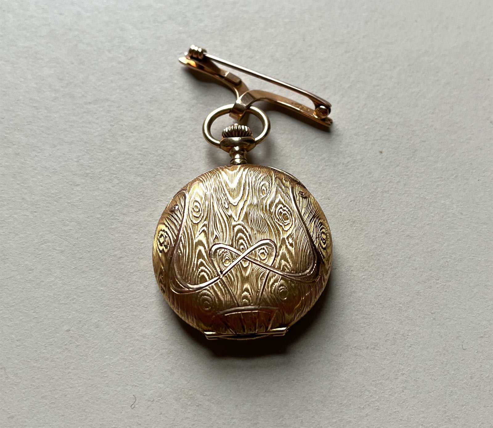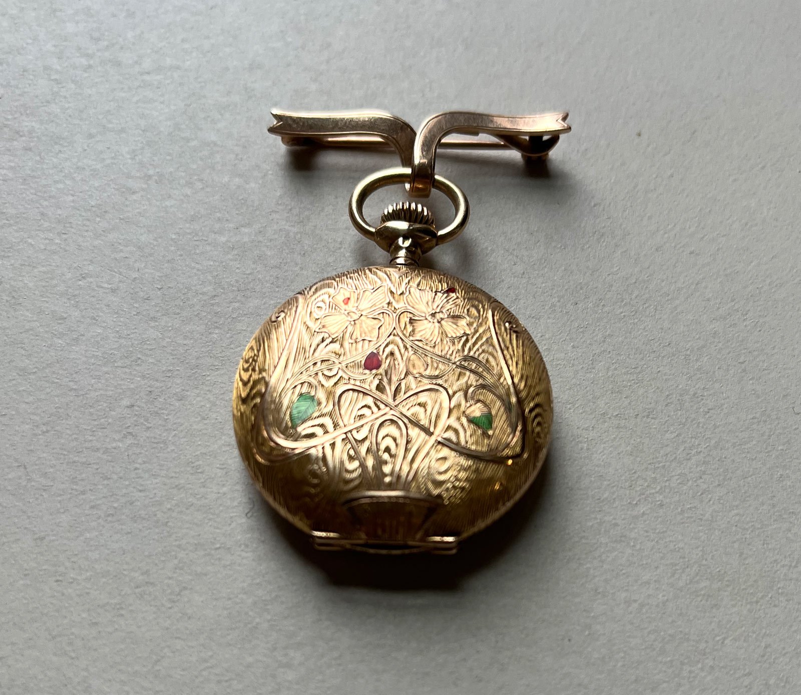 I do know it's a Grand Prix Paris 1900, 14k gold. The one thing I haven't seen in other images, it the coloring of the leaves and flower on the case.