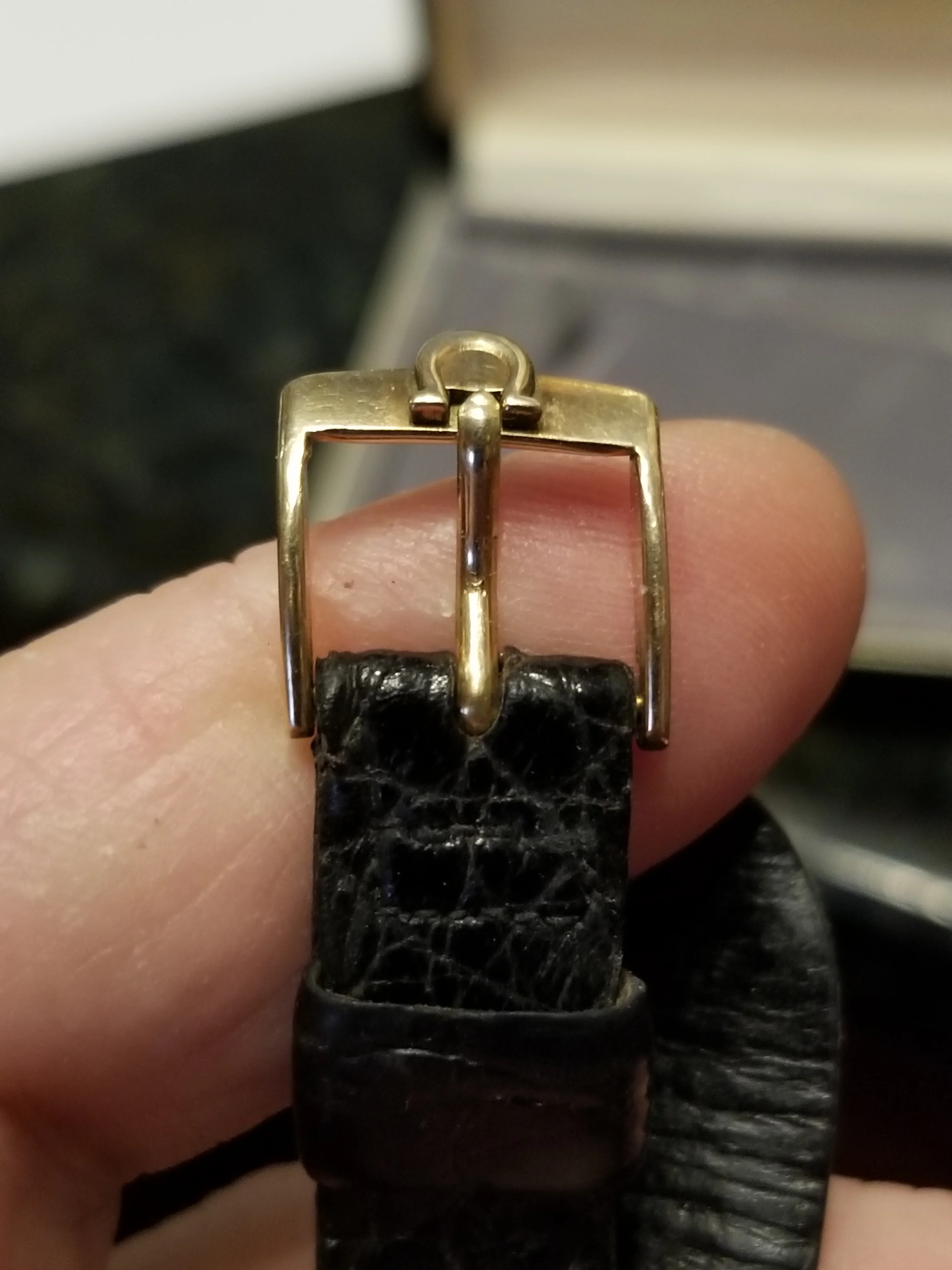·I bought this a few weeks ago and was wondering if anyone might recognize the model/Ref? I thought the condition was nice and that it might be a gold case even though it wasn't listed as such, and it turned out to be. I've been running it on my desk for a week and it keeps great time so I'm reluctant to have it opened to find out the ref as no watchmaker wants to open a watch for me without servicing it (I have a long service lineup already). If anyone has a suggestion for sourcing a nice long 16/12mm strap I'd a appreciate it. I'd also like to know if the buckle is authentic or reproduction which would affect strap selection. Was just under 1k landed ok one this type? sorry for the pic heavy post!
