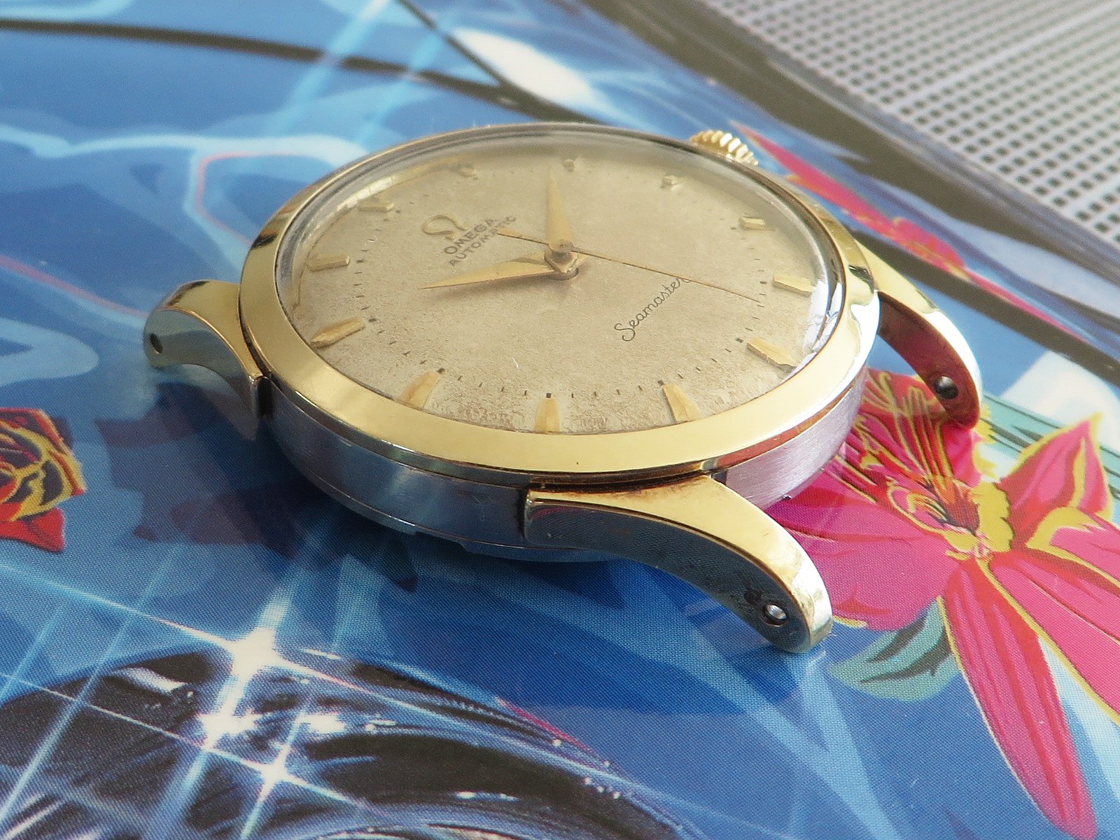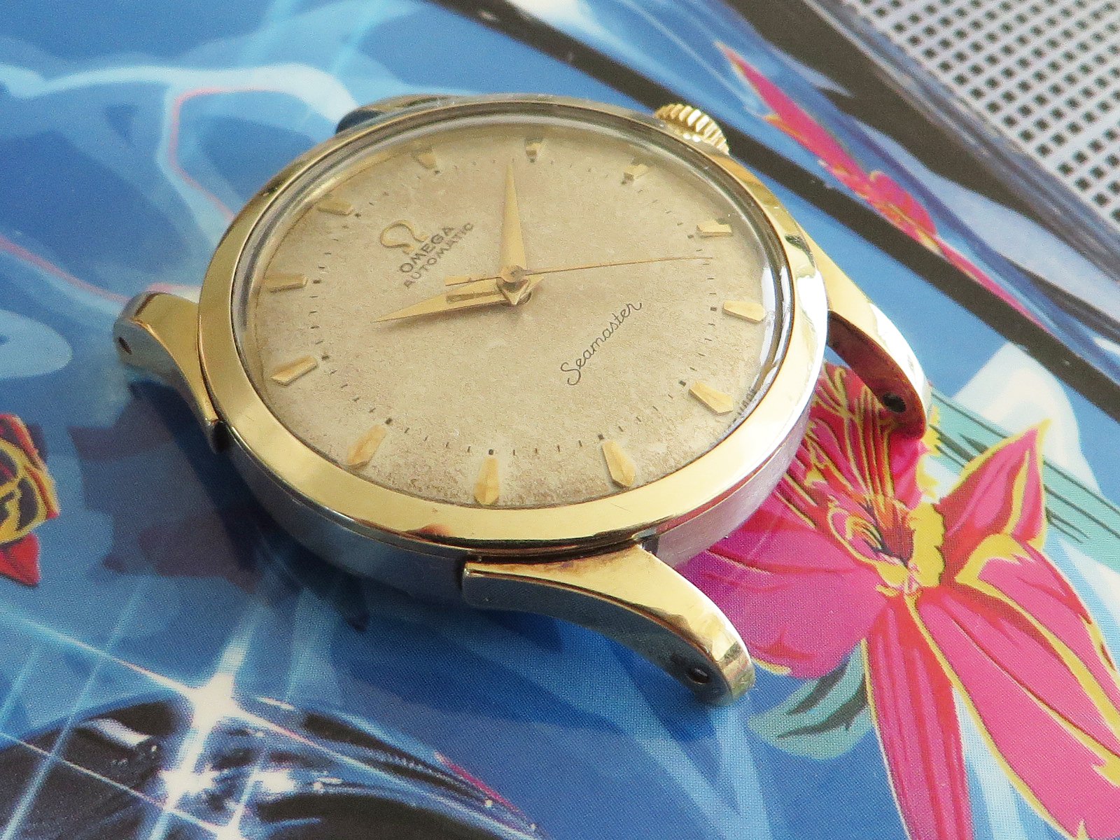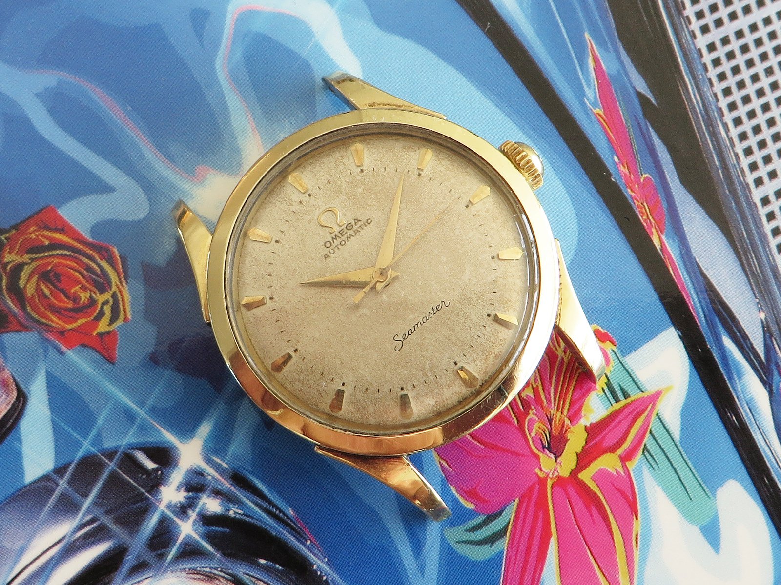 ··Vintage Omega AficionadoBeautifully patinated original dial with applied 14K gold multifaceted trapezoid figures, Omega symbol and original no lume hands.