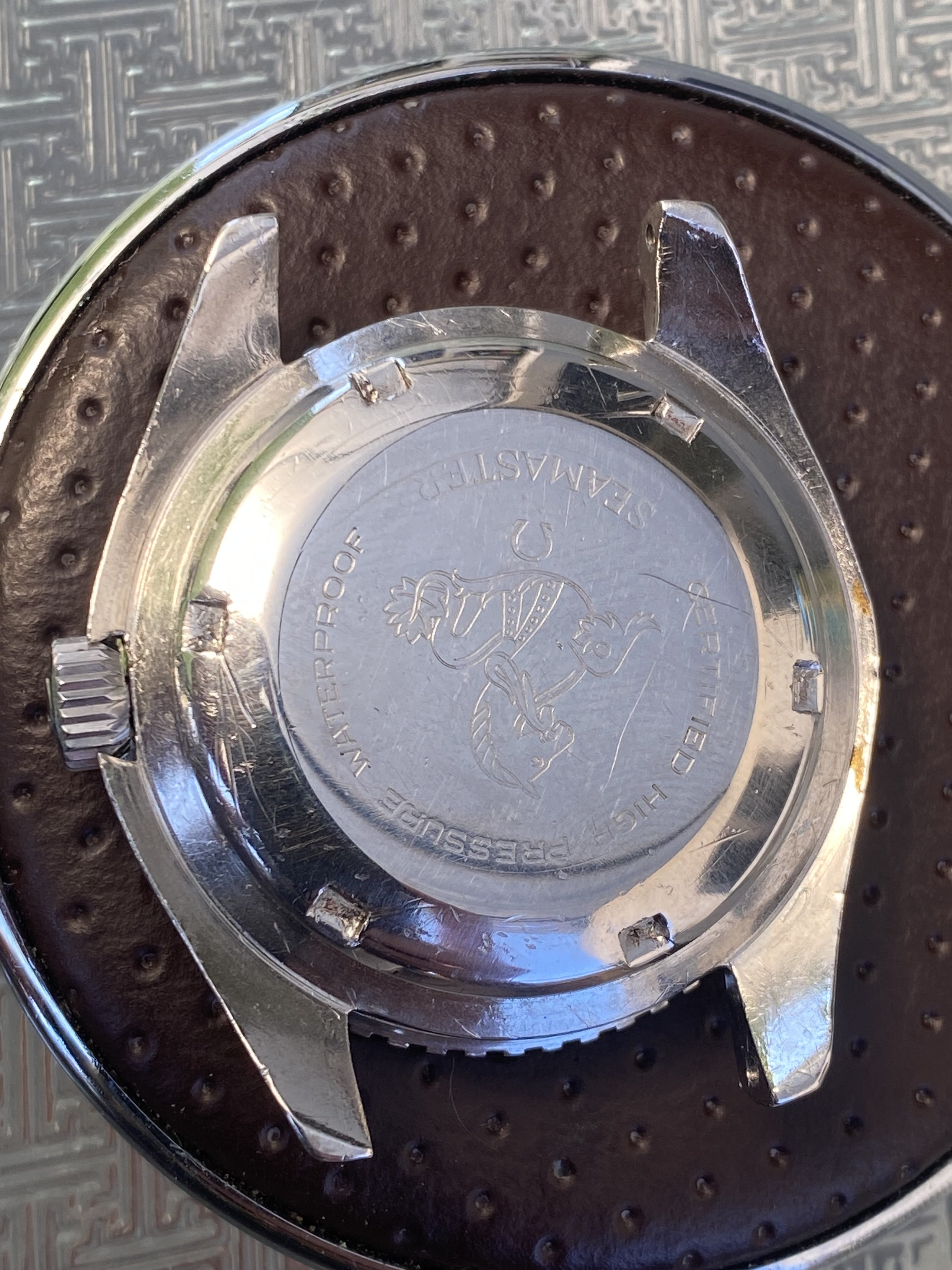 The case shows signs that the watch has been used and enjoyed, but it looks quite attractive nonetheless with only one large scrape in the lower left side. The caseback has the Semonster logo and has a fair share of toolmarks with signs of polishing.