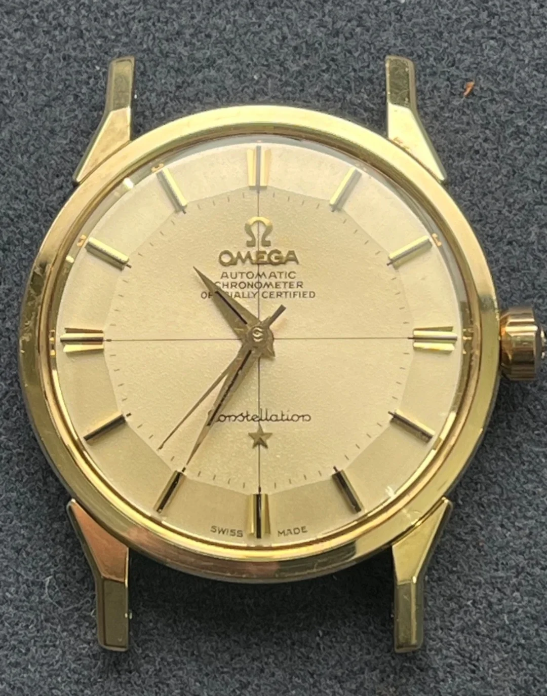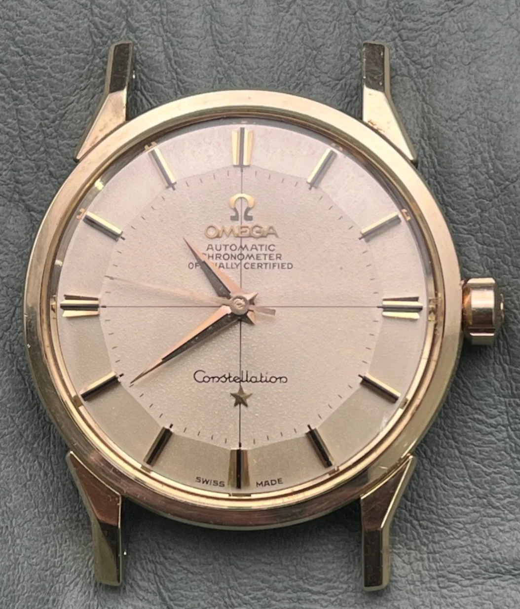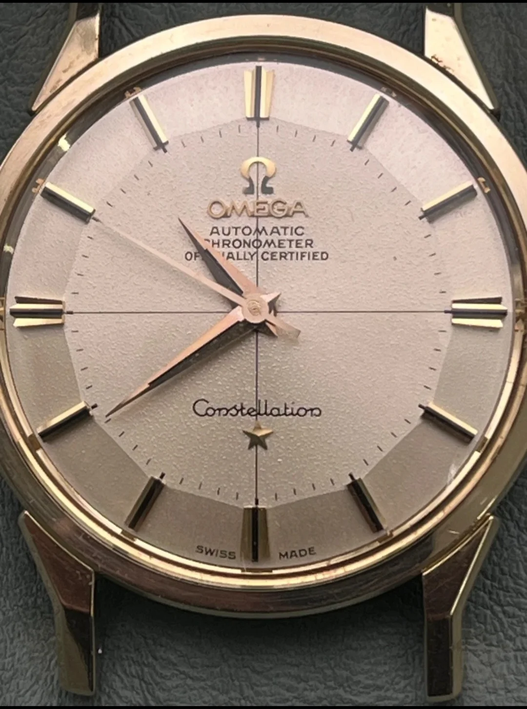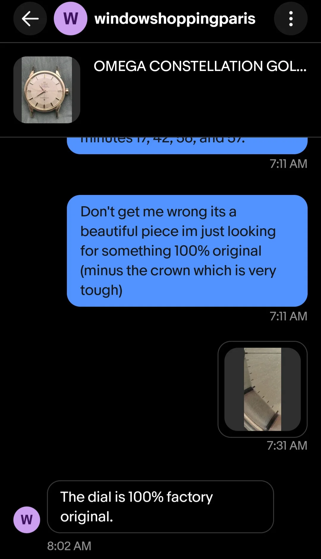 Unless there is something goofy with the picture, the minute markers are all over the place. So either there is some extensive distortion going on with either the photo or crystal, or this is possibly mildly repainted. I'd have to see a few more angles of the dial to be sure.
