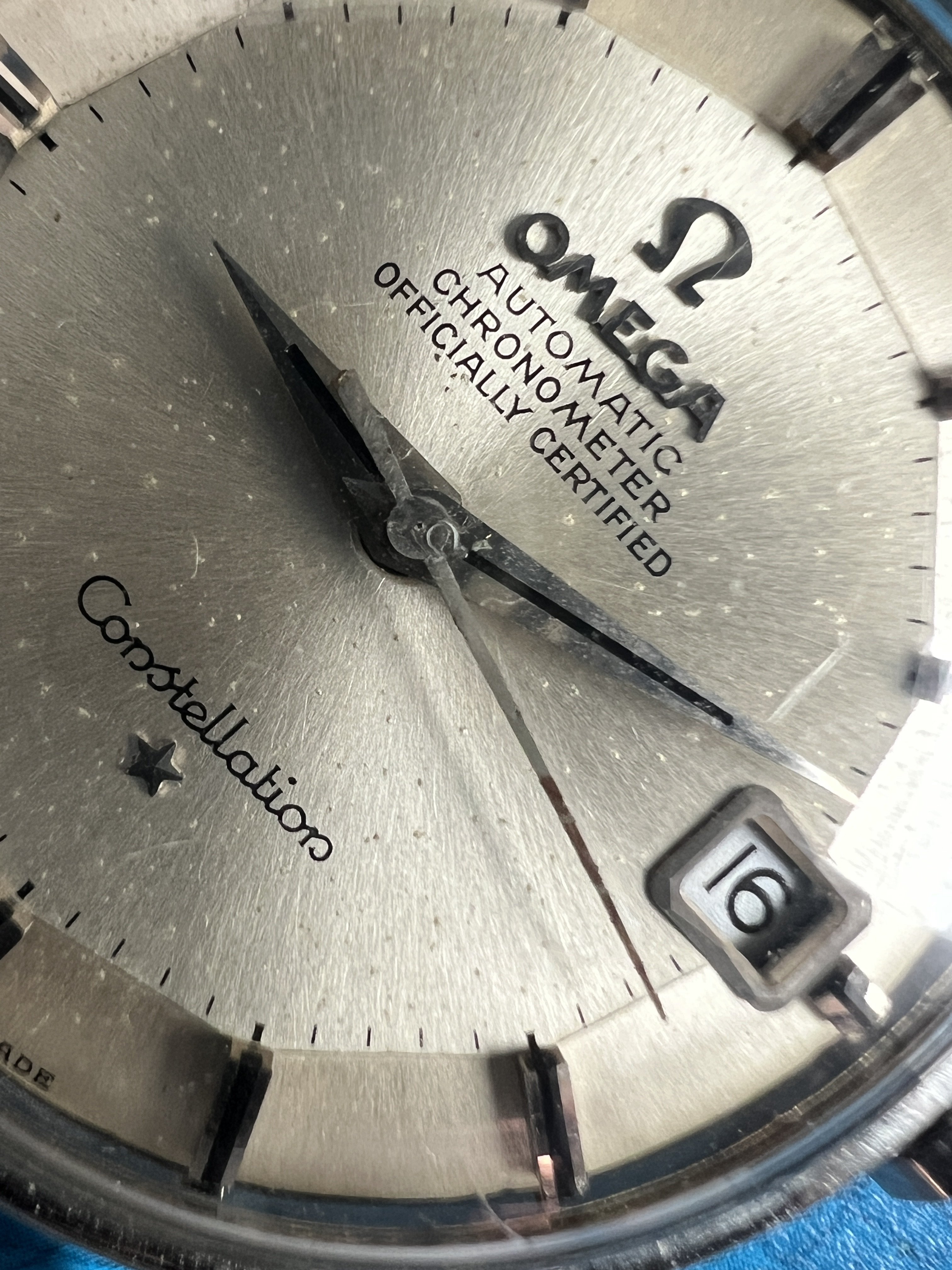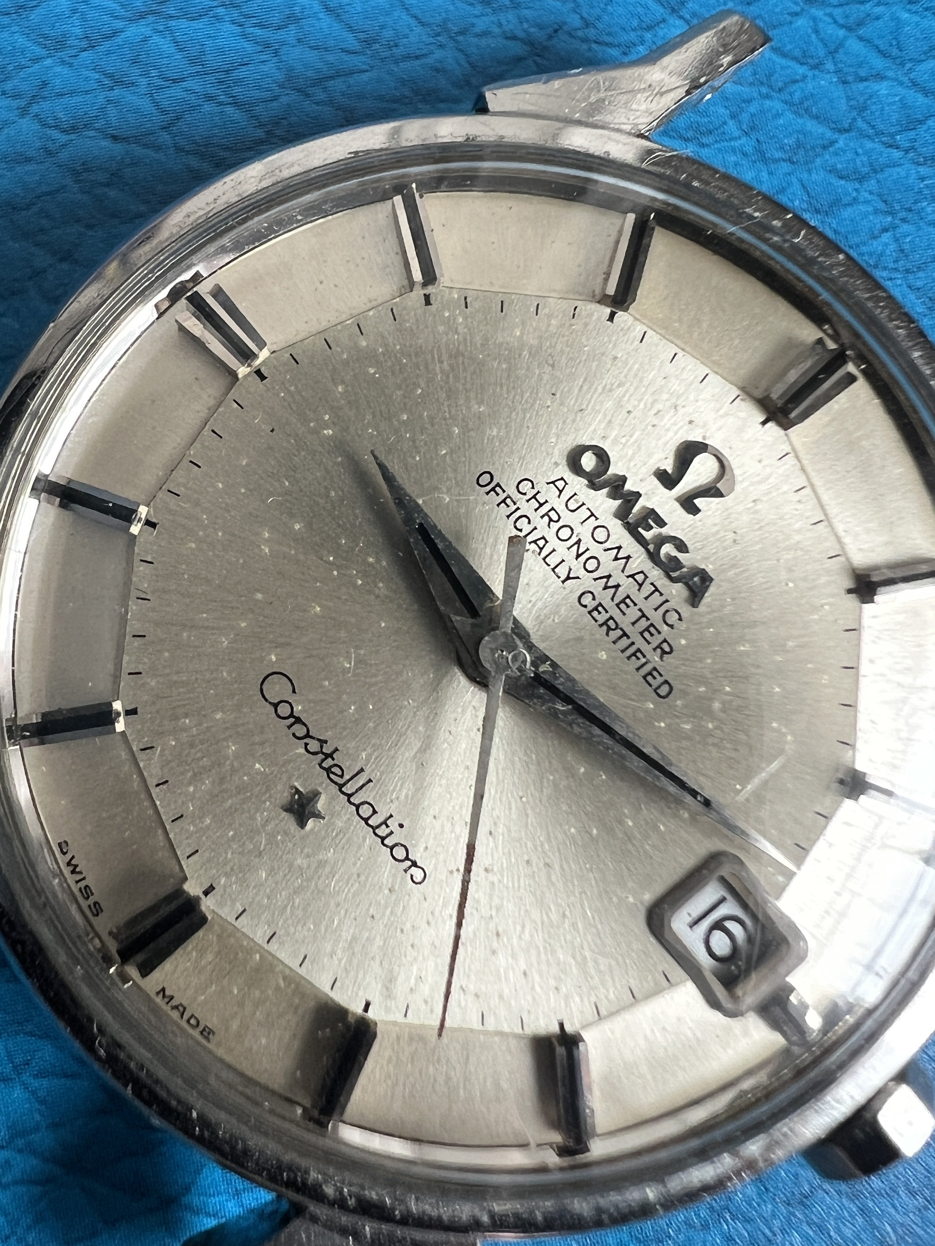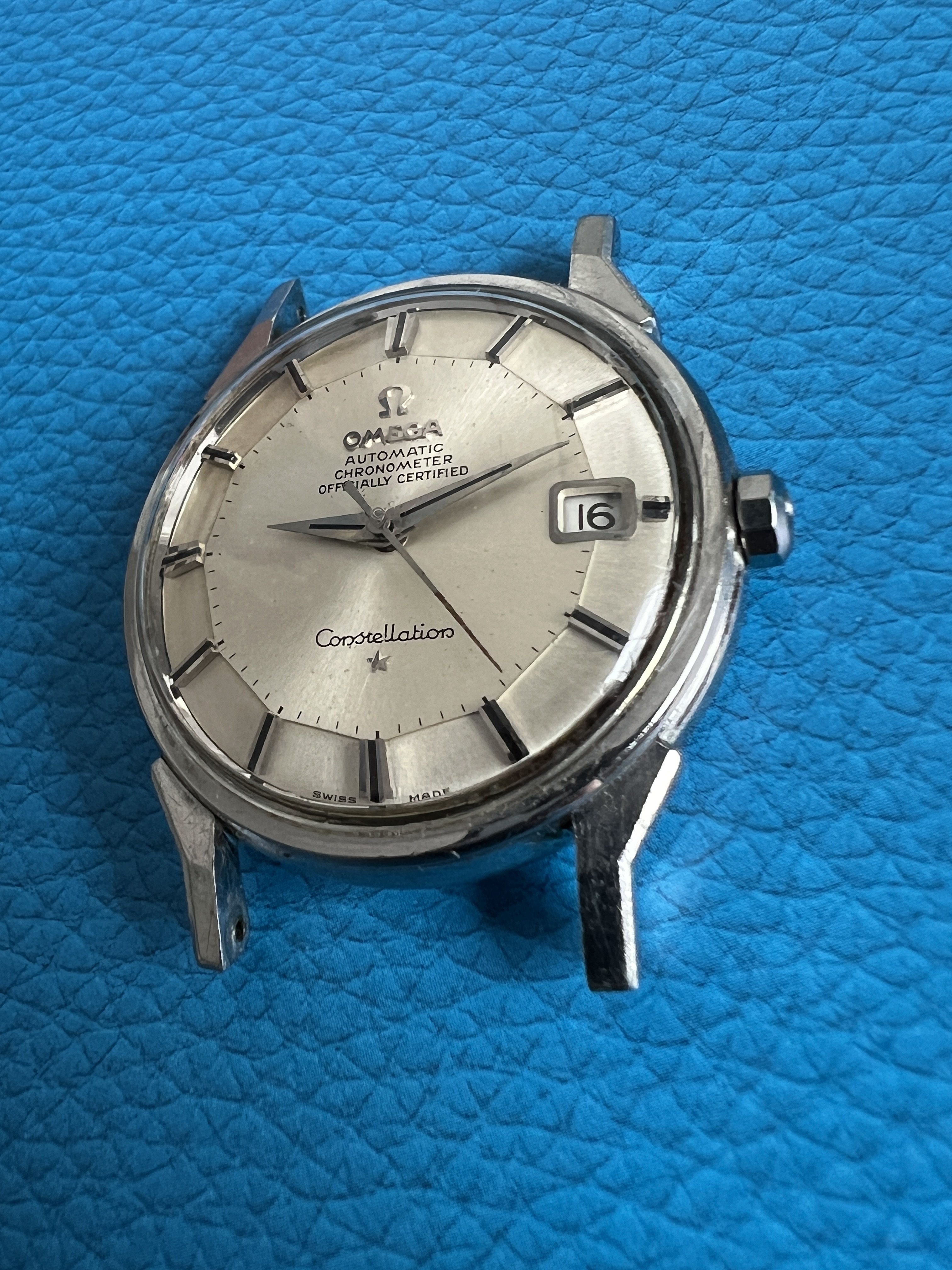 ·Available for purchase is an Omega Constellation 168.005 dog lug case with pie pan dial. I bought this from another OF member just over a year ago. You can view the original listing here: https://omegaforums.net/threads/omega-constellation-168-005.144813/ After purchase, I sourced an Omega decagonal crown to replace the generic crown that was on the watch, and I also replaced the winding stem and a missing case clamp and screw with authentic Omega parts from a donor movement I’ve been using for parts. I’ve worn probably worn the watch half a dozen times since I’ve acquired it, and it’s always kept good time. The watch and I are located in Virginia, US. I’m offering this one for $1250 shipped in the US. Based on recent completed ebay auctions, I think the price is fair so please consider it firm.