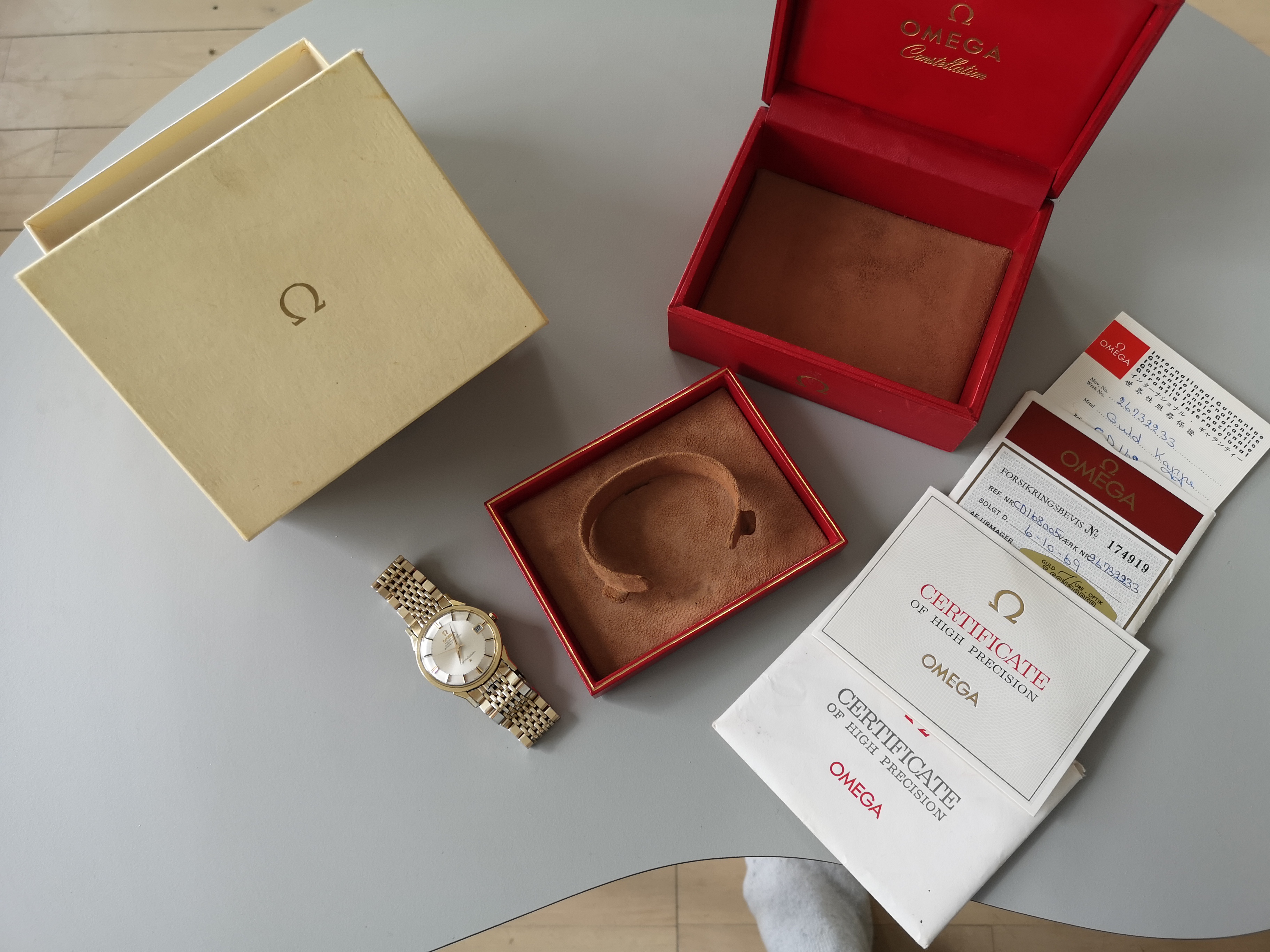 I'd like to think that I am getting more skilled each day to find vintage Omegas. But estimating price is tough. I have been offered this full set gold cap constellation. All looks to be original, even the crown, and doesn't seem to be refinished or polished in any way.