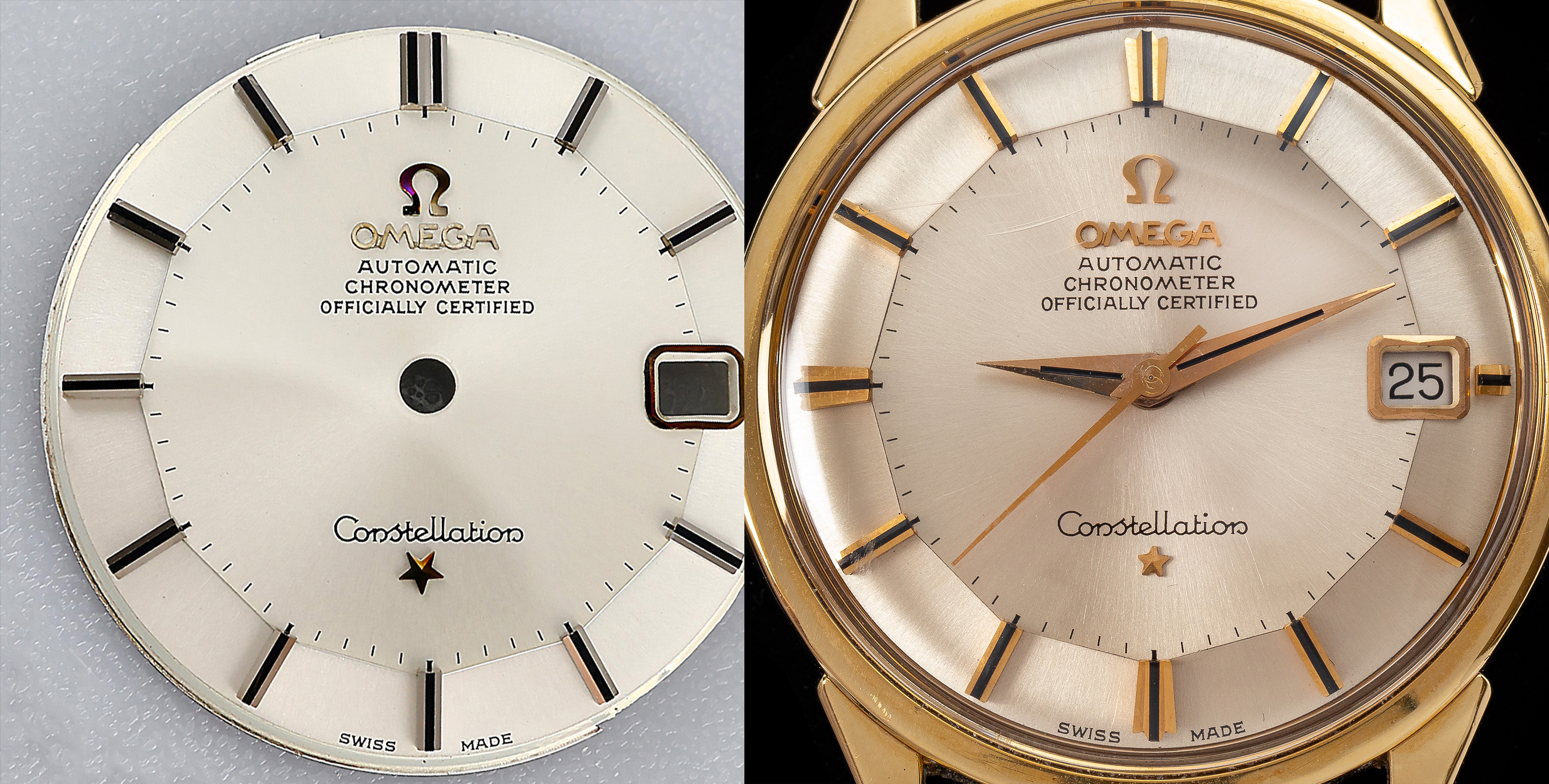 This dial raises some questions. The Omega logo and the star looks blued. Why?