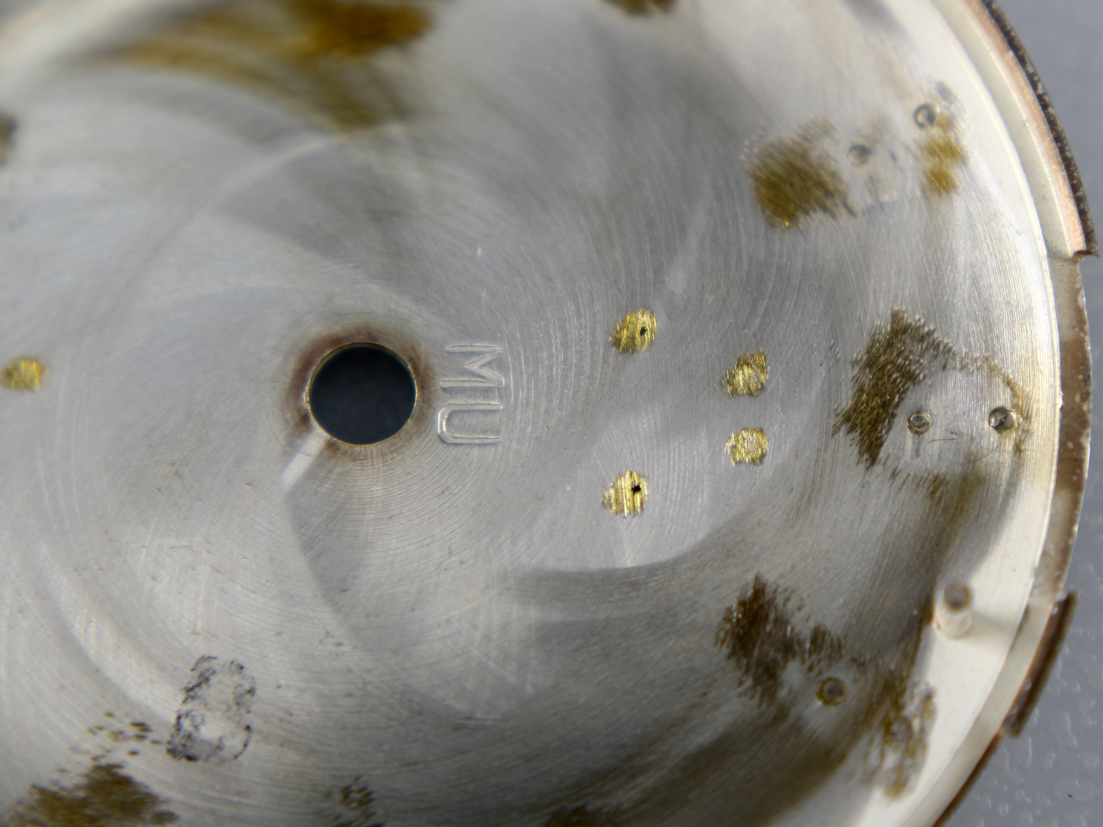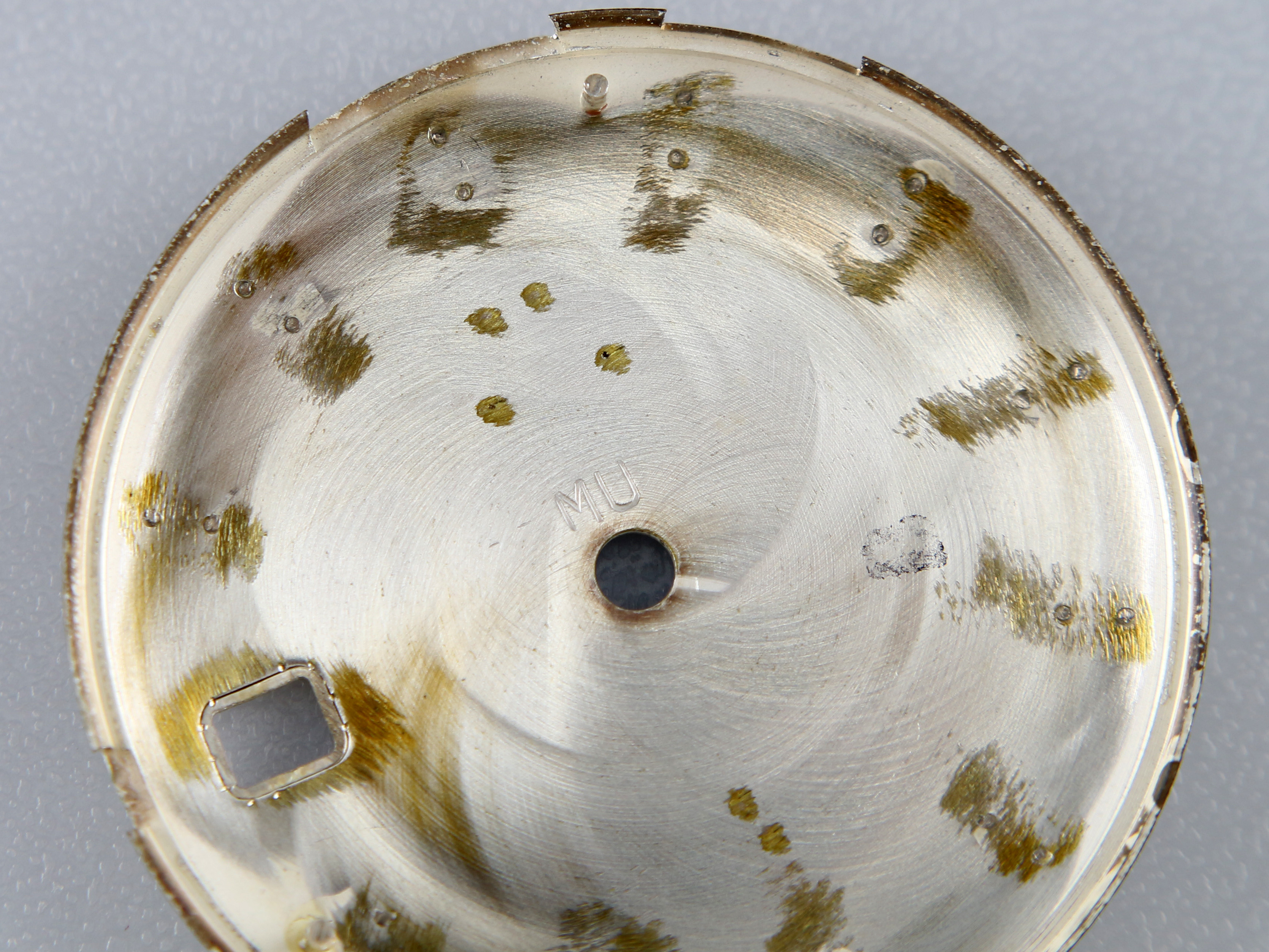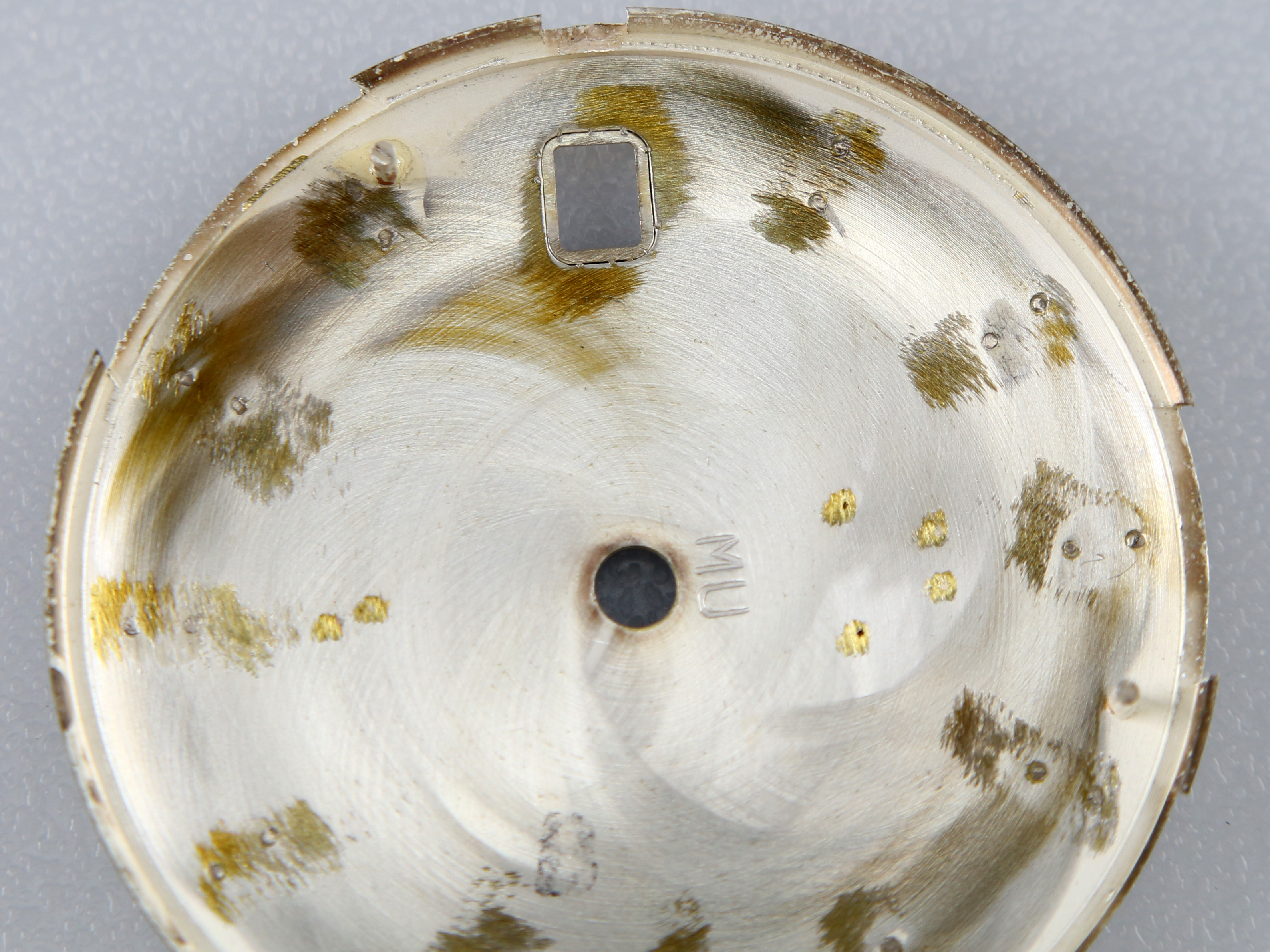 The blueing (particularly on the AML) could be an effect from heat when brazing. This is either a factory cockup or an excellent quality redial where the dial furniture was removed then reapplied, but wth the star there was a d'oh moment. Note on the rear the feet of the applied logo, text and star are ground brighter than the indices suggesting recent work possibly. Either way it raises questions and I wouldn't be rushing to buy it. A brave and competent watchmaker may be able to remove and reattach the star correctly.