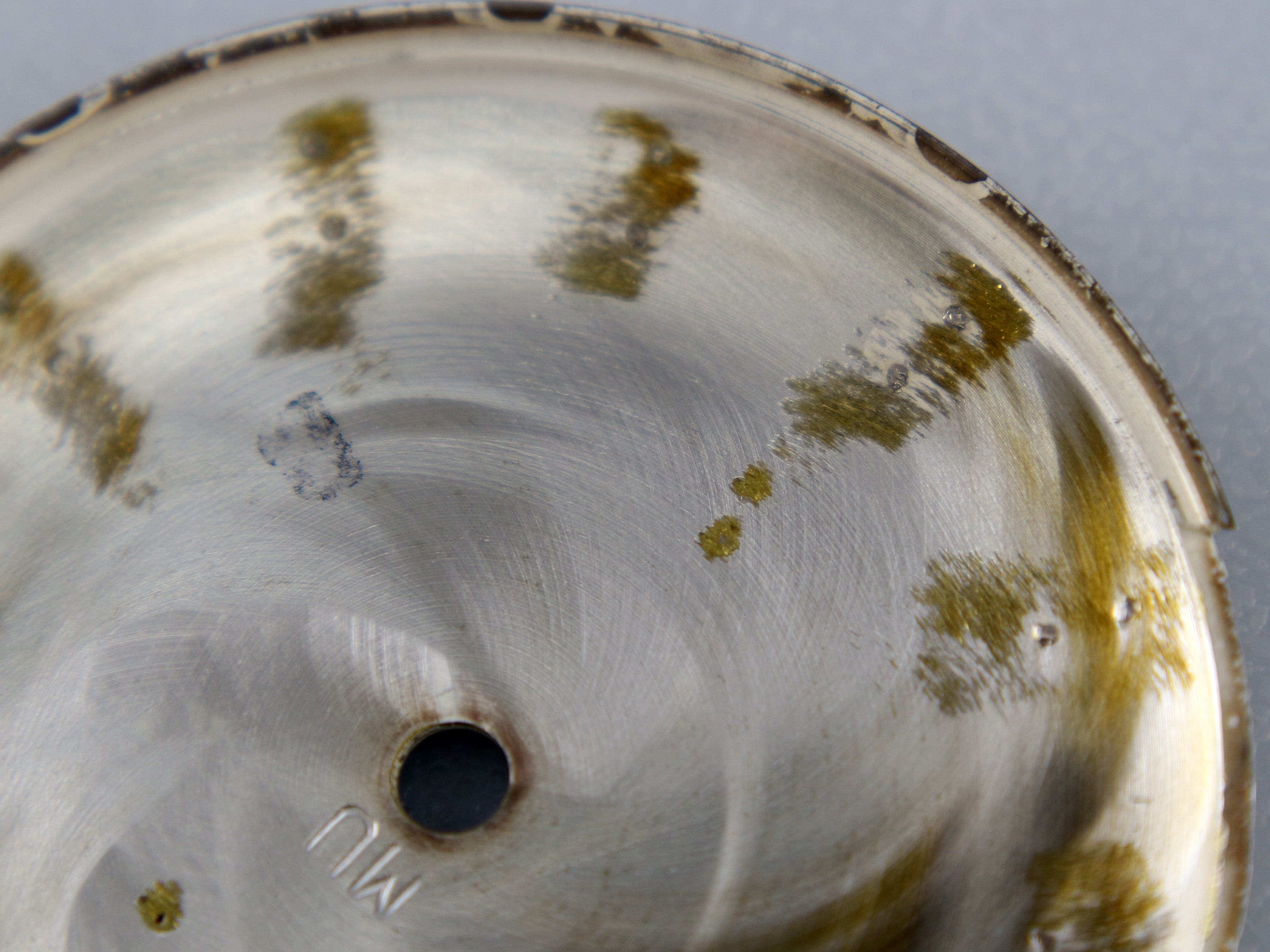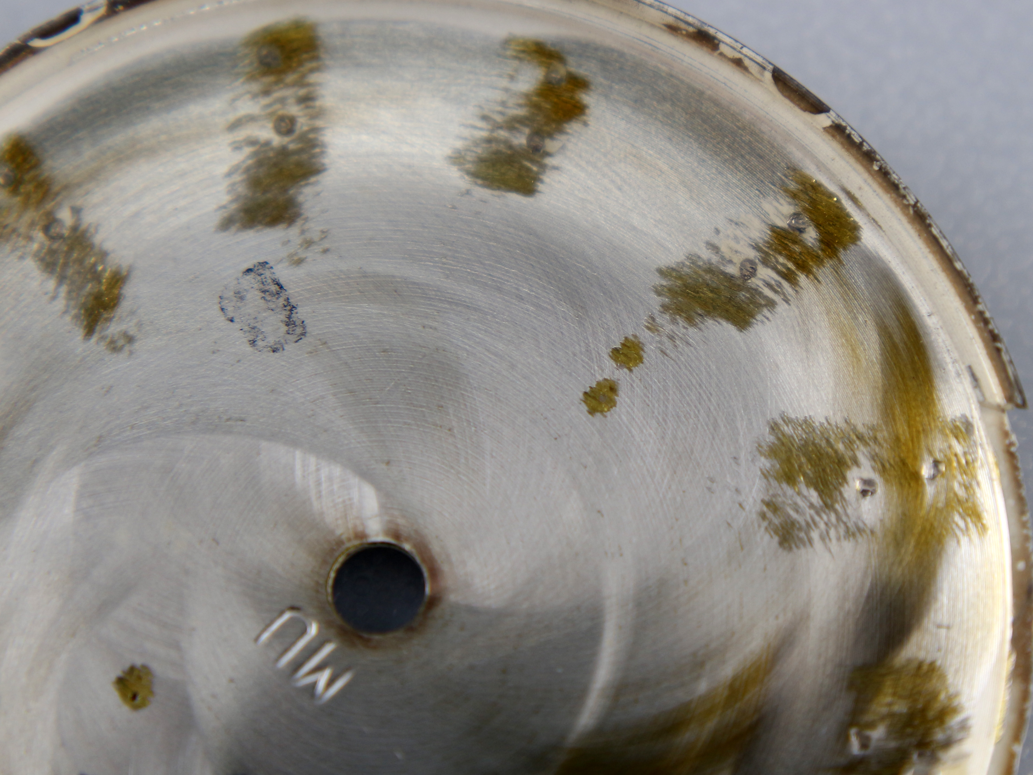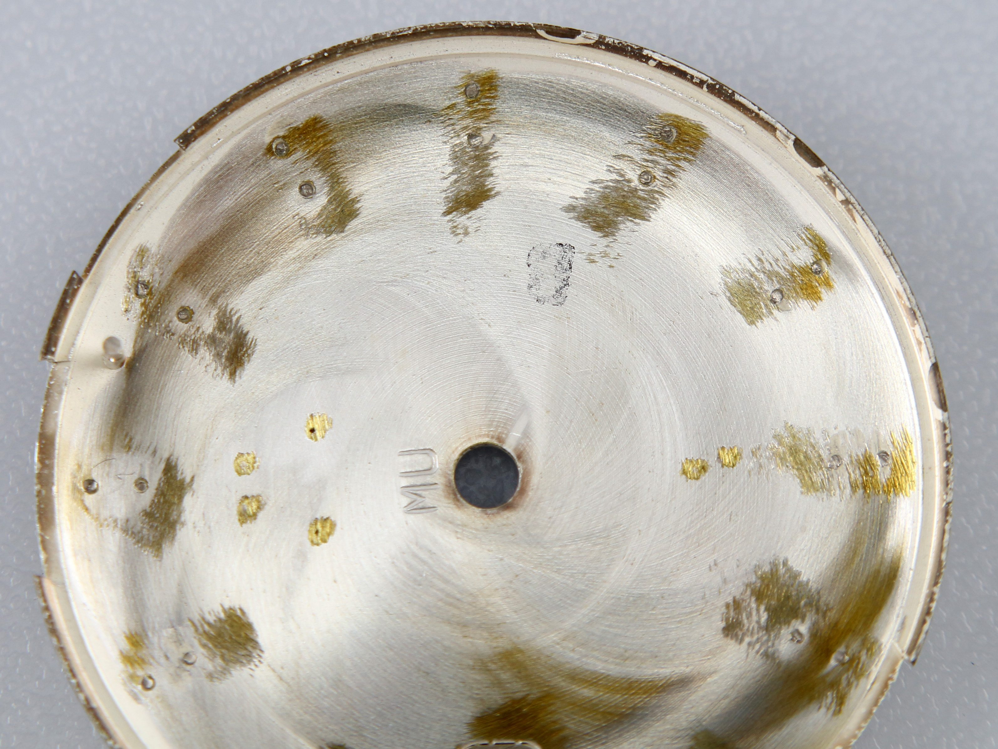 The blueing (particularly on the AML) could be an effect from heat when brazing. This is either a factory cockup or an excellent quality redial where the dial furniture was removed then reapplied, but wth the star there was a d'oh moment. Note on the rear the feet of the applied logo, text and star are ground brighter than the indices suggesting recent work possibly. Either way it raises questions and I wouldn't be rushing to buy it. A brave and competent watchmaker may be able to remove and reattach the star correctly.