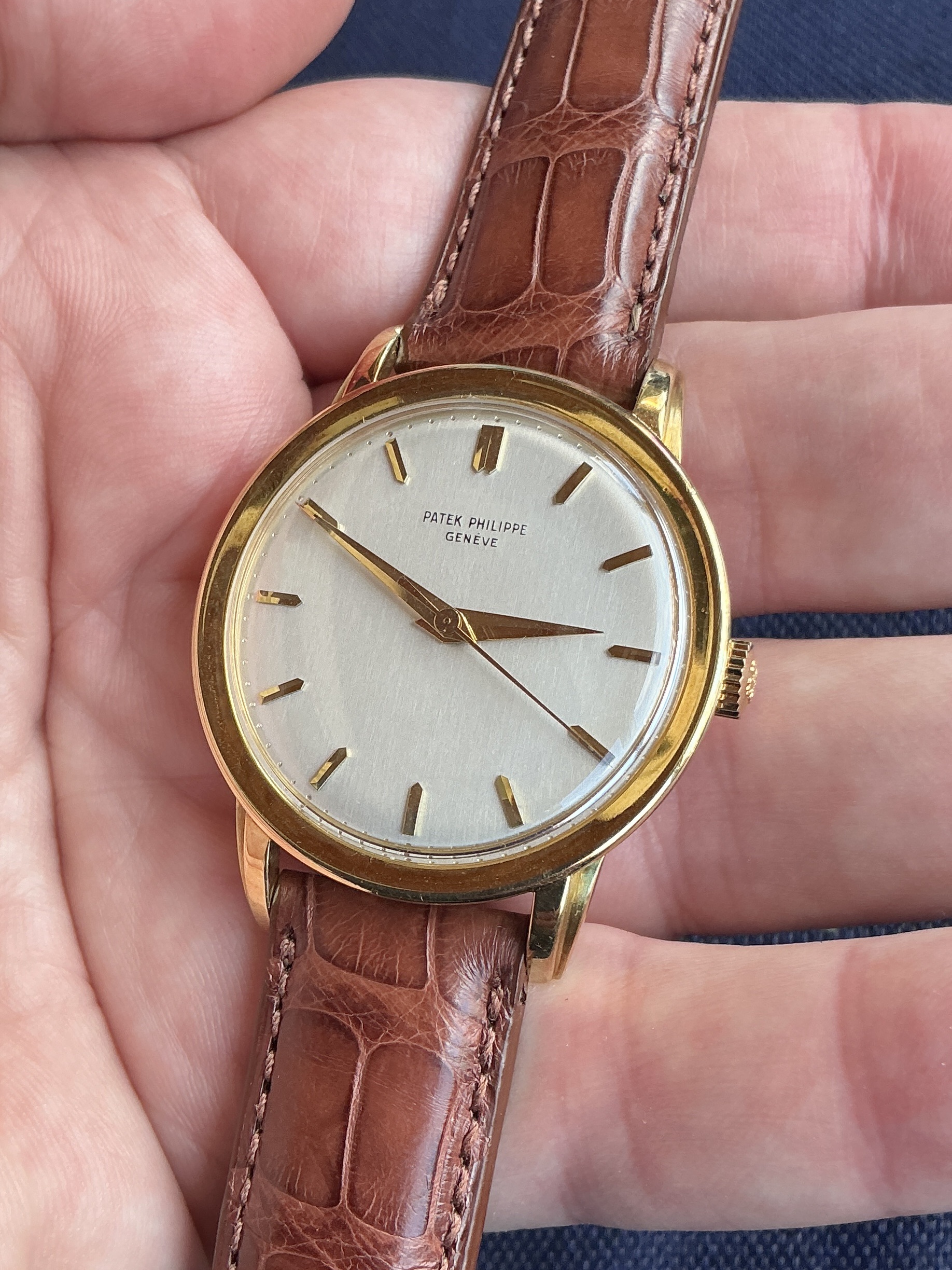 ·Just helped my Dad (82) find and buy a 1950s Patek Calatrava (Ref 2481) to celebrate a special health milestone, and would love to find a period correct pin buckle like the one below at a “reasonable” price. Need 16mm, yellow gold. Ideally Patek but would also consider a plated Wenger / AW buckle. I’m located in the USA.