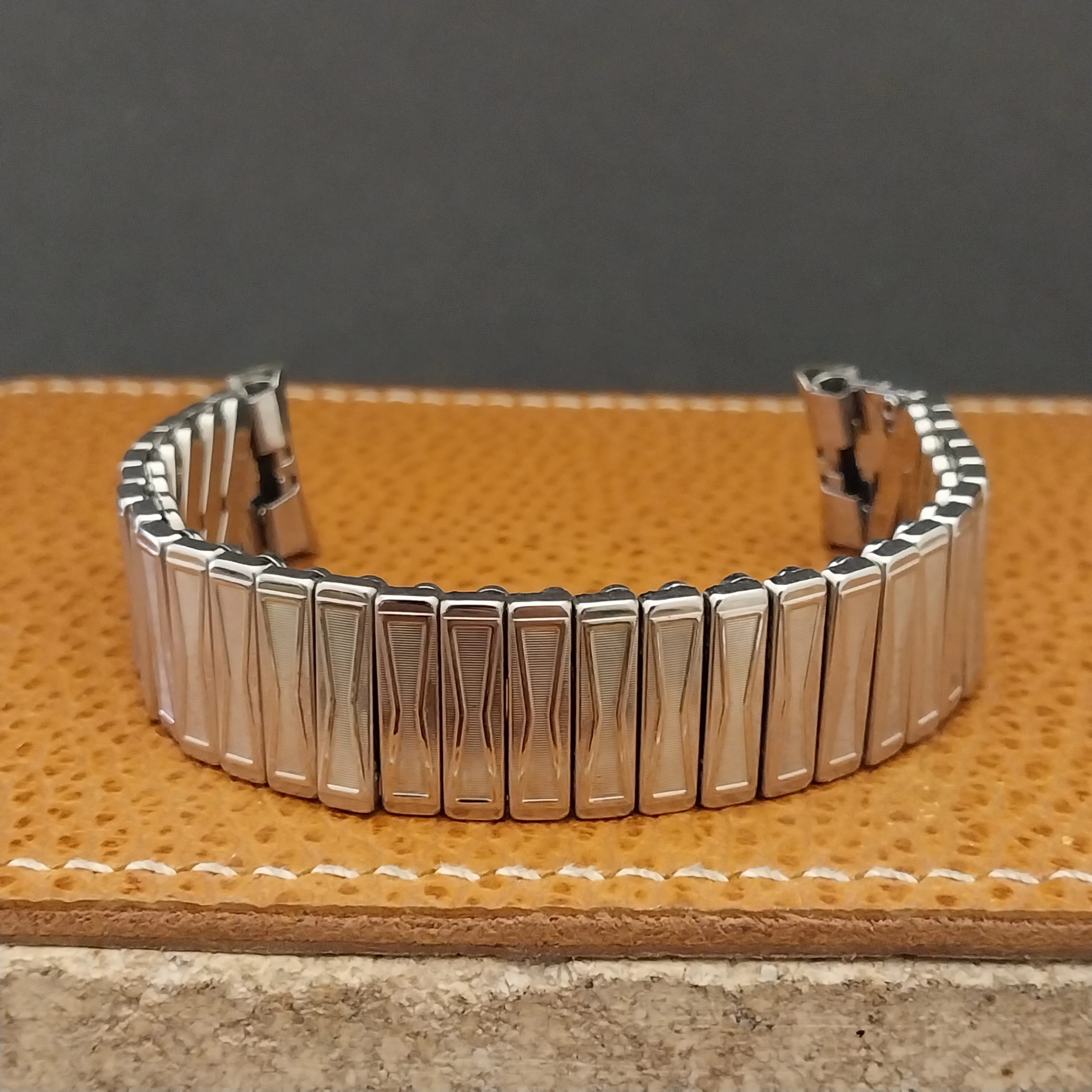 ·NOS unused 1960s Baldwin stainless steel scissor-expansion watch bracelet.