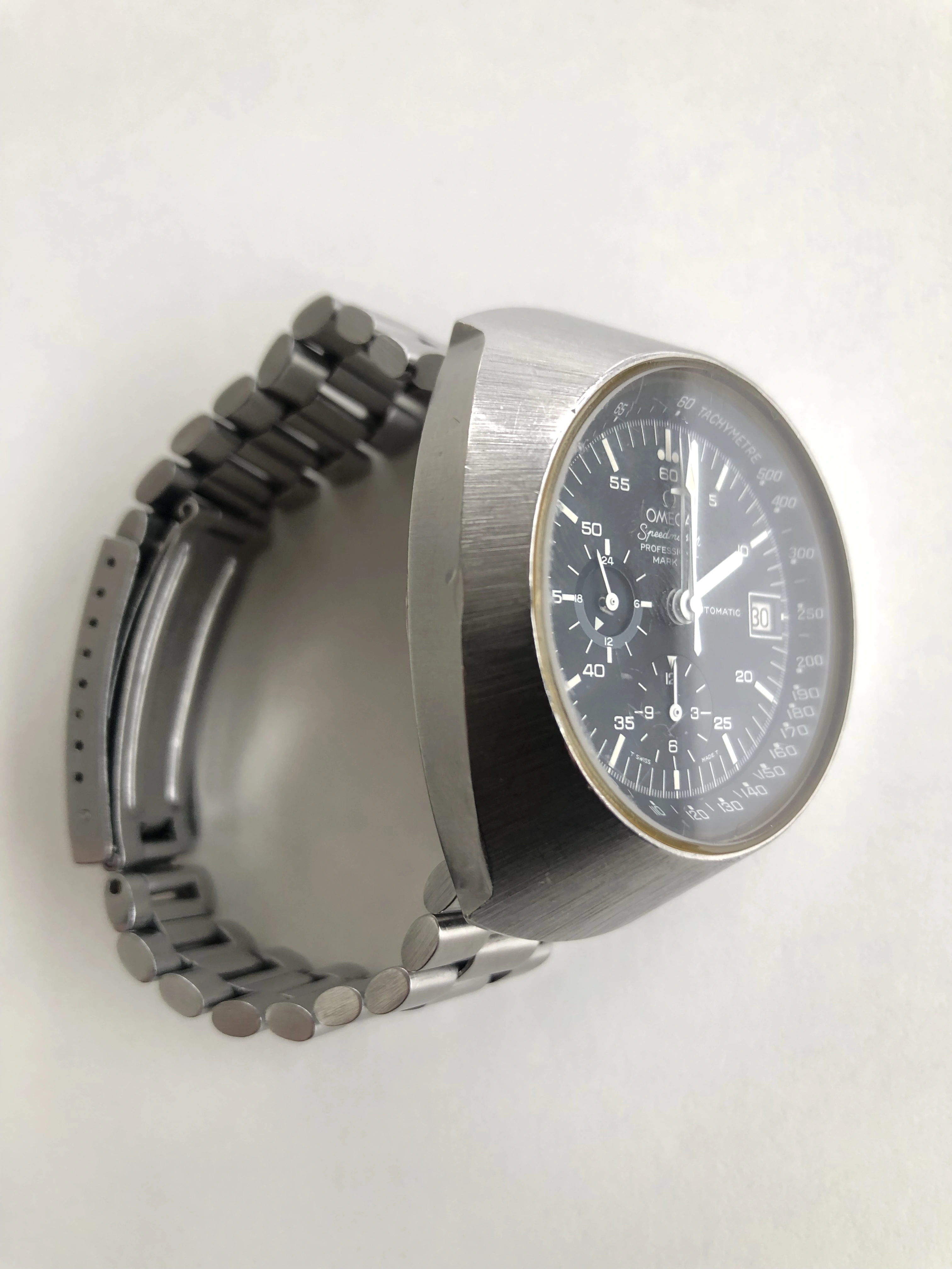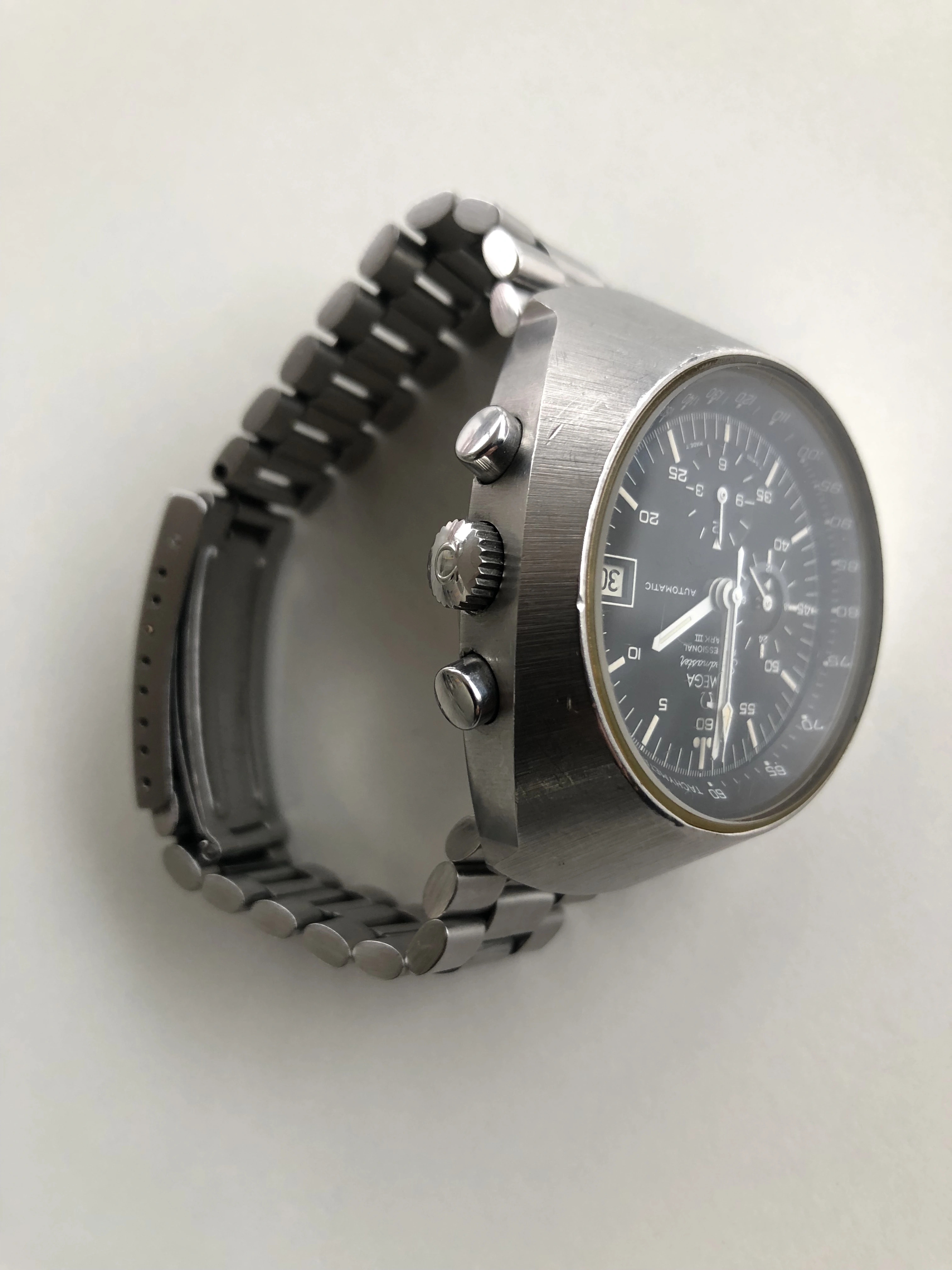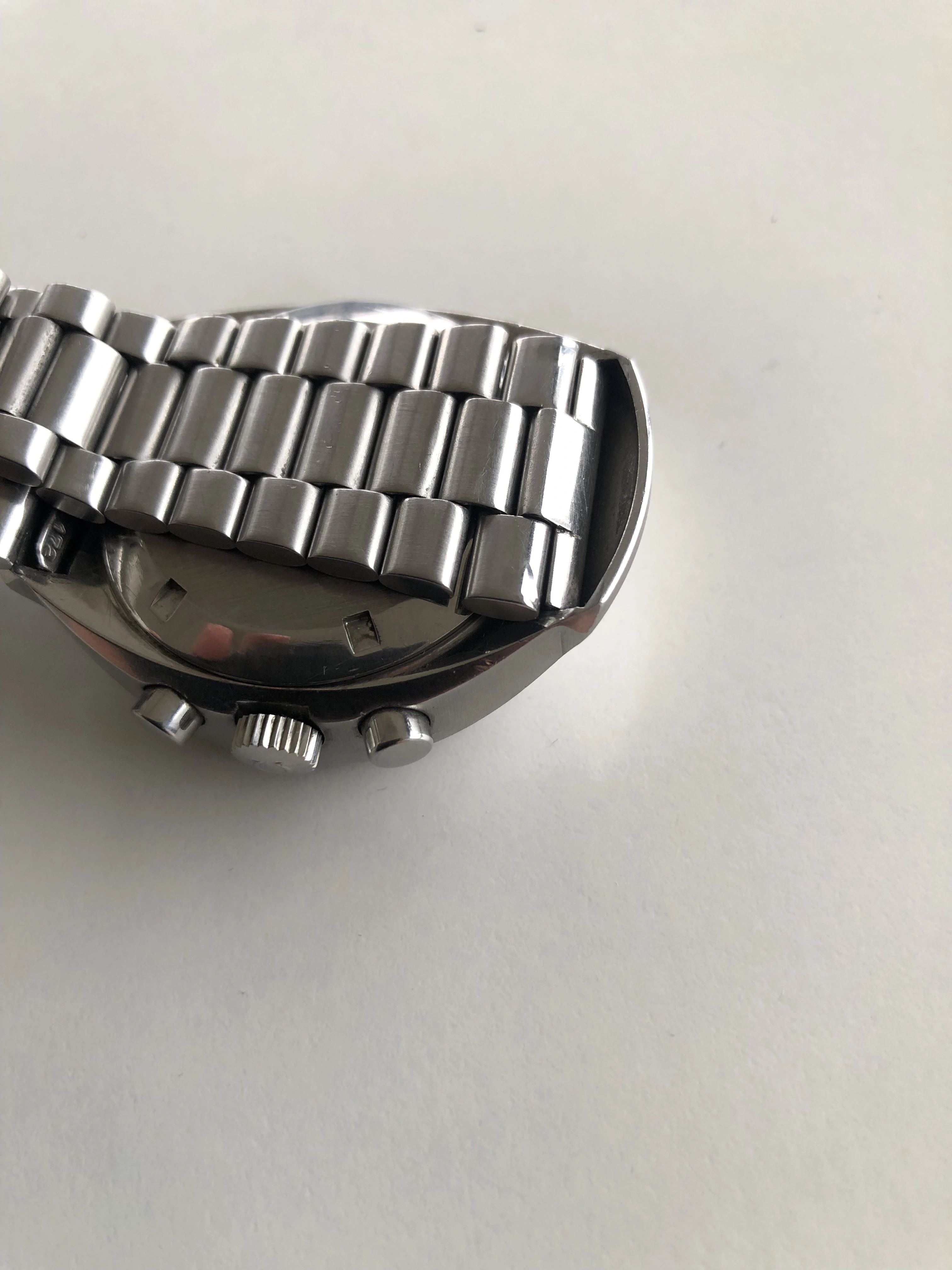 my last pic up at a local auction house was this 176.002 with black dial. I was attracted by the case ( shape and patina ) and gave it a try. Now at my hands I am pleased with its overall condition: I will wear it and orobably will add more buffs anndings to it. My thought now is: can I apply the assessmend guidelines we know from speed101 to this reference? I will try but hope others more familiar to this reference will support this attempt: