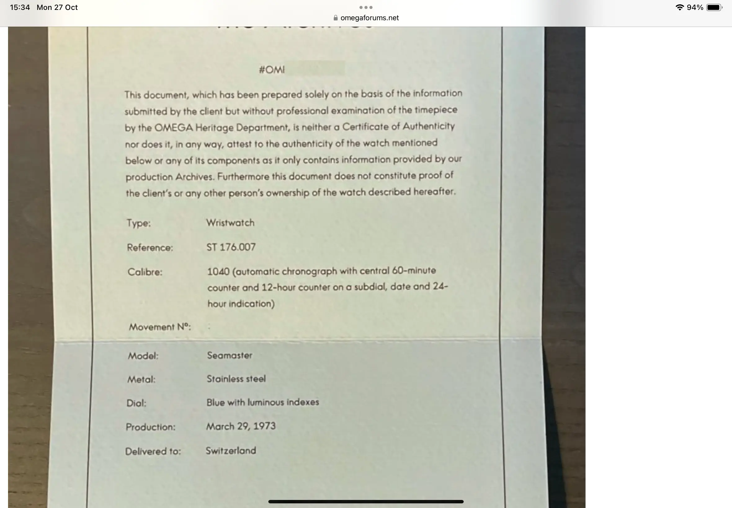 ·Hi, the watch was serviced by Omega in 2019/20. I expect that Omega refinished the case and it looks excellent. Hands, pushers, crown, crystal were replaced and originals are in a parts bag. The dial was not replaced at this service. The question is whether the dial could have been previously replaced or are there examples of a non T-dial being original for a 176.007.