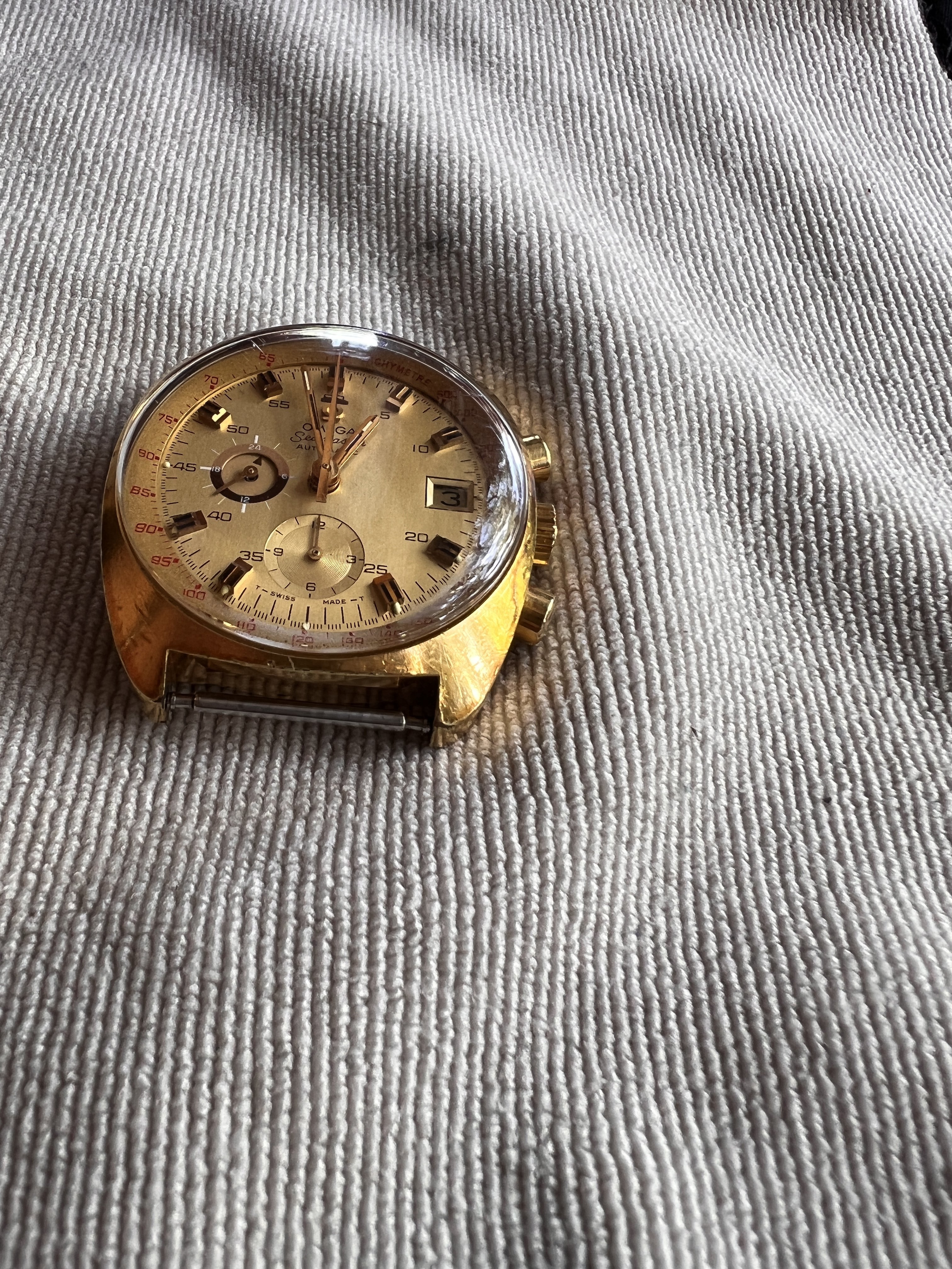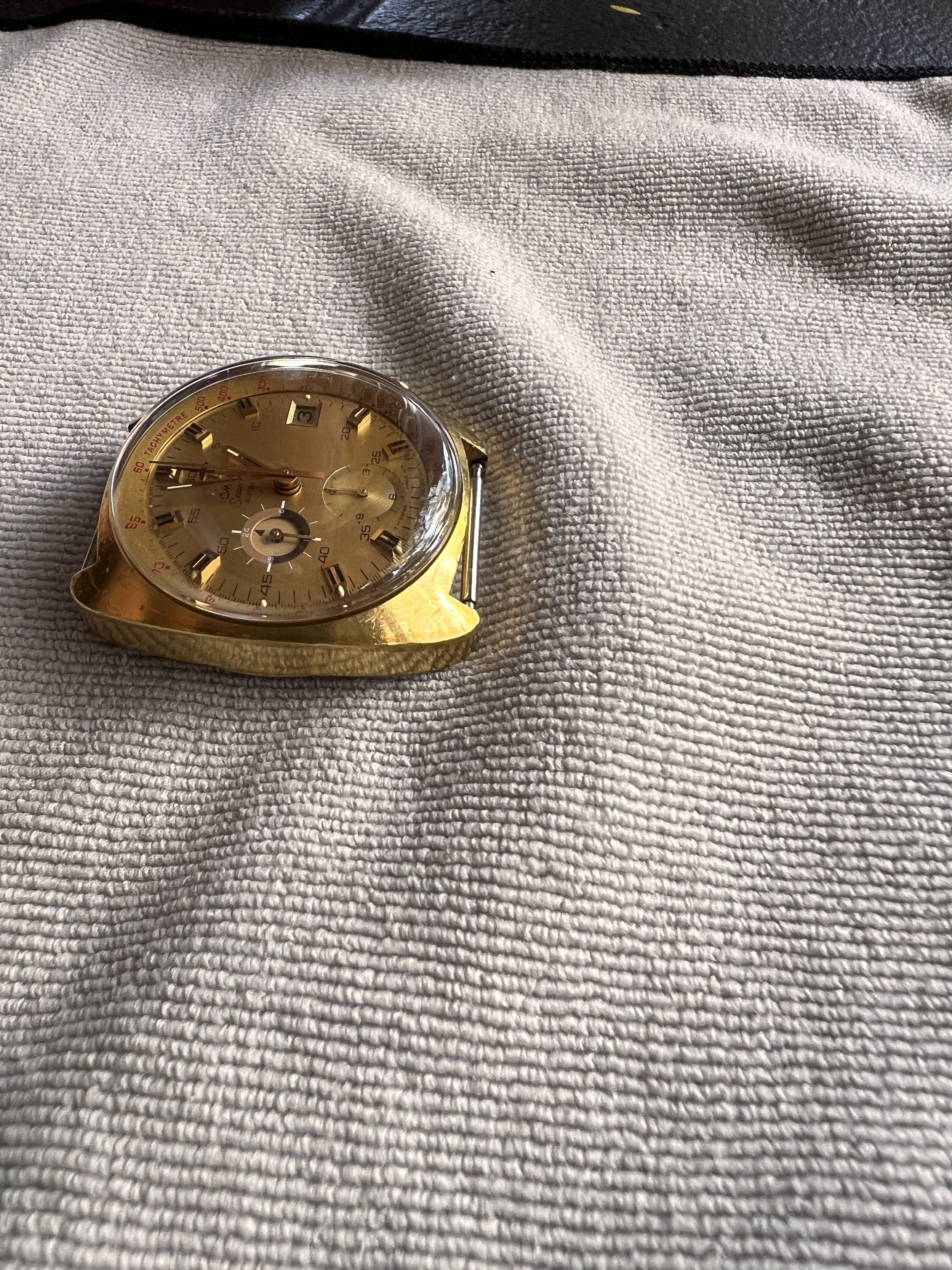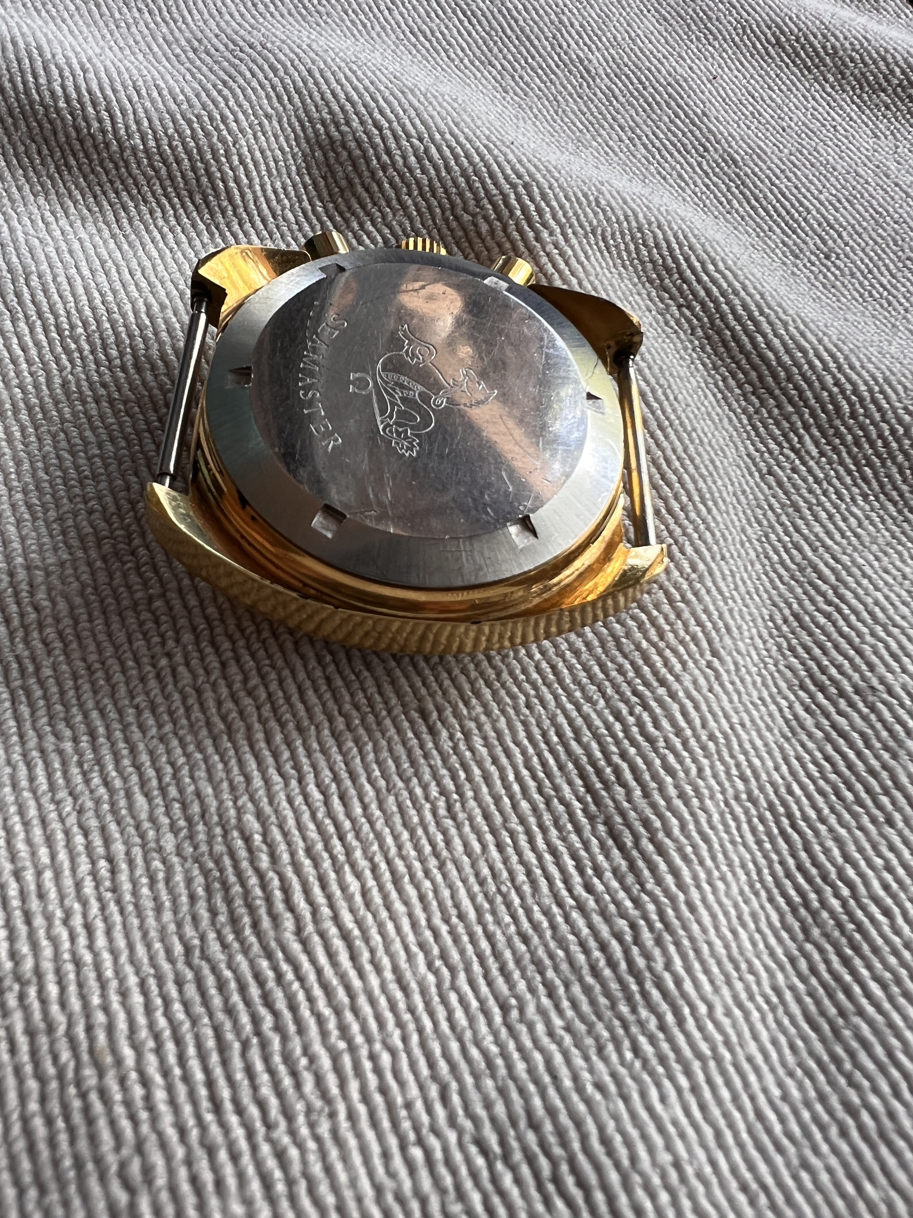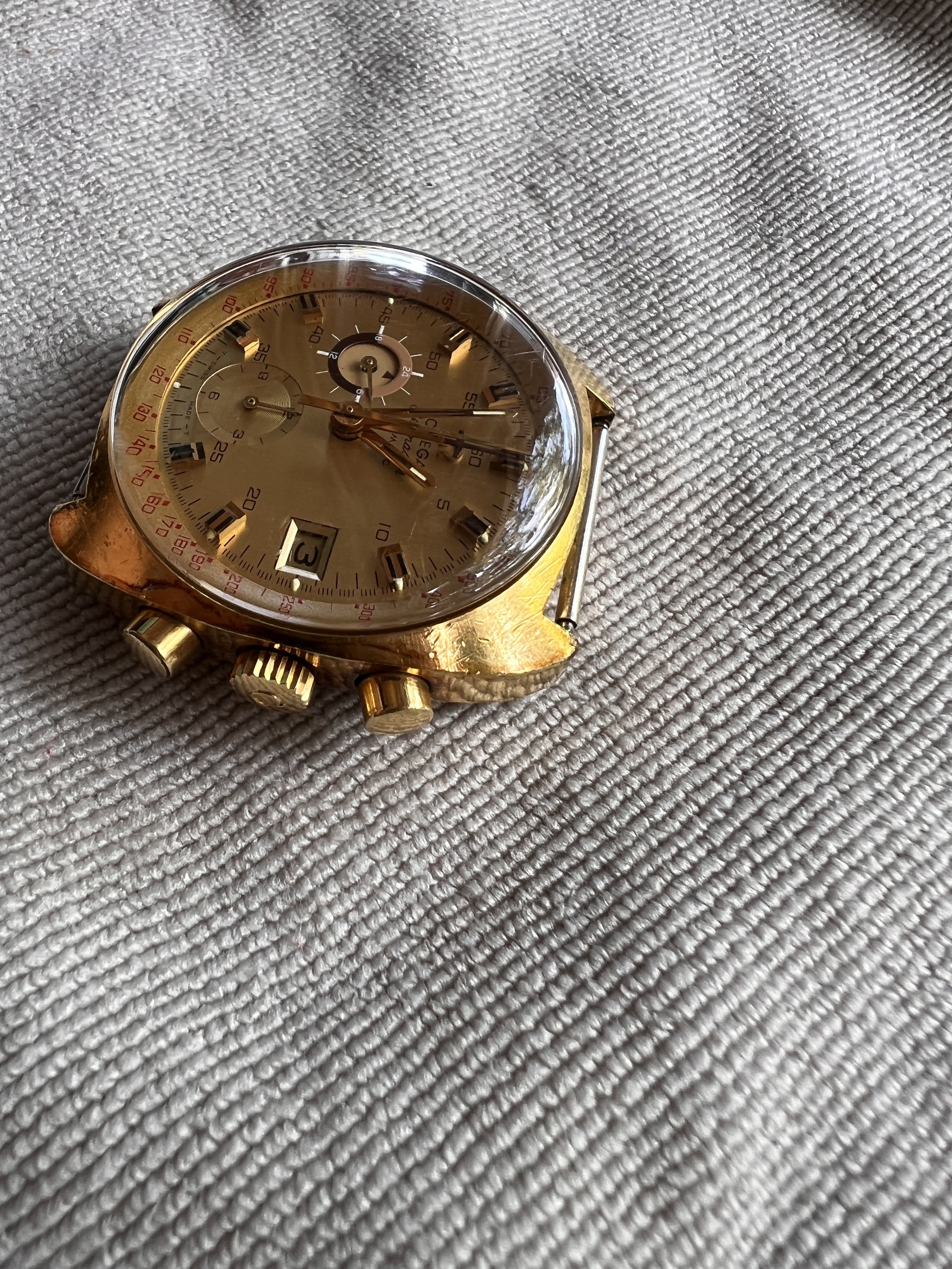 Up here is this 176.007 BR, early 1970’s, OSA chronograph. This one with the gold colored dial and furniture, with red accents. This family of watches reviewed extensively by me here.