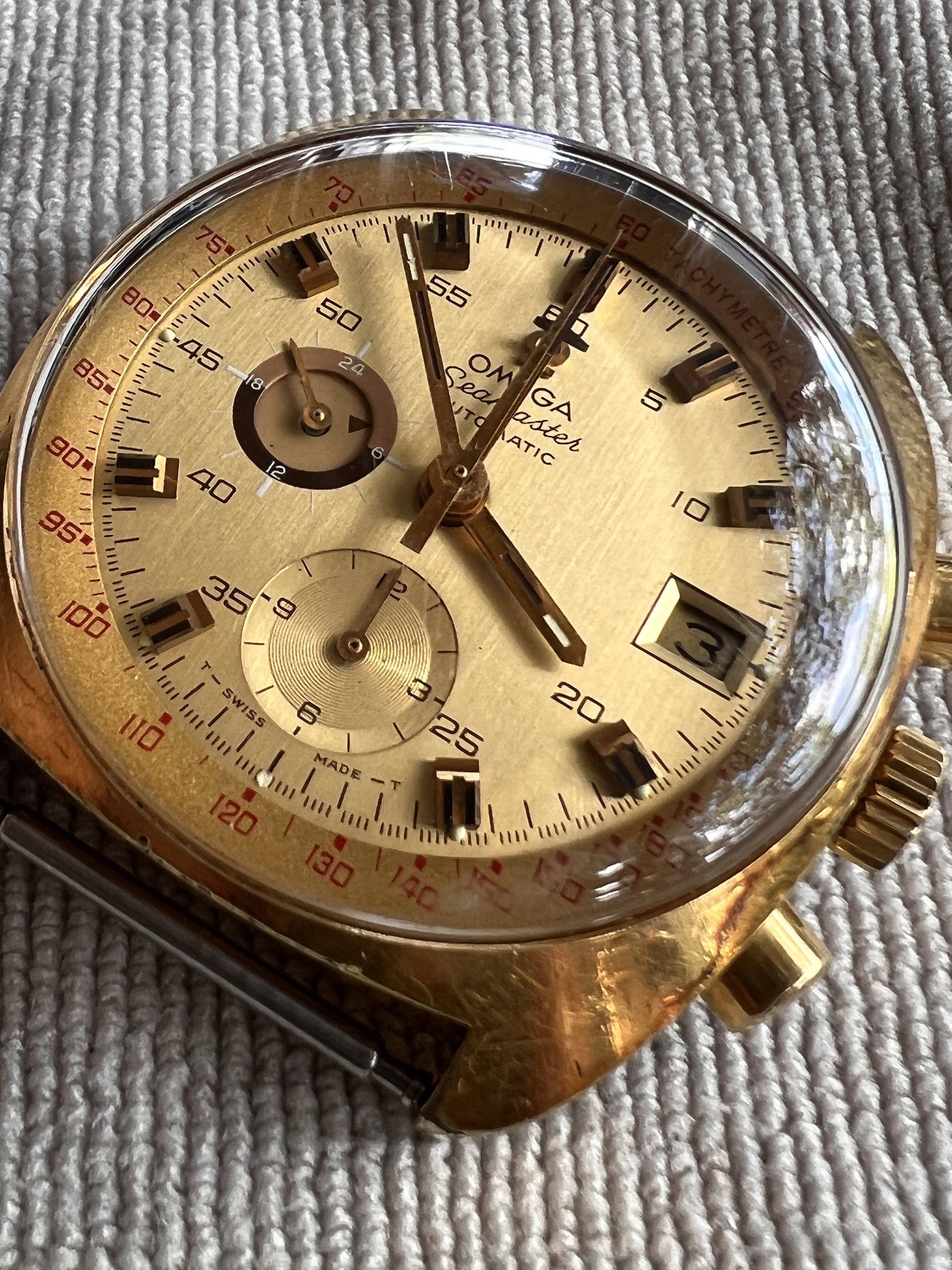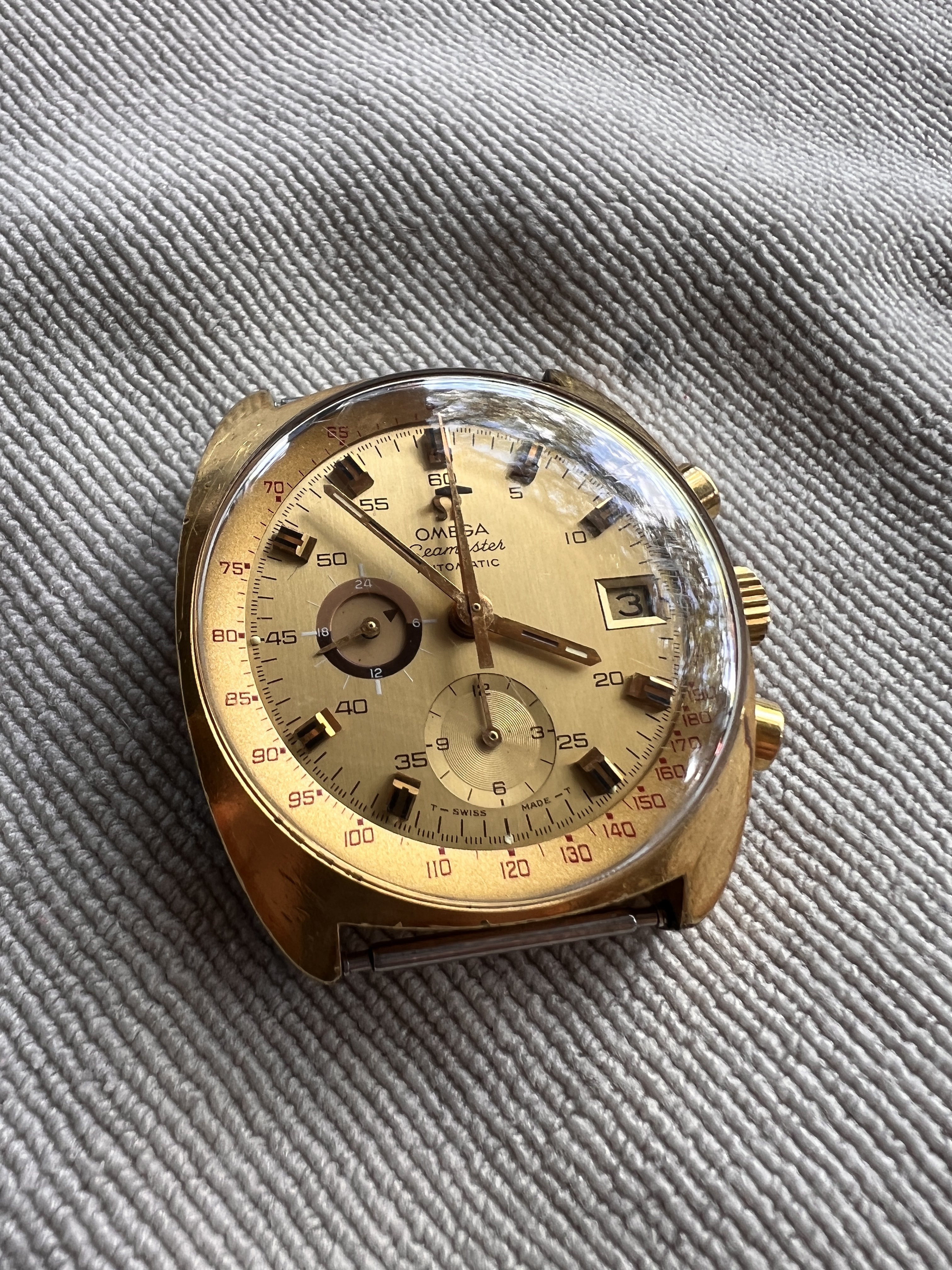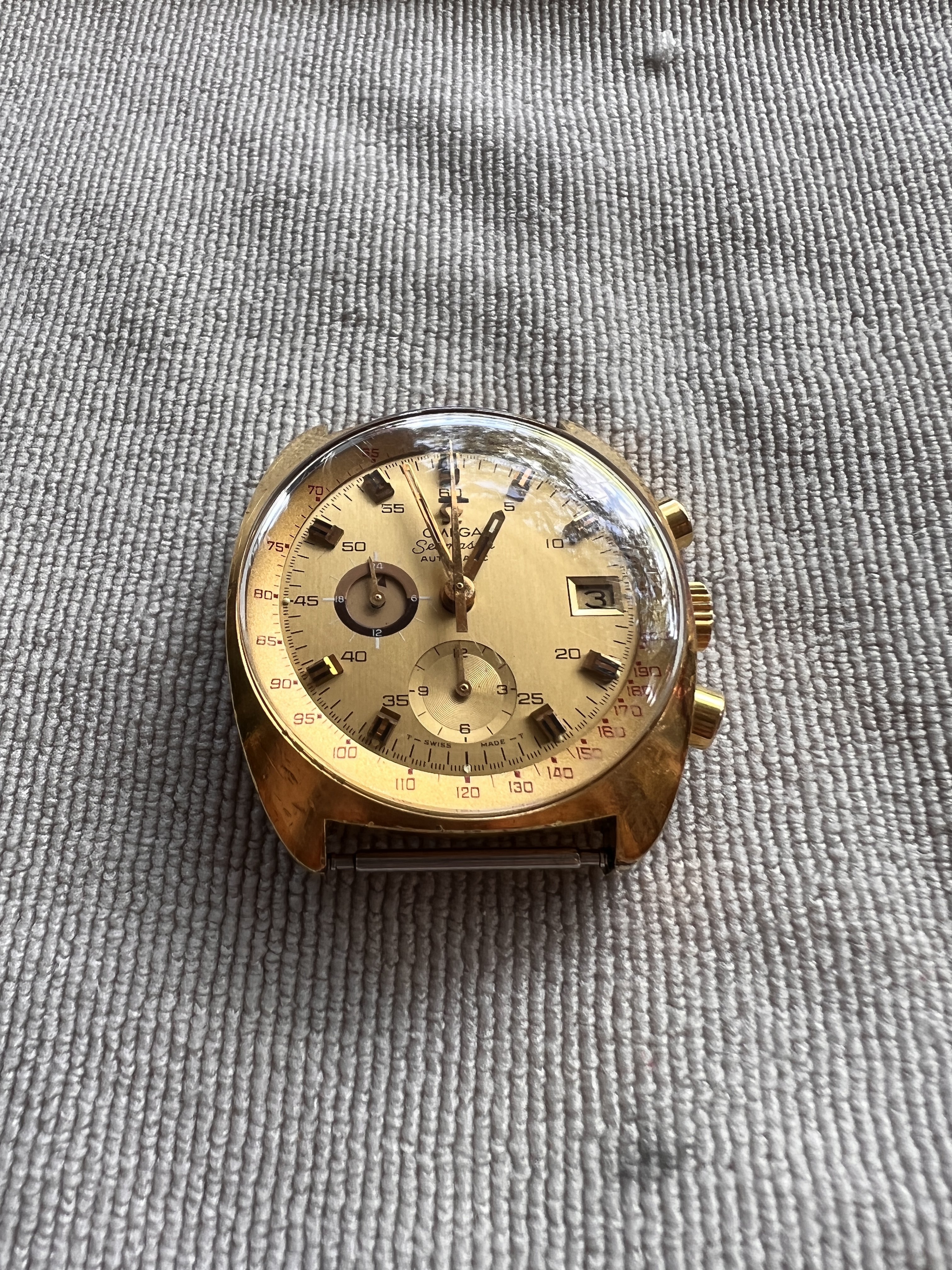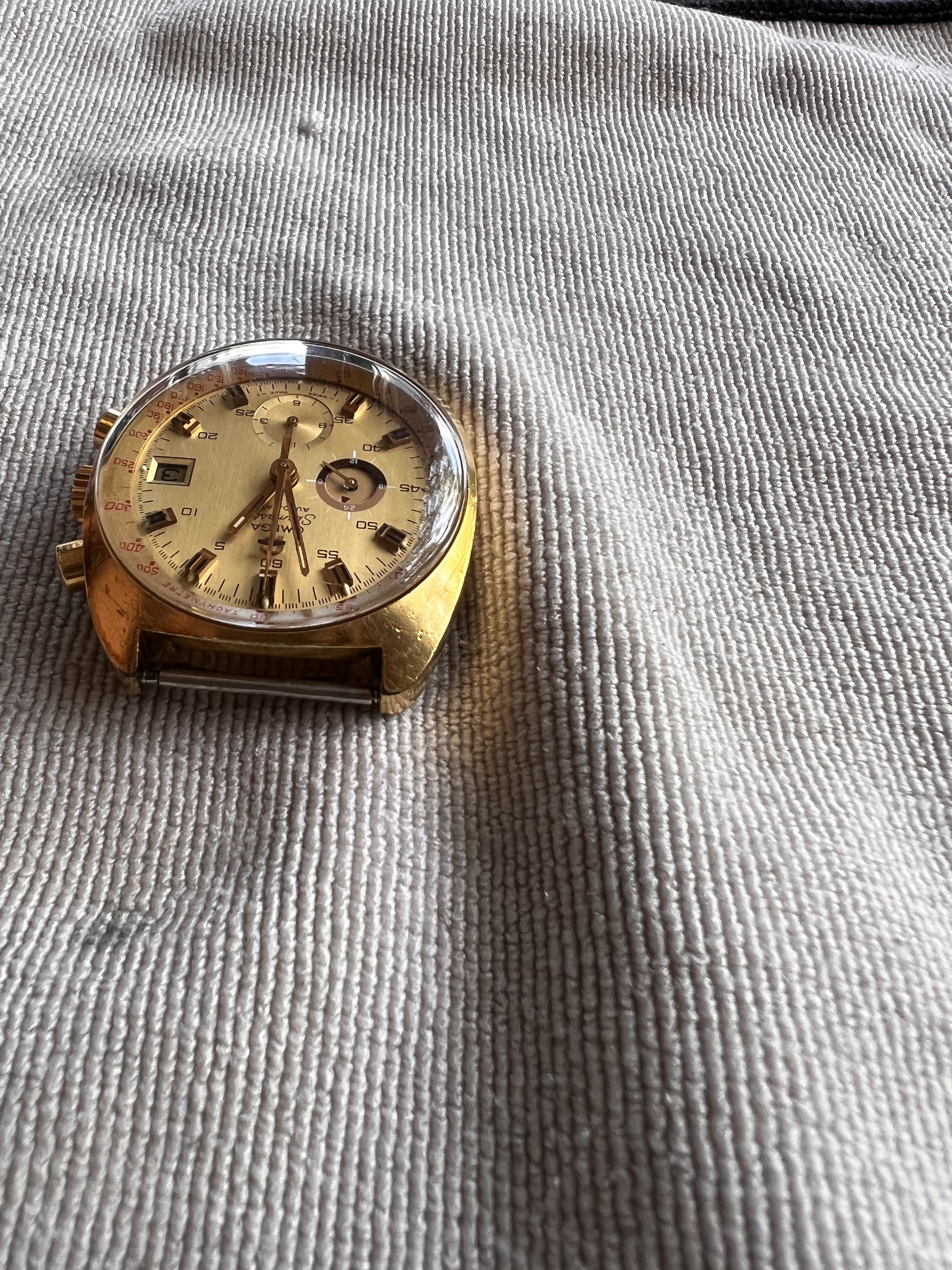 Up here is this 176.007 BR, early 1970’s, OSA chronograph. This one with the gold colored dial and furniture, with red accents. This family of watches reviewed extensively by me here.