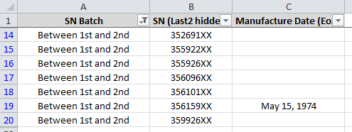 Then there's this looser grouping higher in the 35 million range, only one known production date in mid 1974: