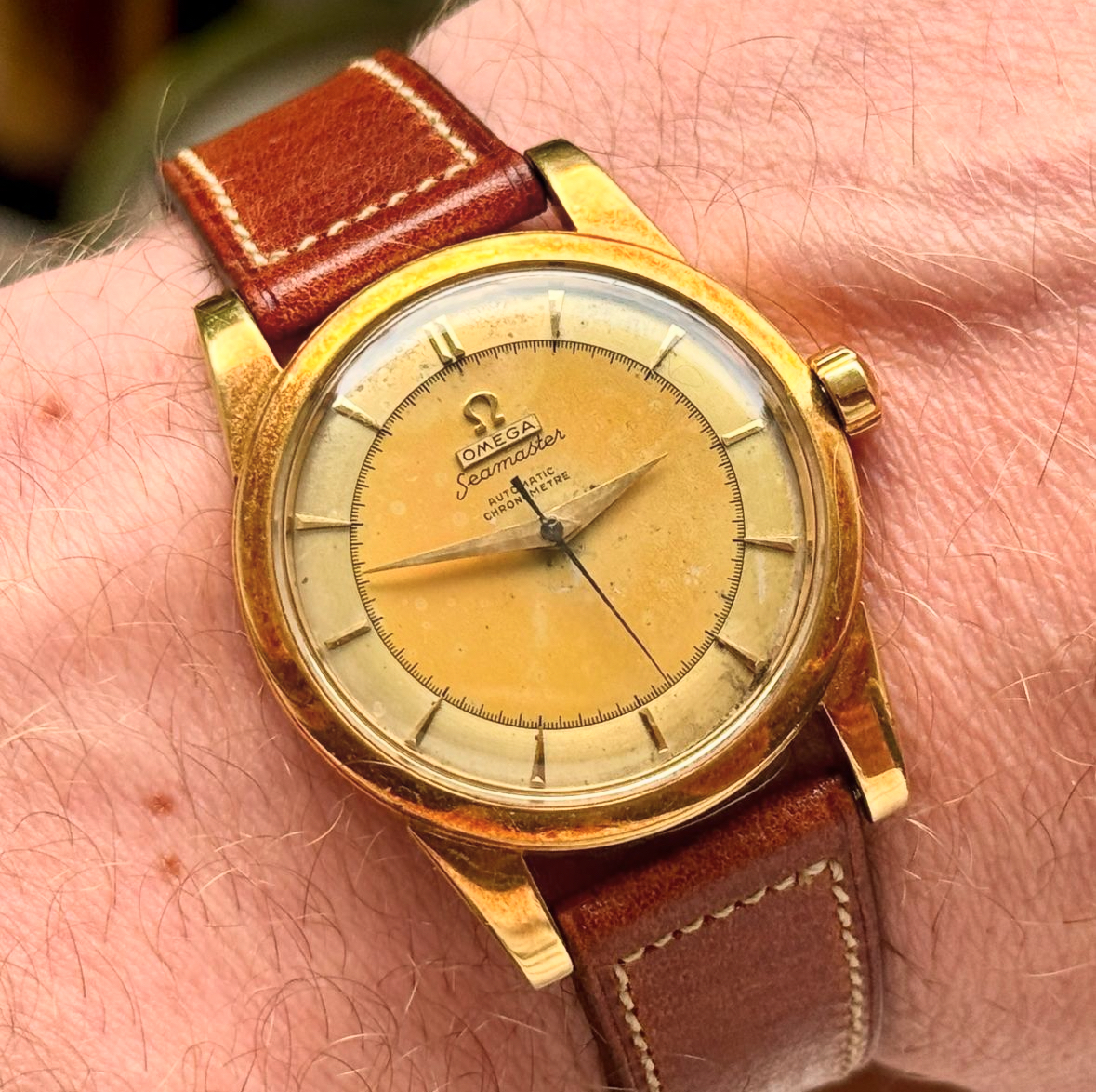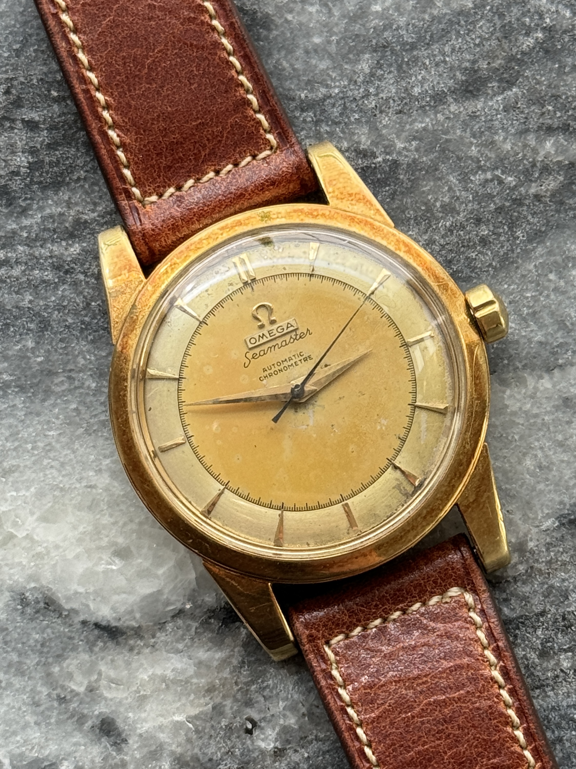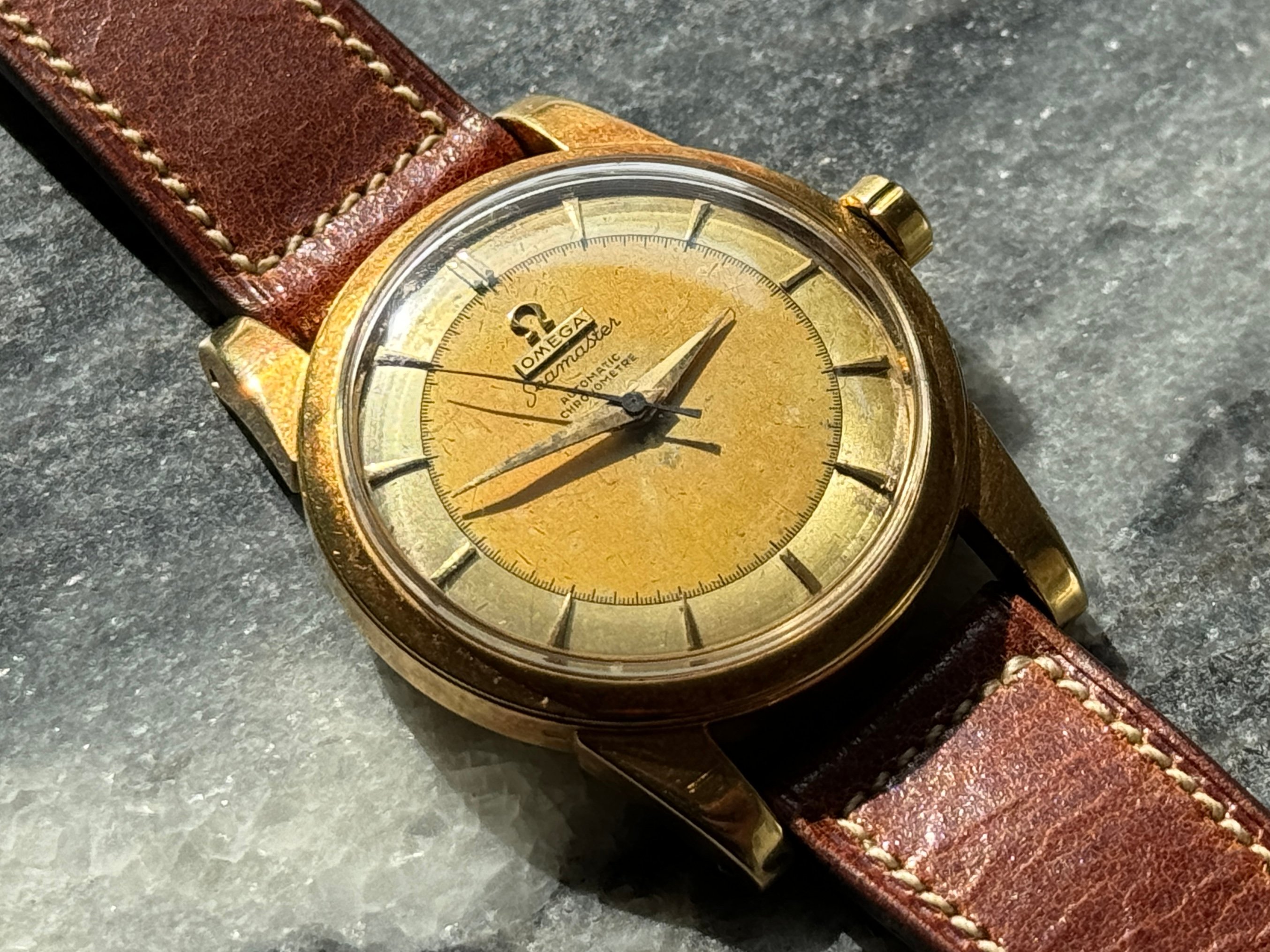 Thread 'Uncommon 18k Vintage 1950s Omega Seamaster 2577 Chronometre Cal. 352 Plank Dial' ·