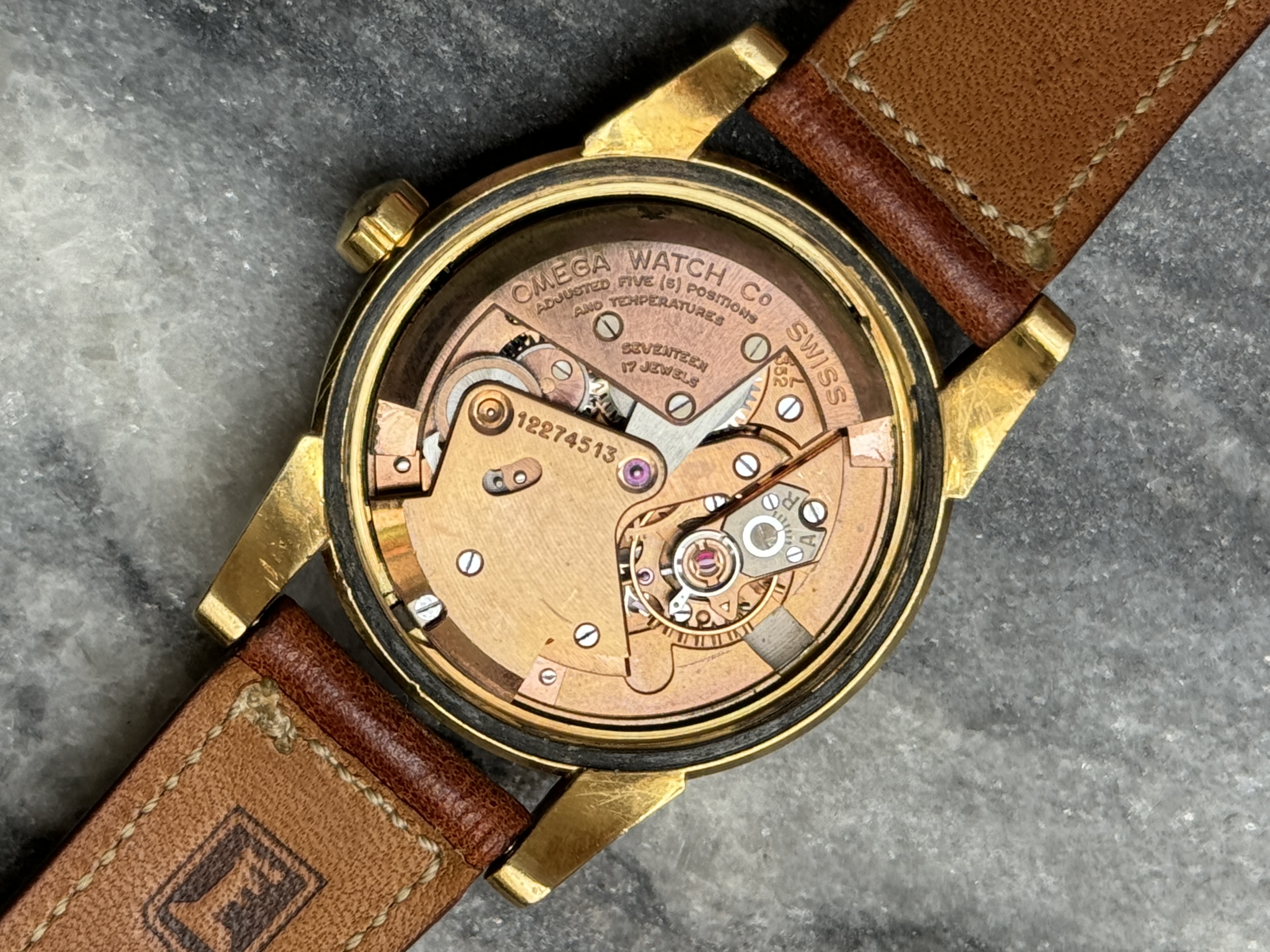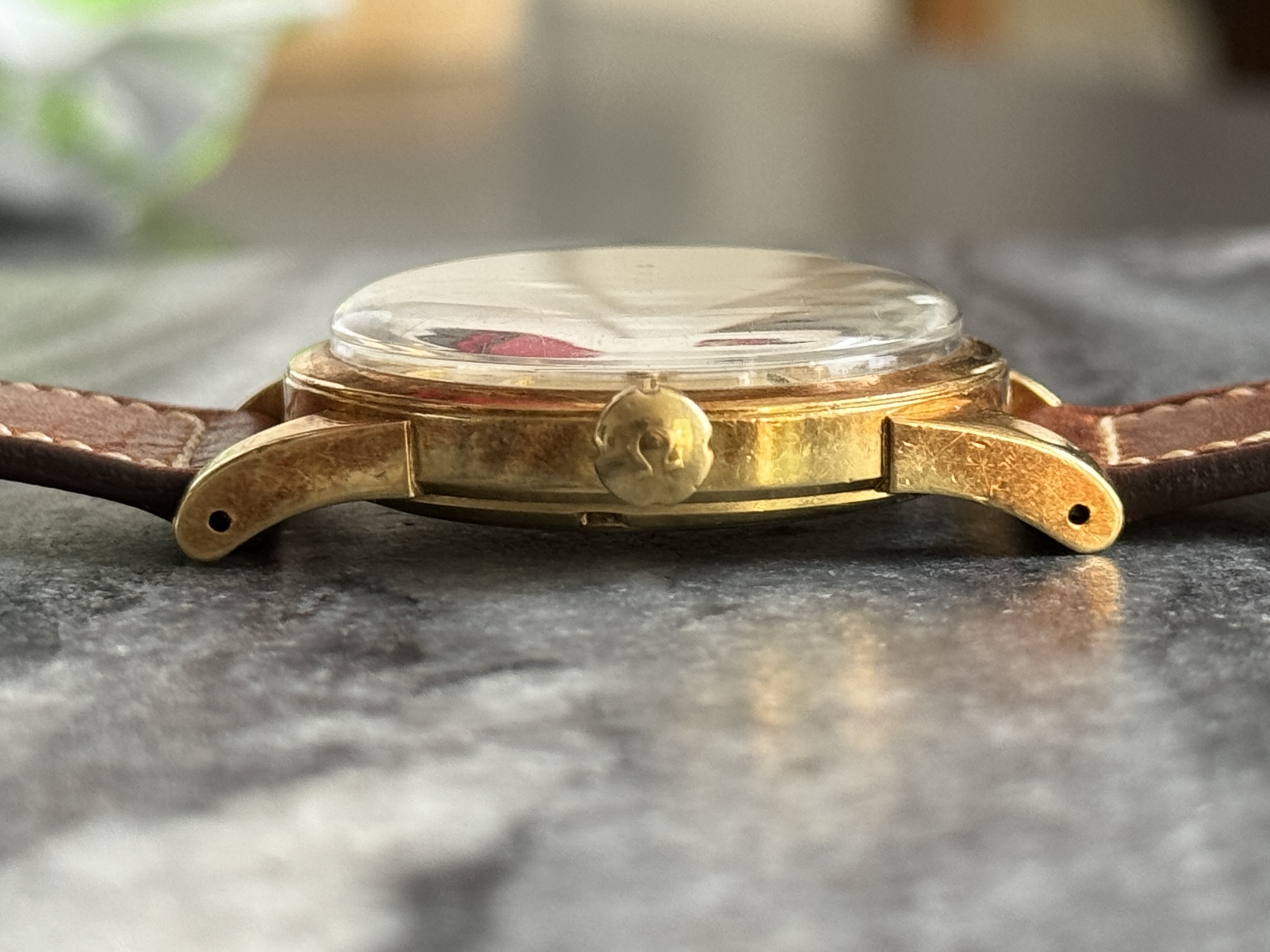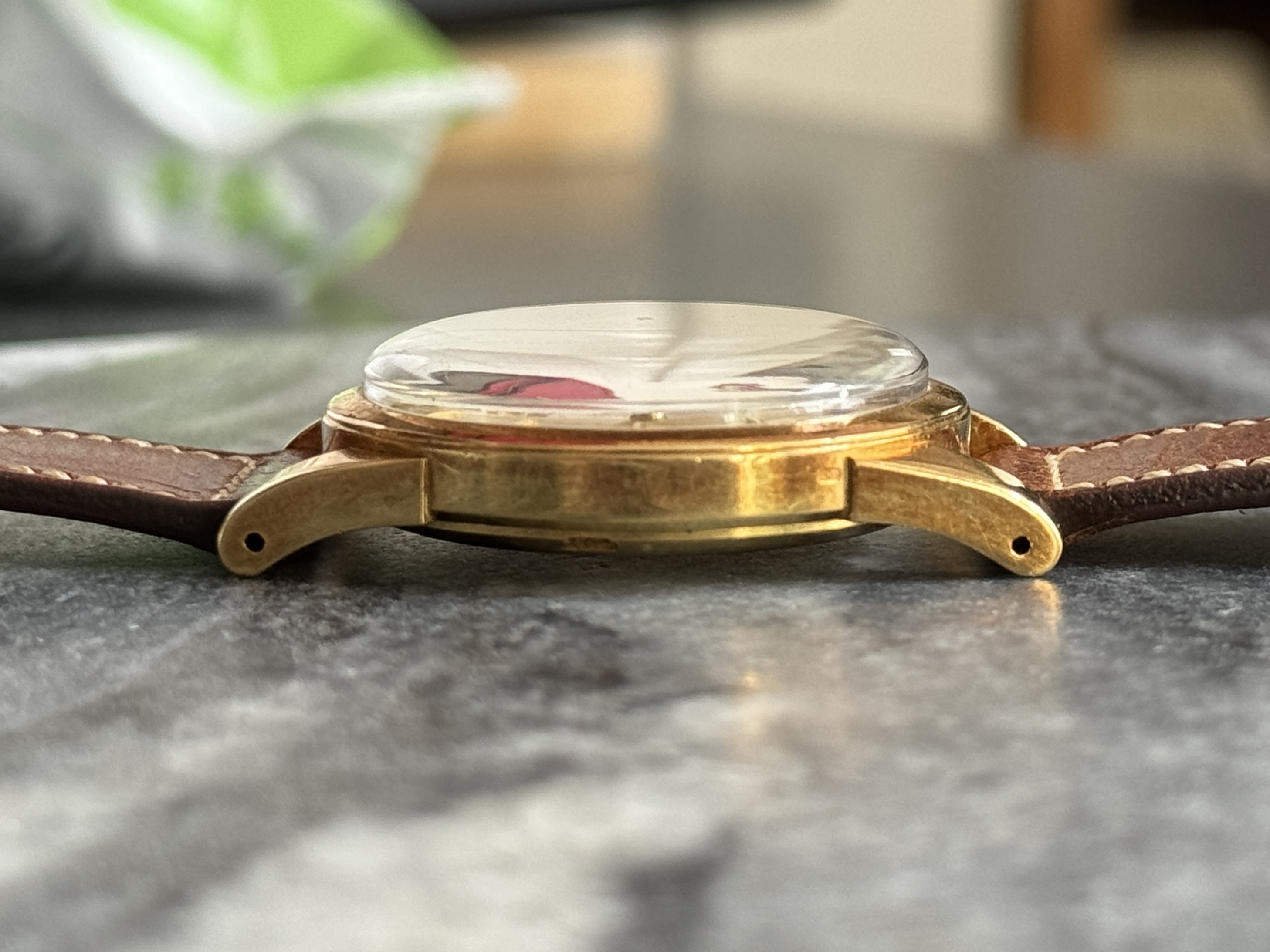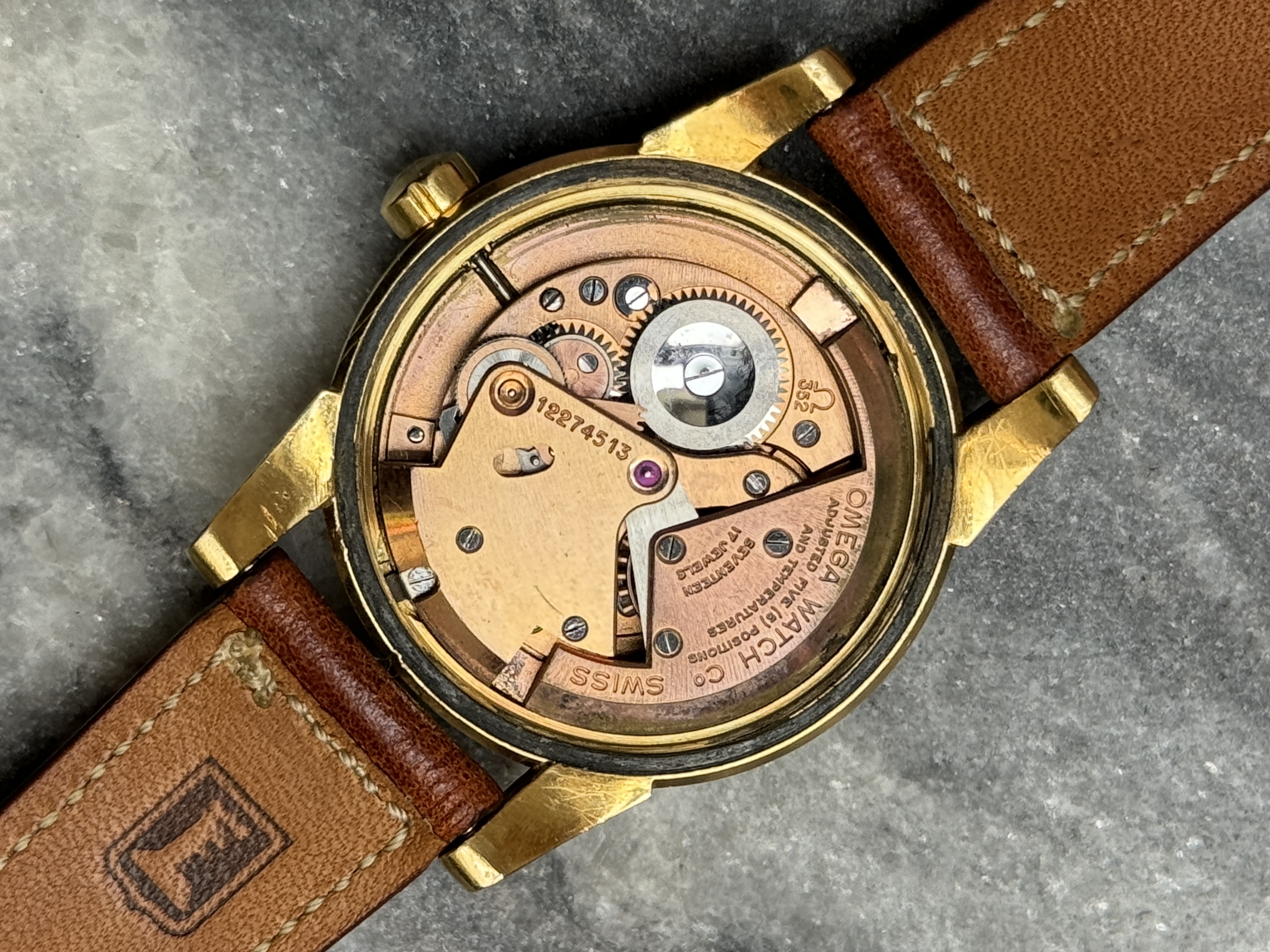Strap & buckle: Comes on a beautifully soft, handcrafted, brown Torre-strap as depicted and with an original Omega buckle. No hallmarks on the buckle, so it won’t be solid gold. This style, which I find quite attractive, is UK production, if I’m not mistaken.