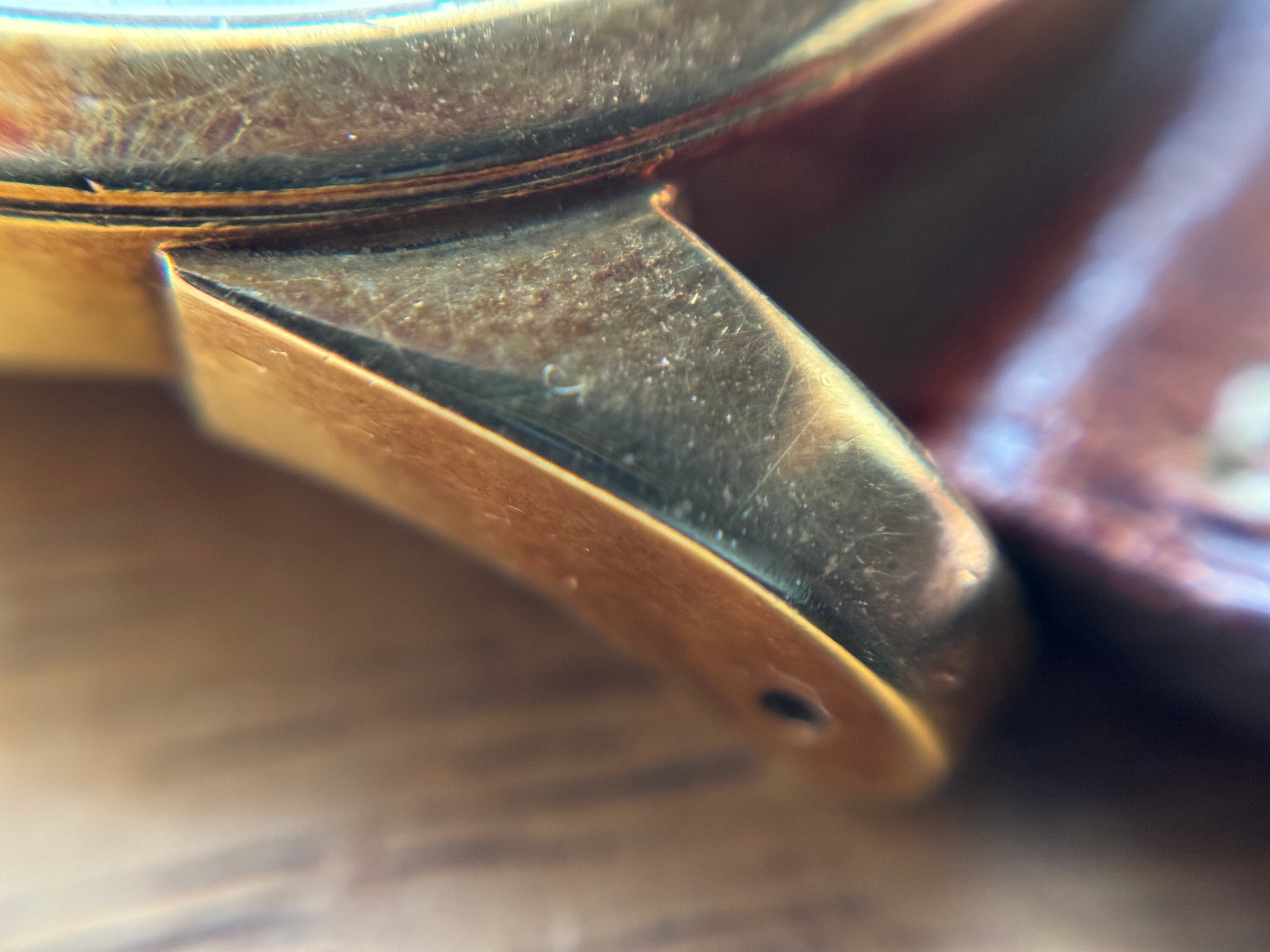 Worst possible angle I could find for the discolorations at the edge of the dial: