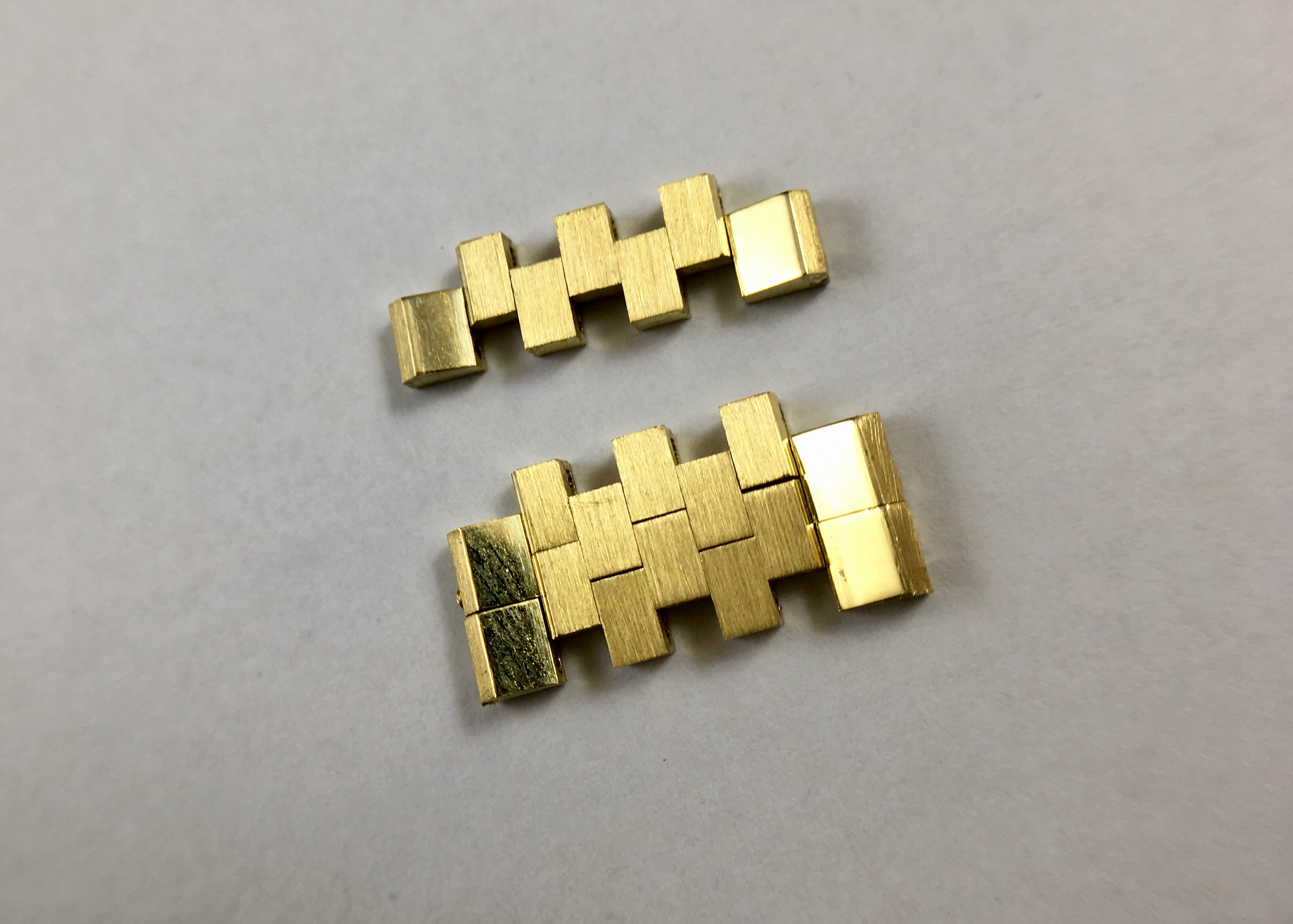 ·I’m selling three links that were removed from a solid 18k gold bracelet that came with my 1966/7 Grand Luxe. The bracelet size is just right currently and I don’t foresee a need for the additional links in the future. I’ve read at least one thread where members have discussed the difficulty in extending the length on these brick style bracelets by adding/soldering additional gold.