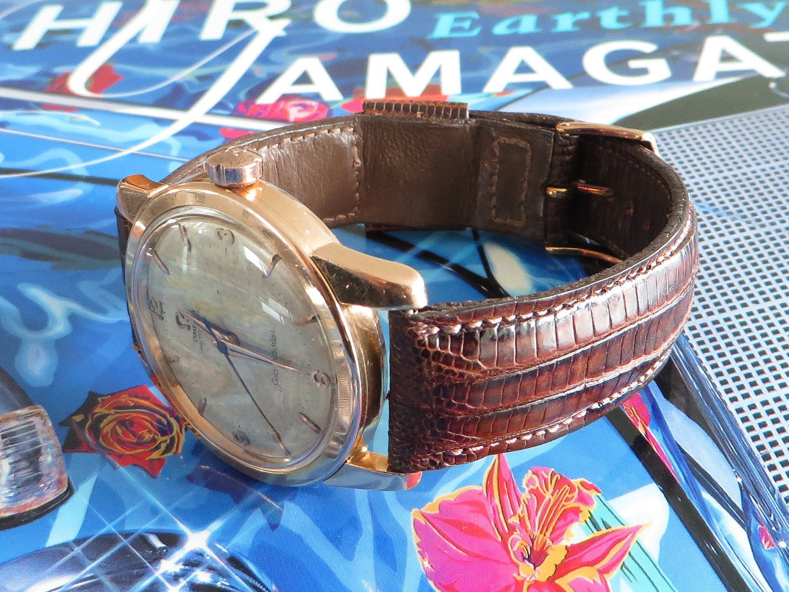 Comes on a beautiful lightly used vintage BRAZILIAN LIZARD strap (yellow buckle).