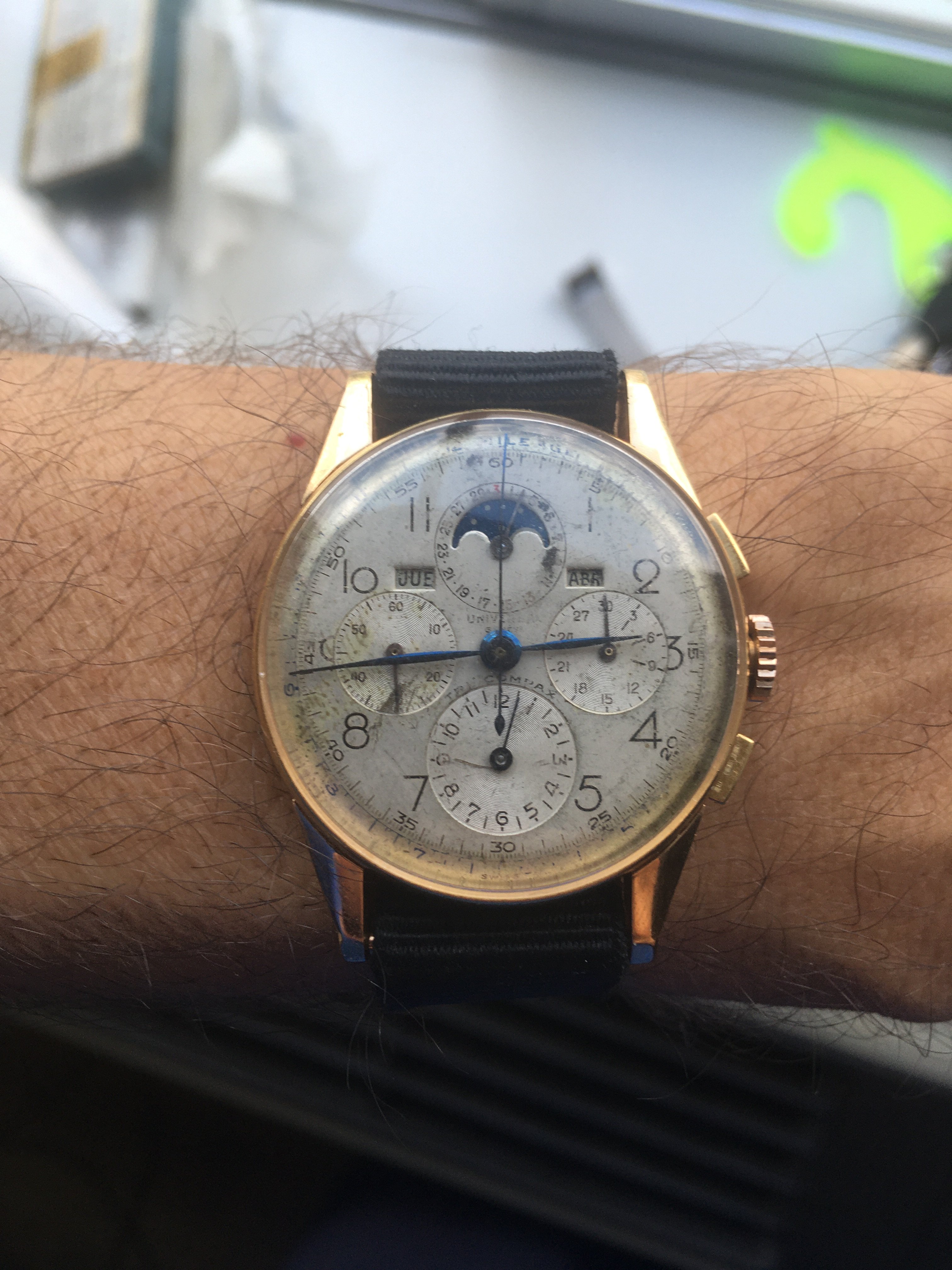 Yes, magnified pictures are a bit deceptive, I actually thought the gold Tri-Compax with the claw lugs looks a bit funny under magnification ! This 18k HJ case Tri-Compax is probably an early one that is somewhat of an anomaly. When I got it it had a redial. The current dial is a service dial, I'm going to replace it with a very old deco numeral Tri-Compax dial. Just need some hands that would match the dial.